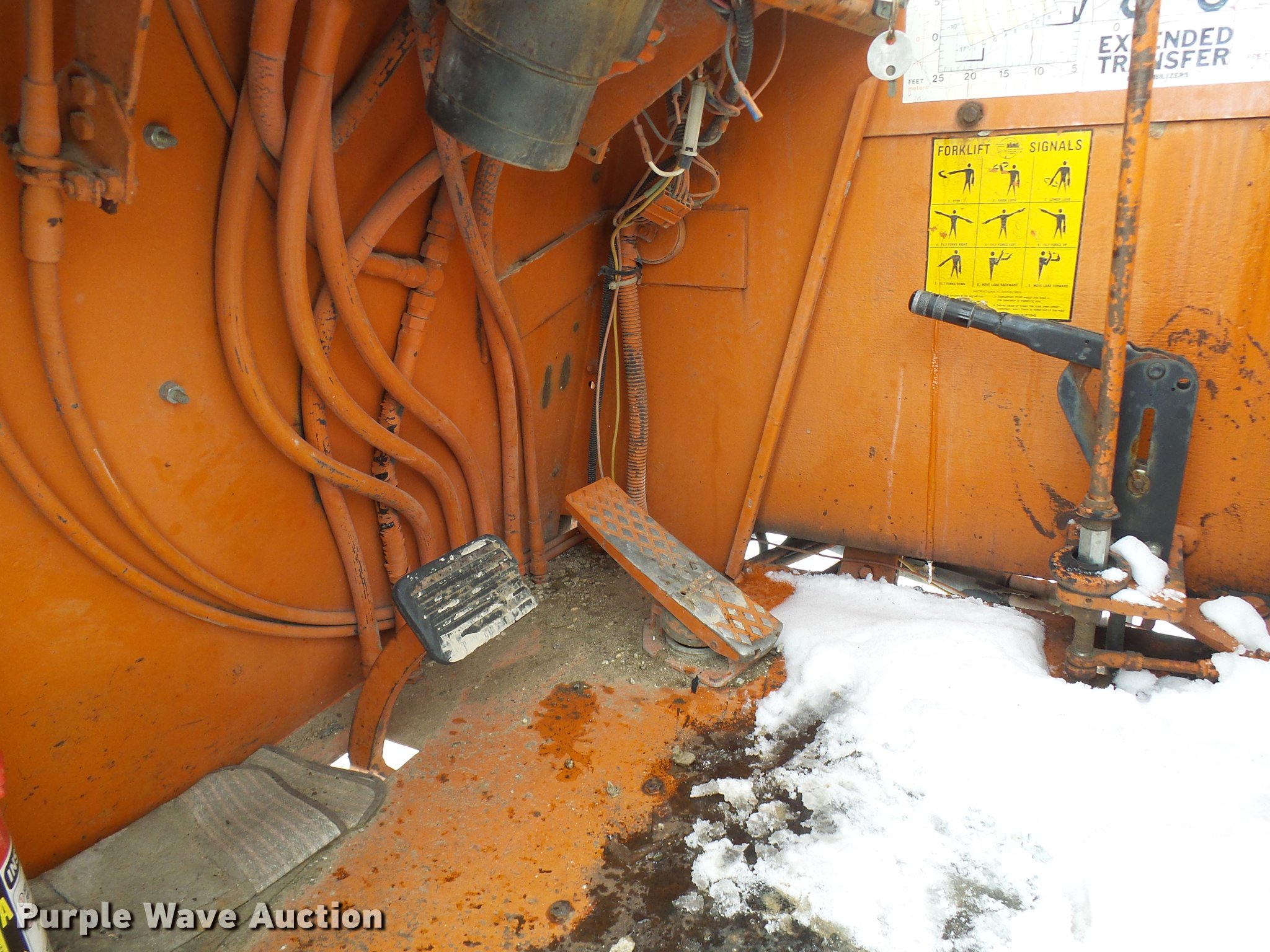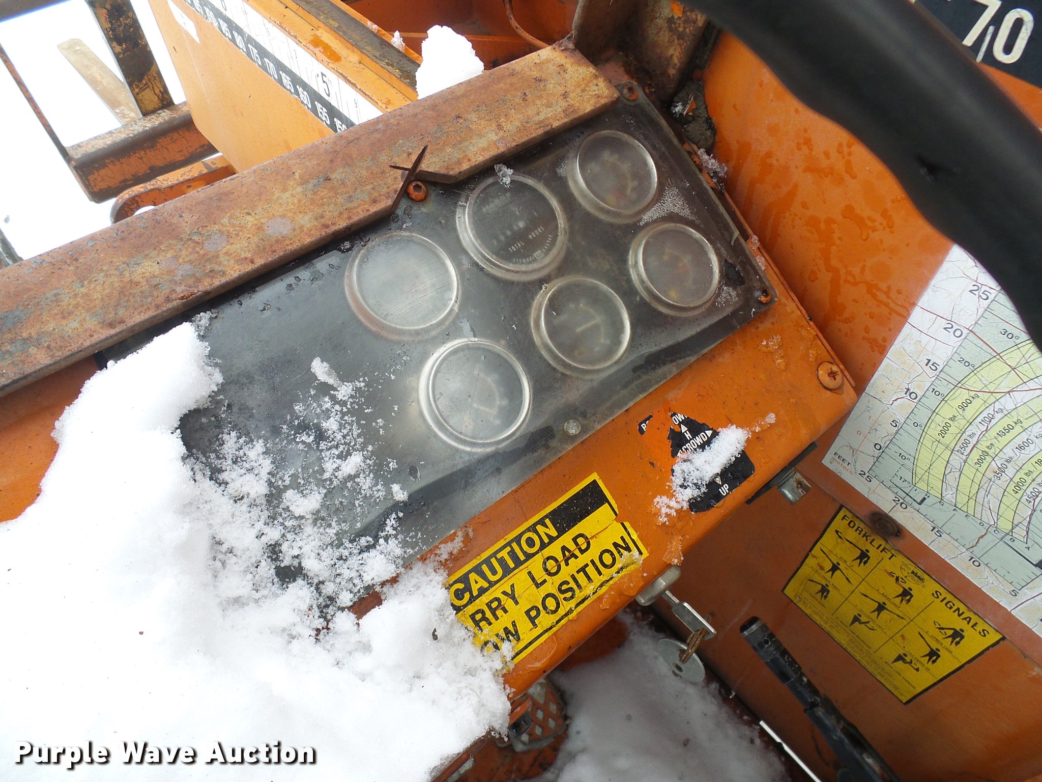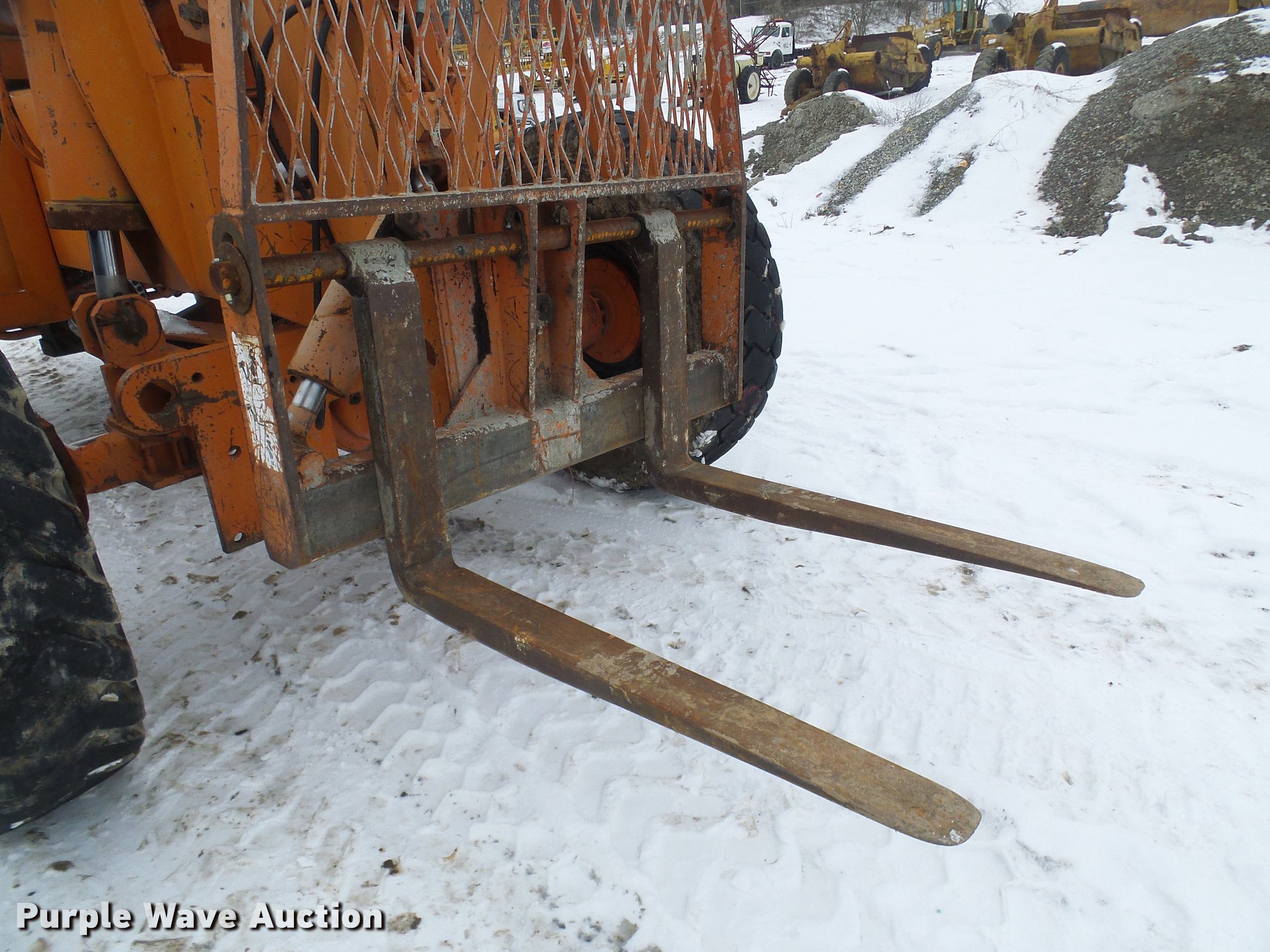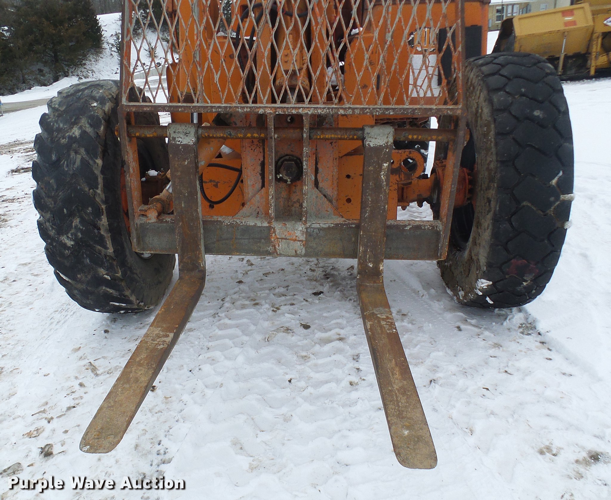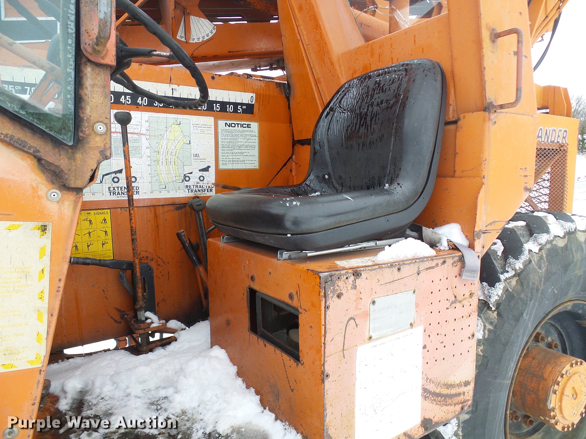 Purple Wave is selling a used Telehandler in Missouri. This item is a Lull 844 telehandler with the following: 2,064 hours on meter, John Deere four cylinder diesel engine, Shuttle shift transmission, 4F-4R gears, Four wheel drive, Crab steer, 8,000 lbs maximum lift capacity, 34' maximum lift height, 42"L forks, Tilt carriage, 14.00-24 tires, Serial JD01643LN