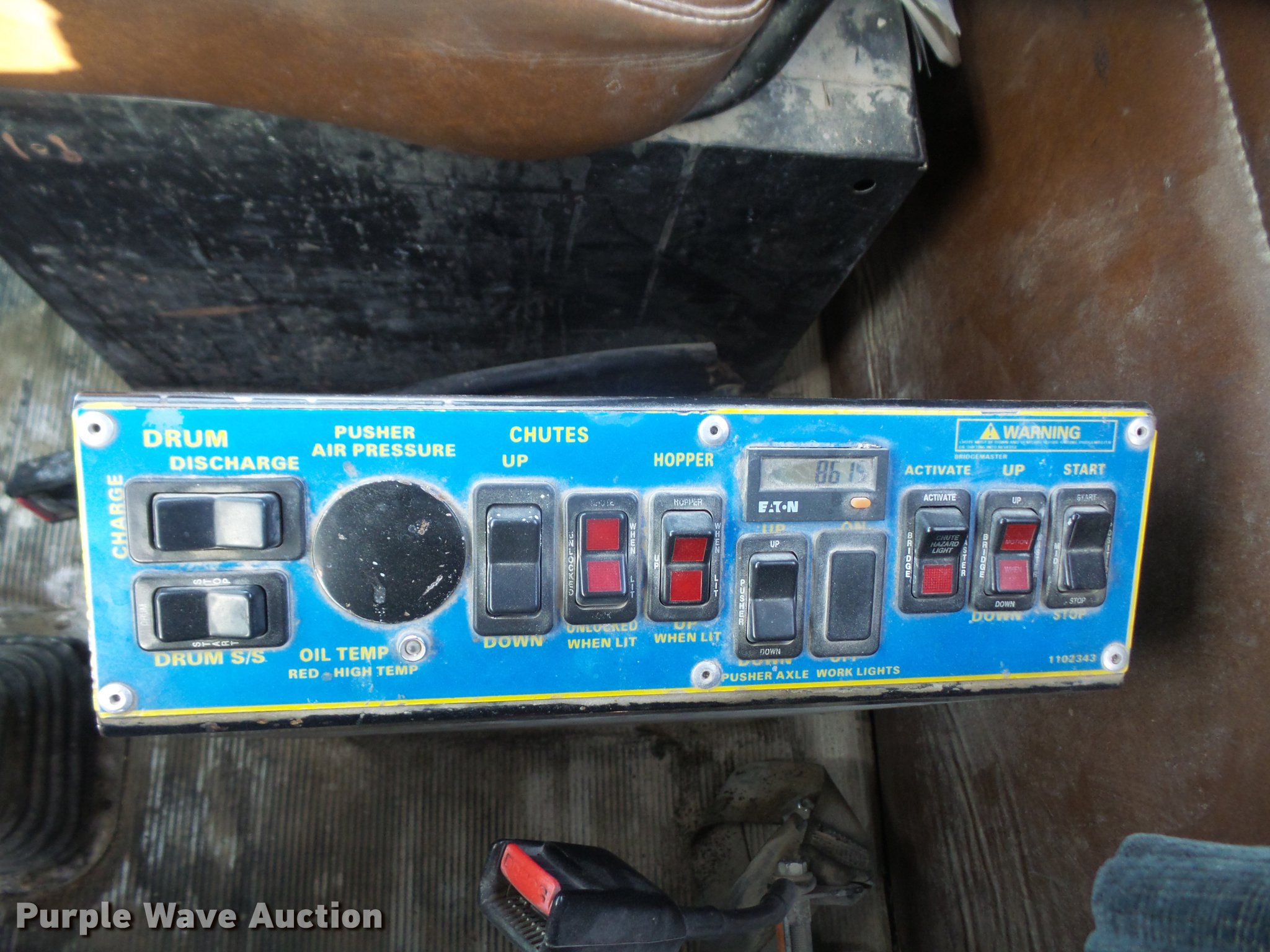 Purple Wave is selling a used Ready Mix or Pump Truck in Kansas. This item is a 2001 Kenworth W900B ready mix truck with the following: 161,366 miles on odometer, 18,421 hours on meter, Caterpillar C10 10.3L L6 turbo diesel engine, Eaton Fuller eight speed manual transmission, Lo-Lo, Triple axle, Full locking differential, AC and heat, Cruise, AM/FM, Air suspension seat, Drum/axle controls, PTO, McNeilus 11 cu. yd. mixer bed, Rear drum controls, (3) steel chute extensions, 125 gallon water tank, Ladder, 4:89 gear ratio, Air brakes, 425/65R22.5 front tires, 255/70R22.5 pusher axle tires, 11R22.5 rear tires, FAWR 20,000 lbs, IAWR 23,000 lbs, RAWR 23,000 lbs, Pusher axle GAWR 11,020 lbs, Tag axle GAWR 13,200 lbs