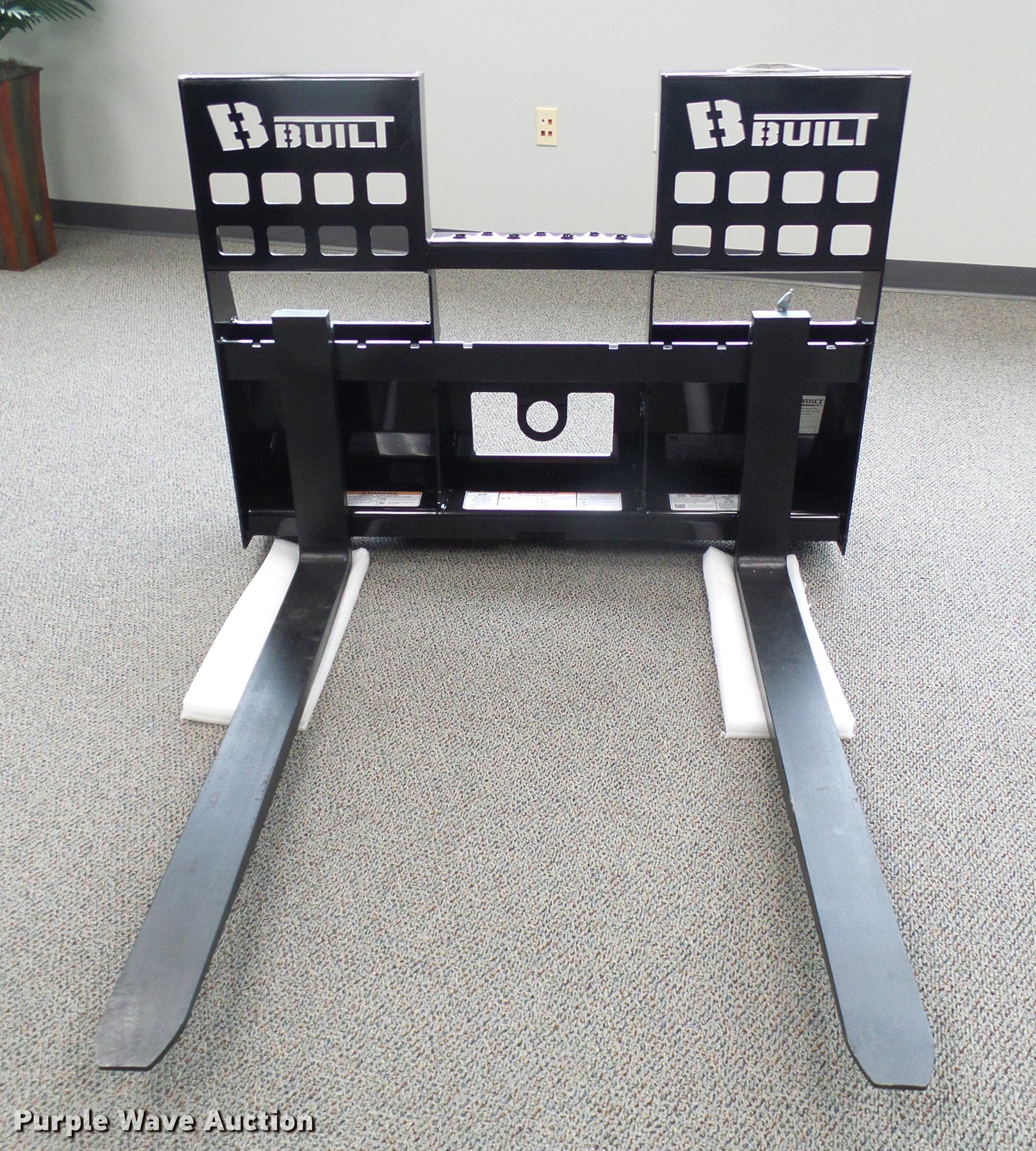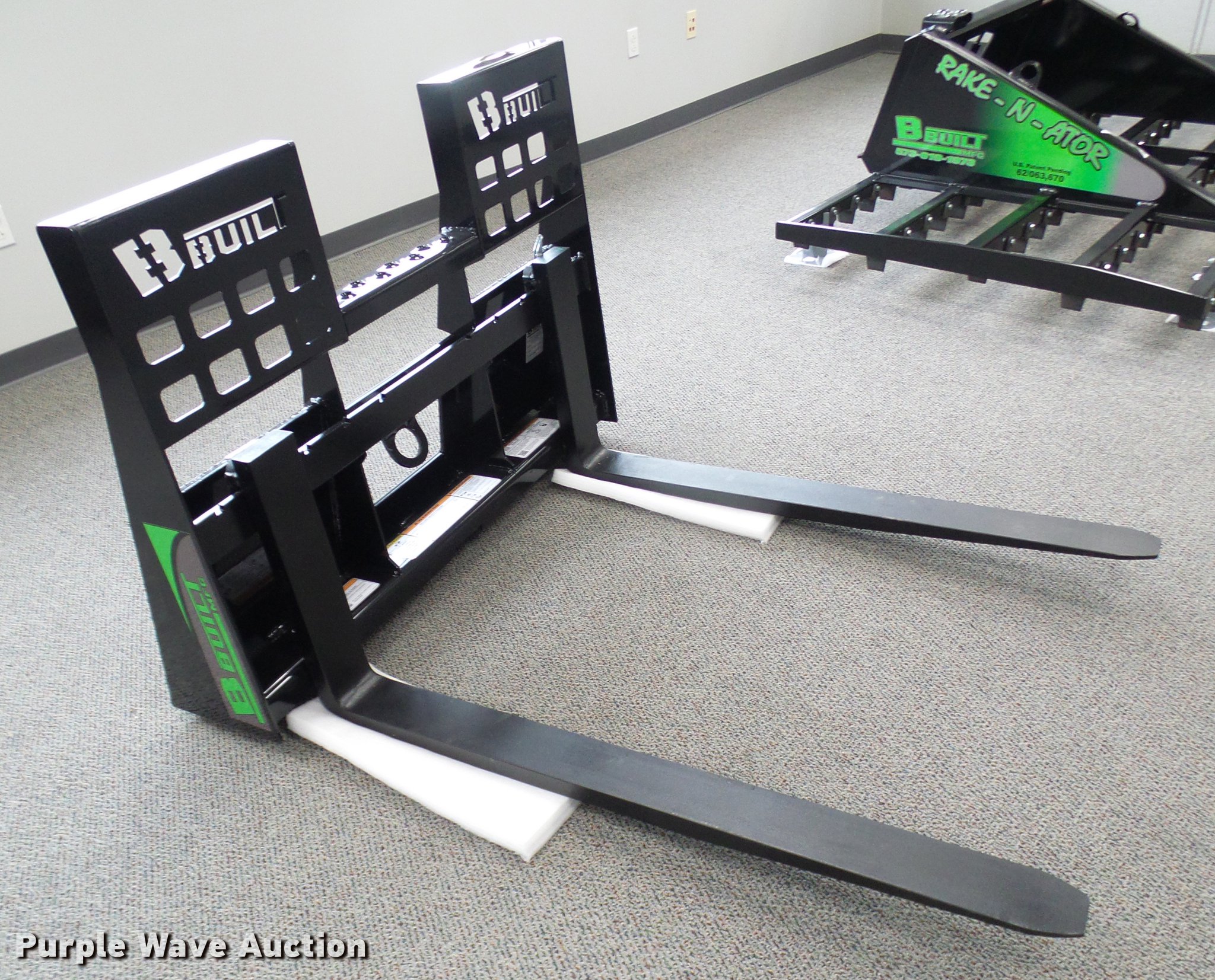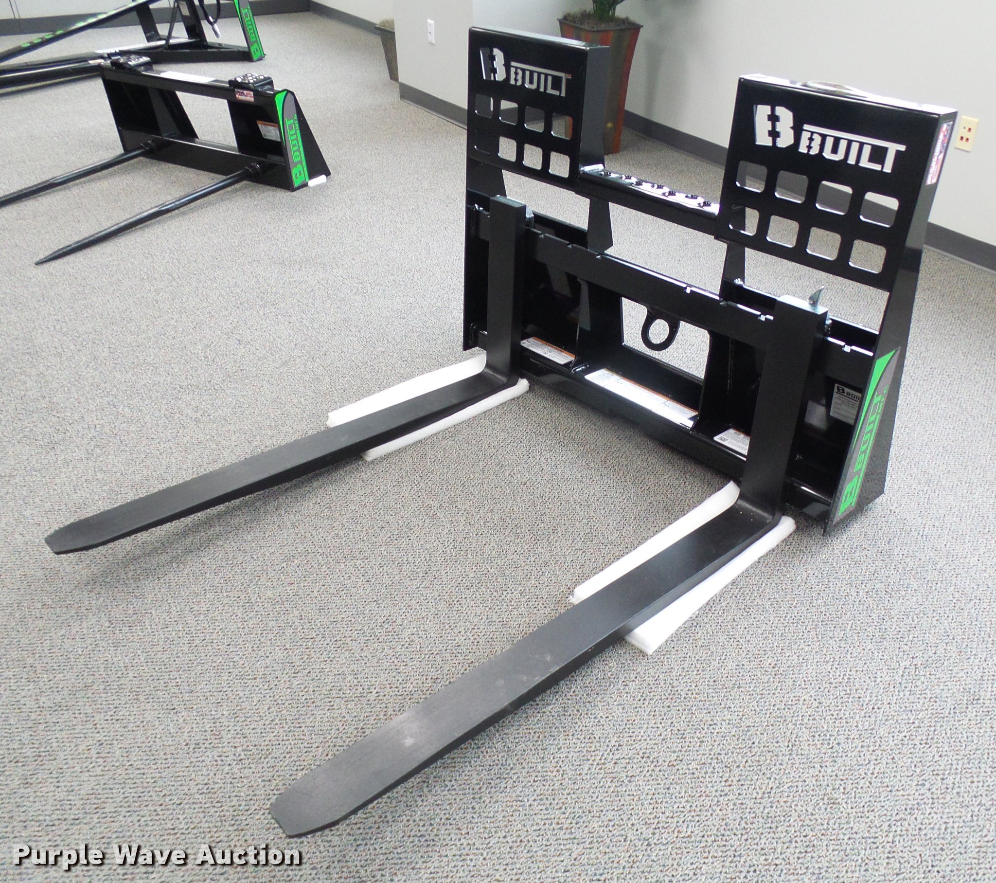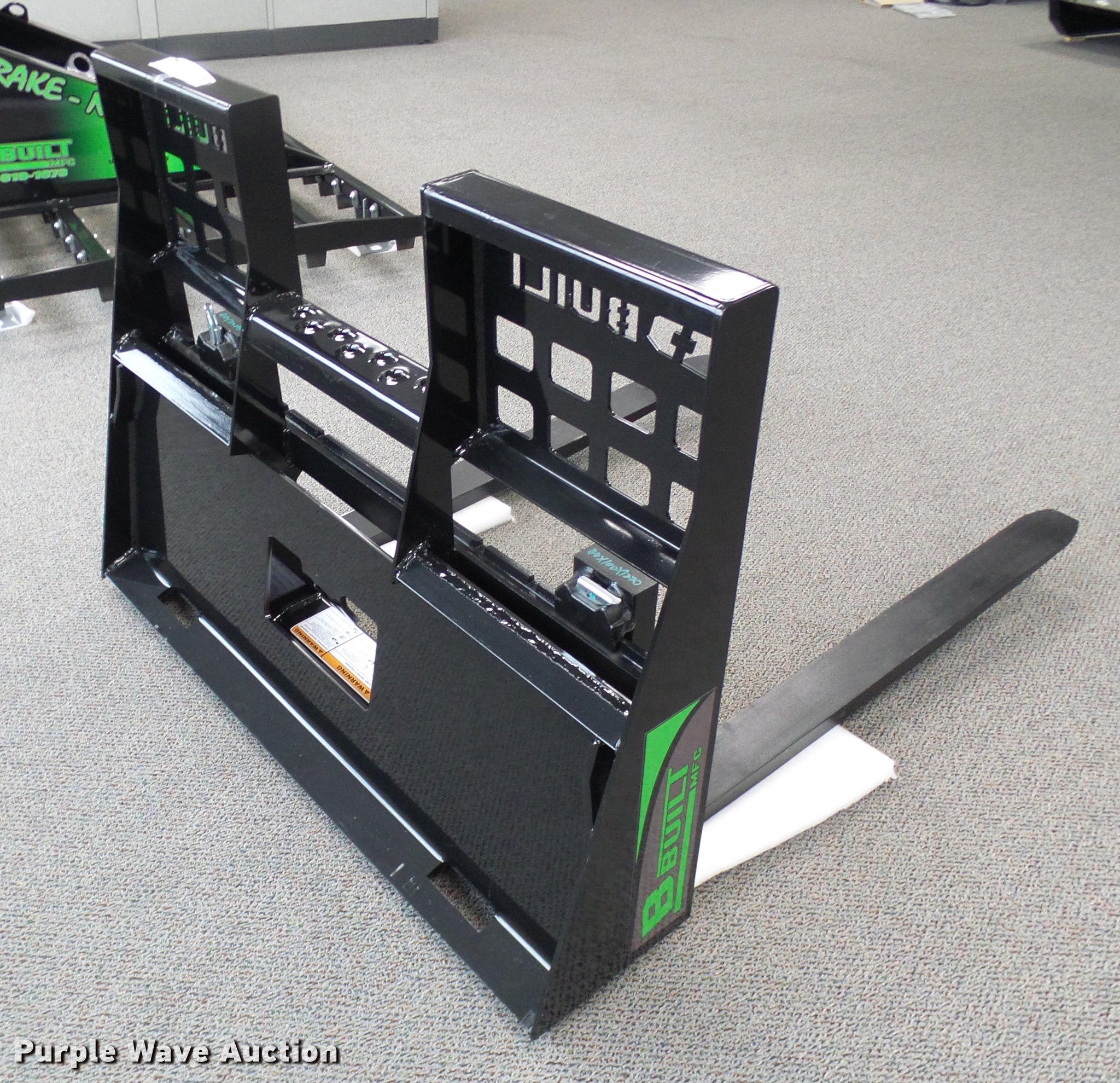 2018 B-Built Manufacturing skid steer pallet forks. 5,000 lbs capacity, Unused, 500 lbs shipping weight, One year manufacturer parts warranty, Serial 10013. View specifications. Representative photo. B Built Manufacturing. 1550 Fairgrounds Rd. Jefferson City, MO 65109