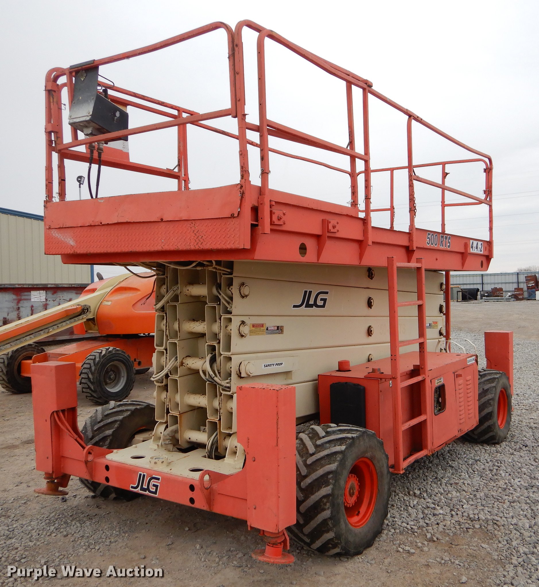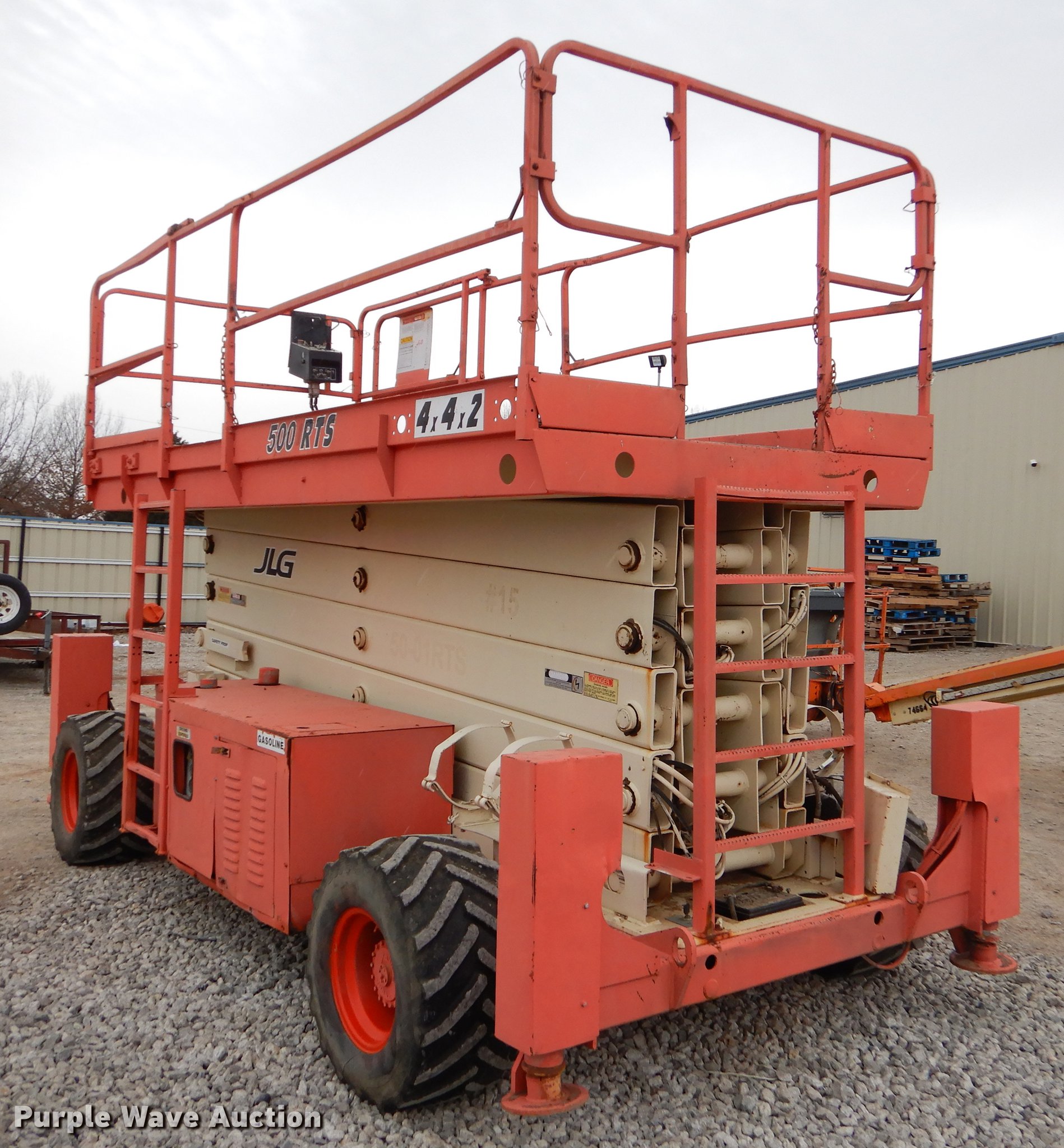 Purple Wave is selling a used Scissor or Vertical Lift in Oklahoma. This item is a 1994 JLG 500RTS scissor lift with the following: Four cylinder dual fuel engine, Propane and gas capable, Four wheel drive, 2,000 lbs maximum lift capacity, 50' maximum lift height, 14'L x 6'W platform, Power platform extensions, Platform and ground controls, 31 x 15.5-15 tires, Serial 00107200200013319