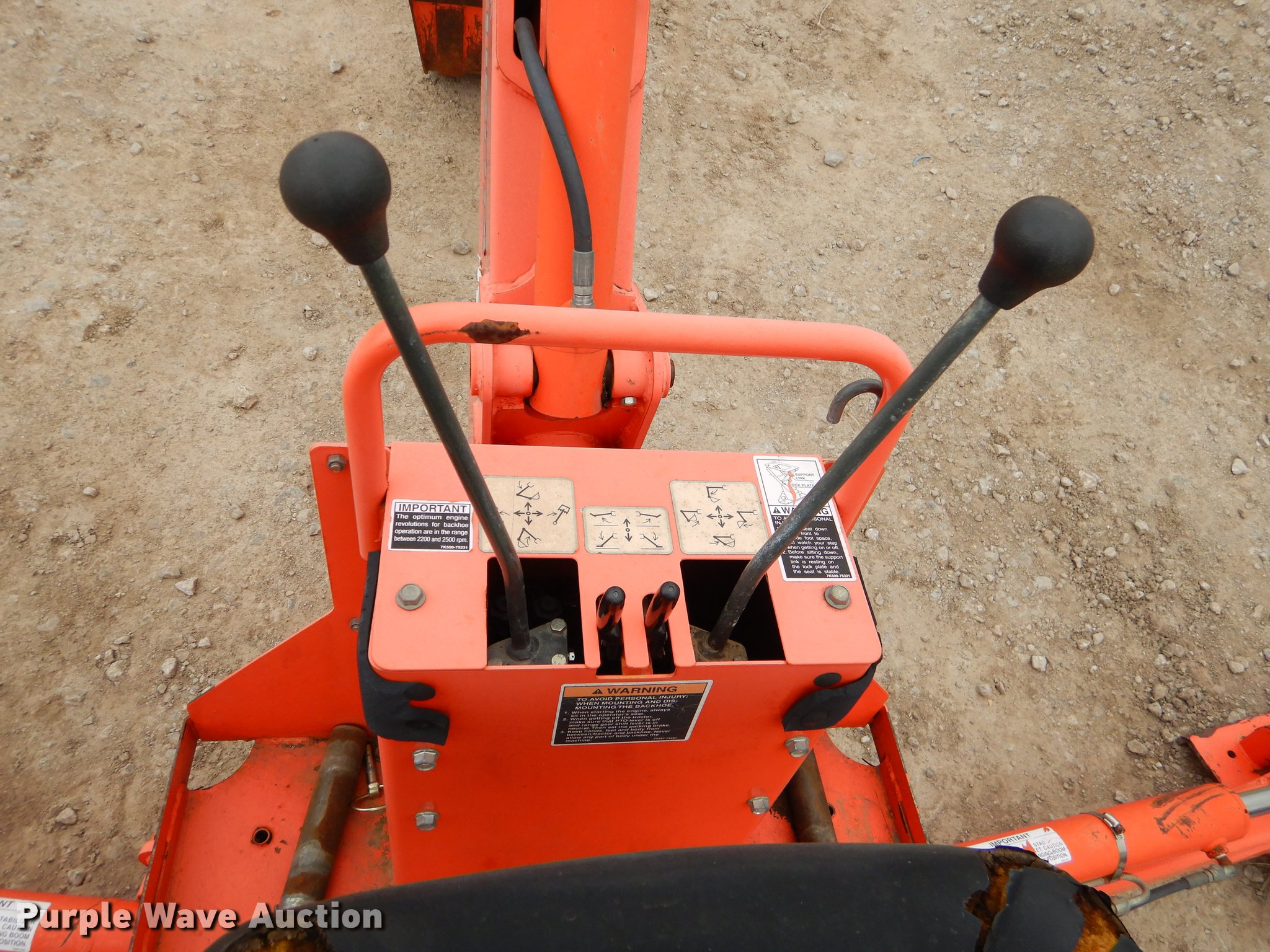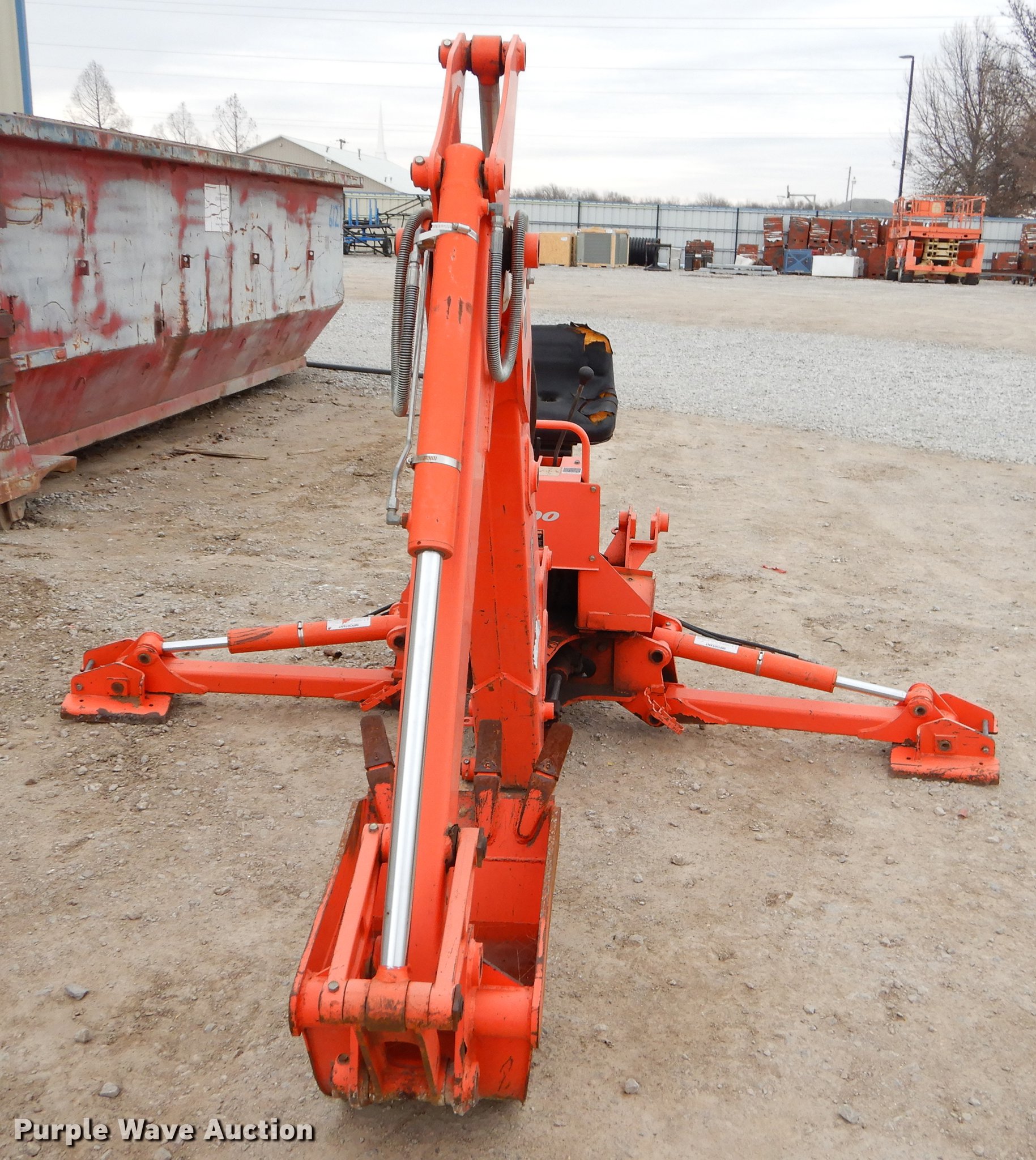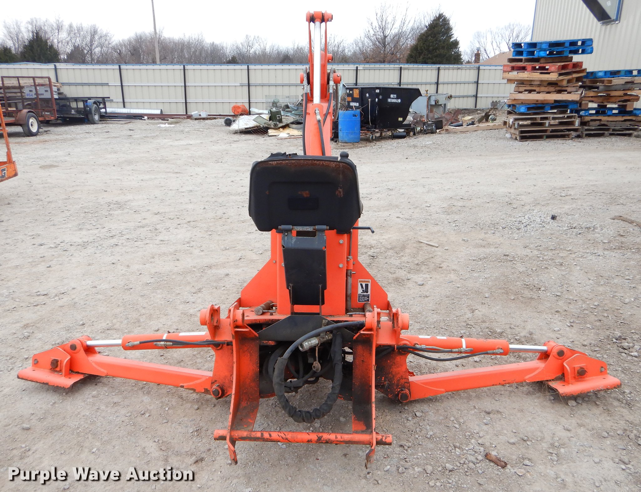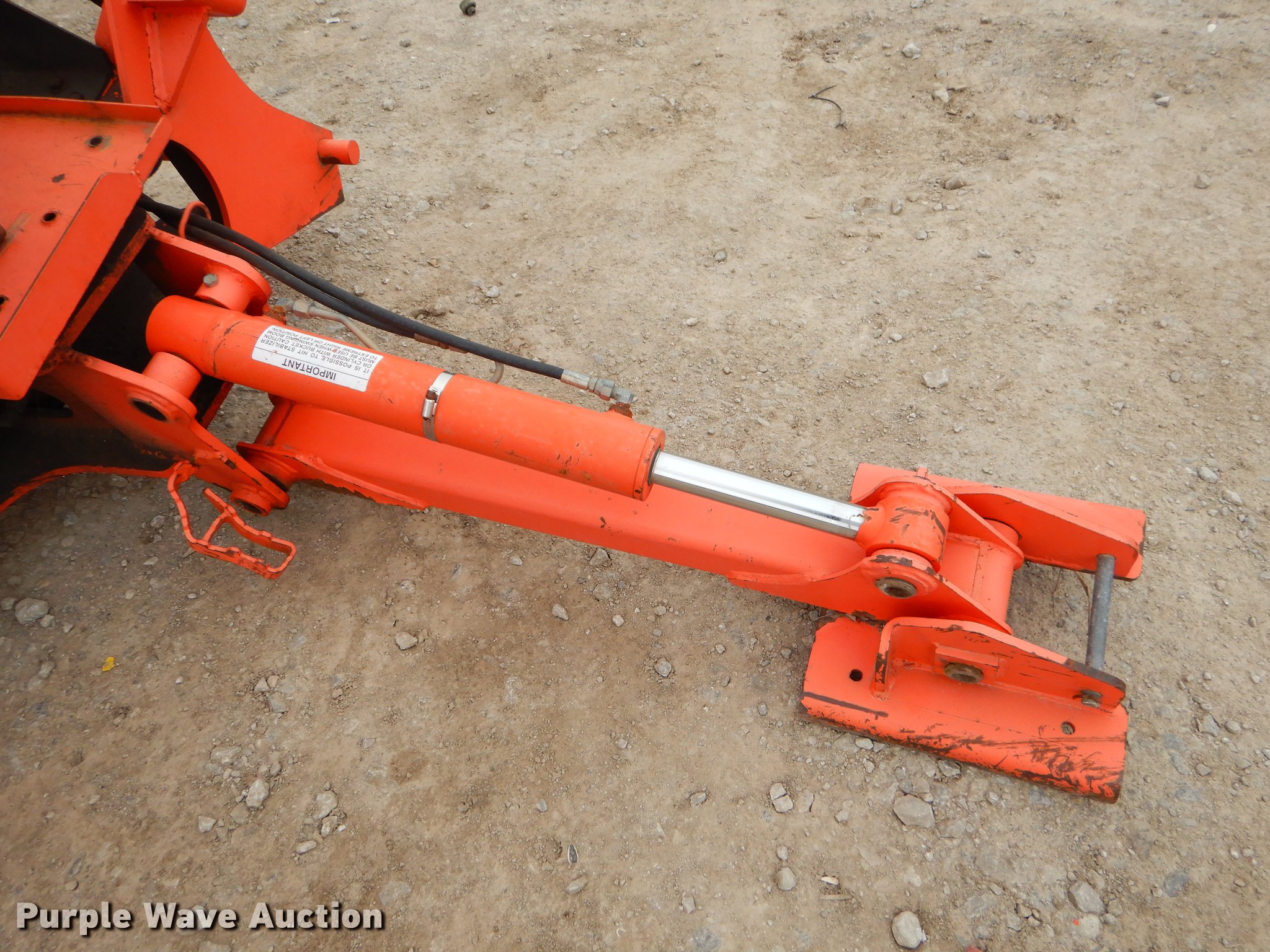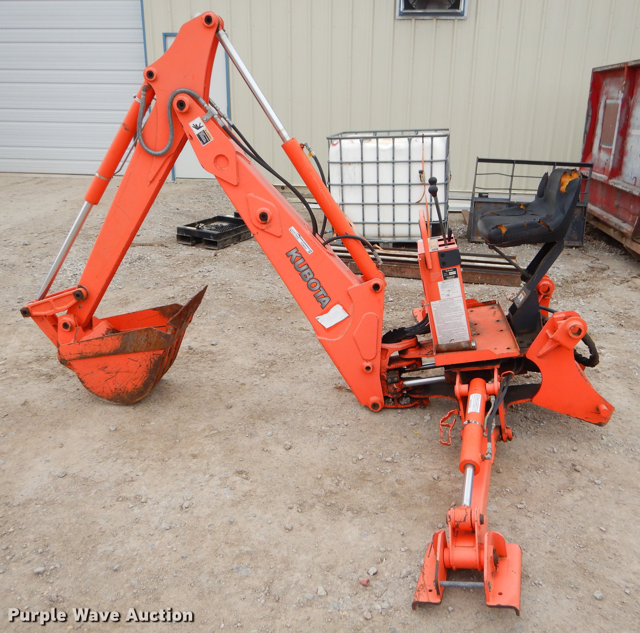 Purple Wave is selling a used Ag Tractor Loader or Attach. in Oklahoma. This item is a Kubota BH90A tractor backhoe with the following: 15"W four tooth bucket, 43"L pin to pin, Two stick control, (2) outriggers, Serial A5770