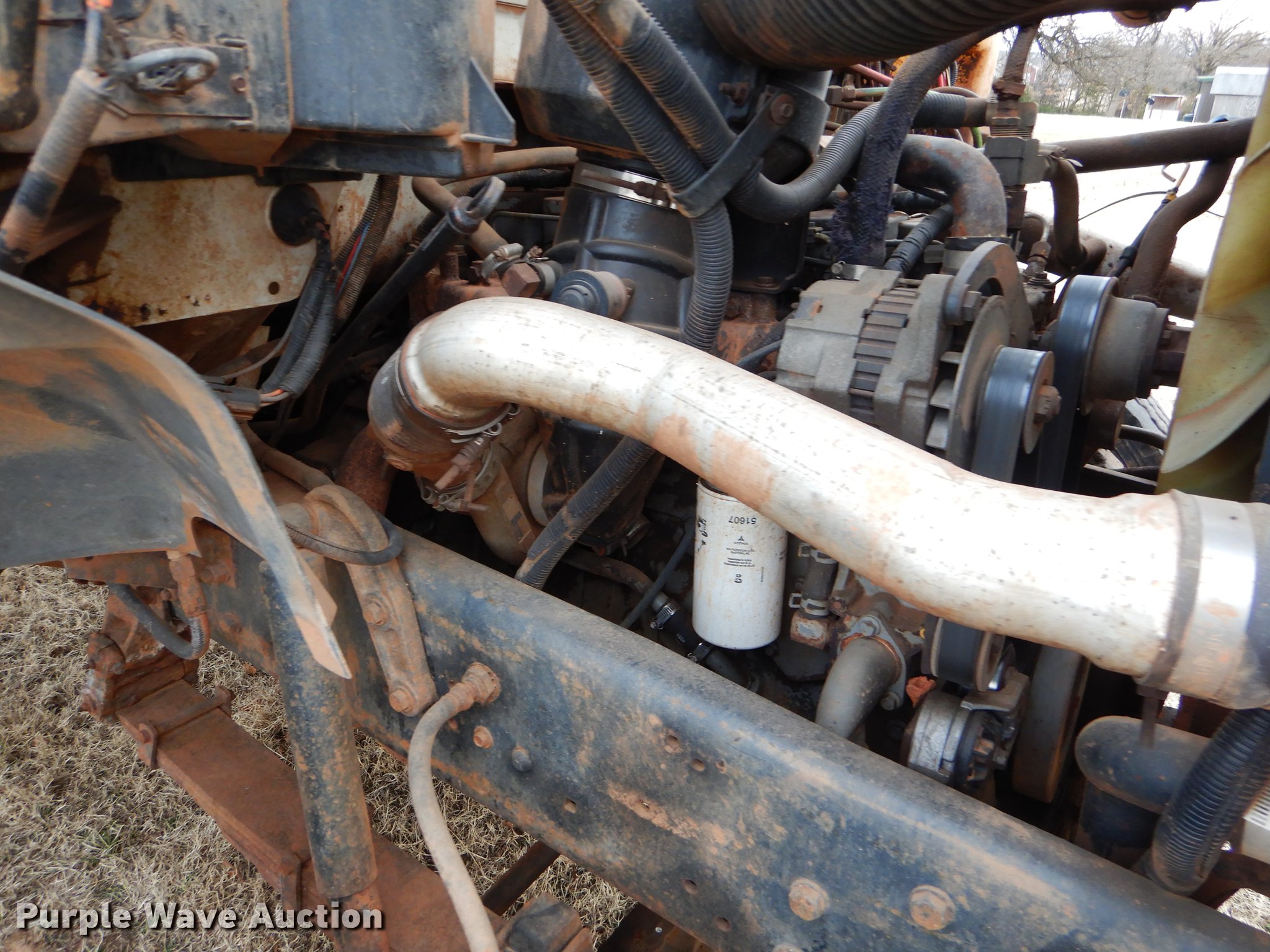 Purple Wave is selling a used Bucket Truck in Oklahoma. This item is a 1995 Ford F800 digger derrick truck with the following: 93,243 miles on odometer, 9,475 hours on meter, Cummins 5.9L L6 turbo diesel engine, Automatic transmission, Single axle, AC and heat, Suspension seat, Block heater, Front tow hooks, Altec digger derrick, 40' boom length, Ground boom controls, Boom rotation, Telescopic boom, (4) outriggers, Single fuel tank, Spring suspension, Air brakes, 178" wheelbase, 315/80R22.5 front tires, 11R22.5 rear tires, GVWR 33,000 lbs, Hydraulic leak, Rear view mirror broken