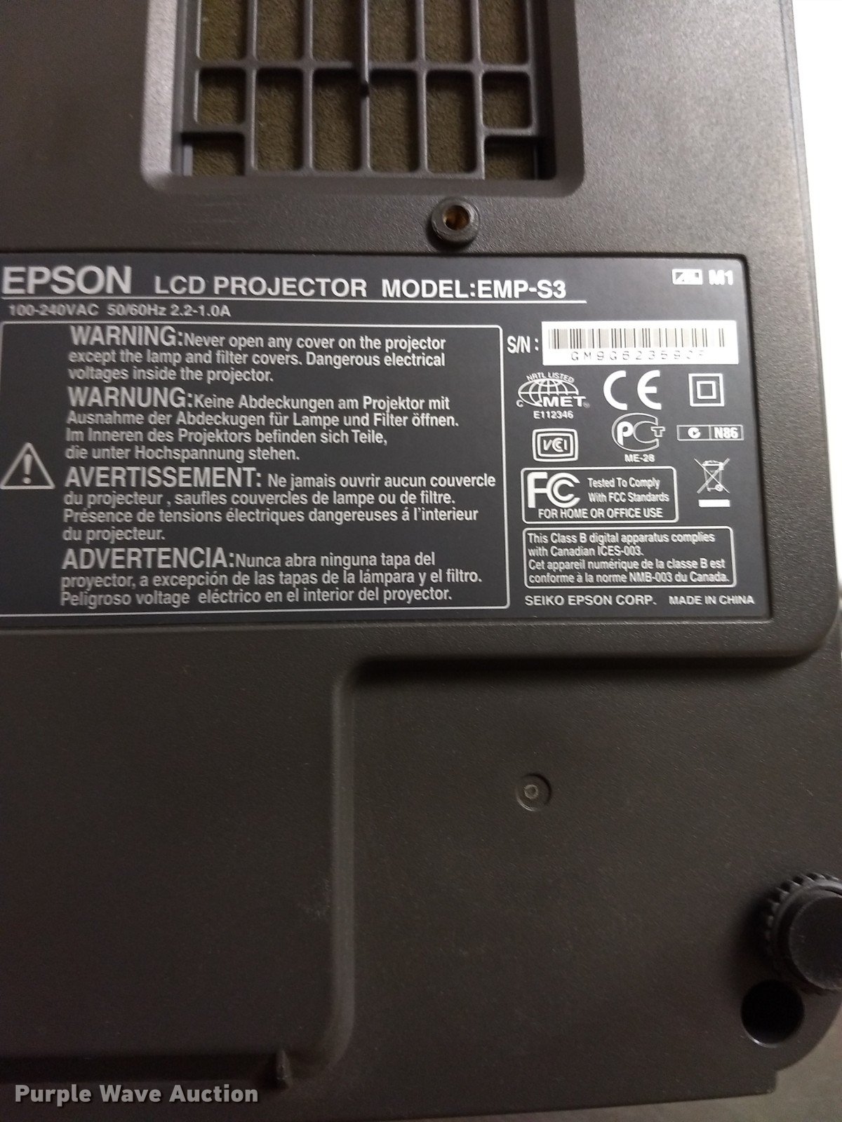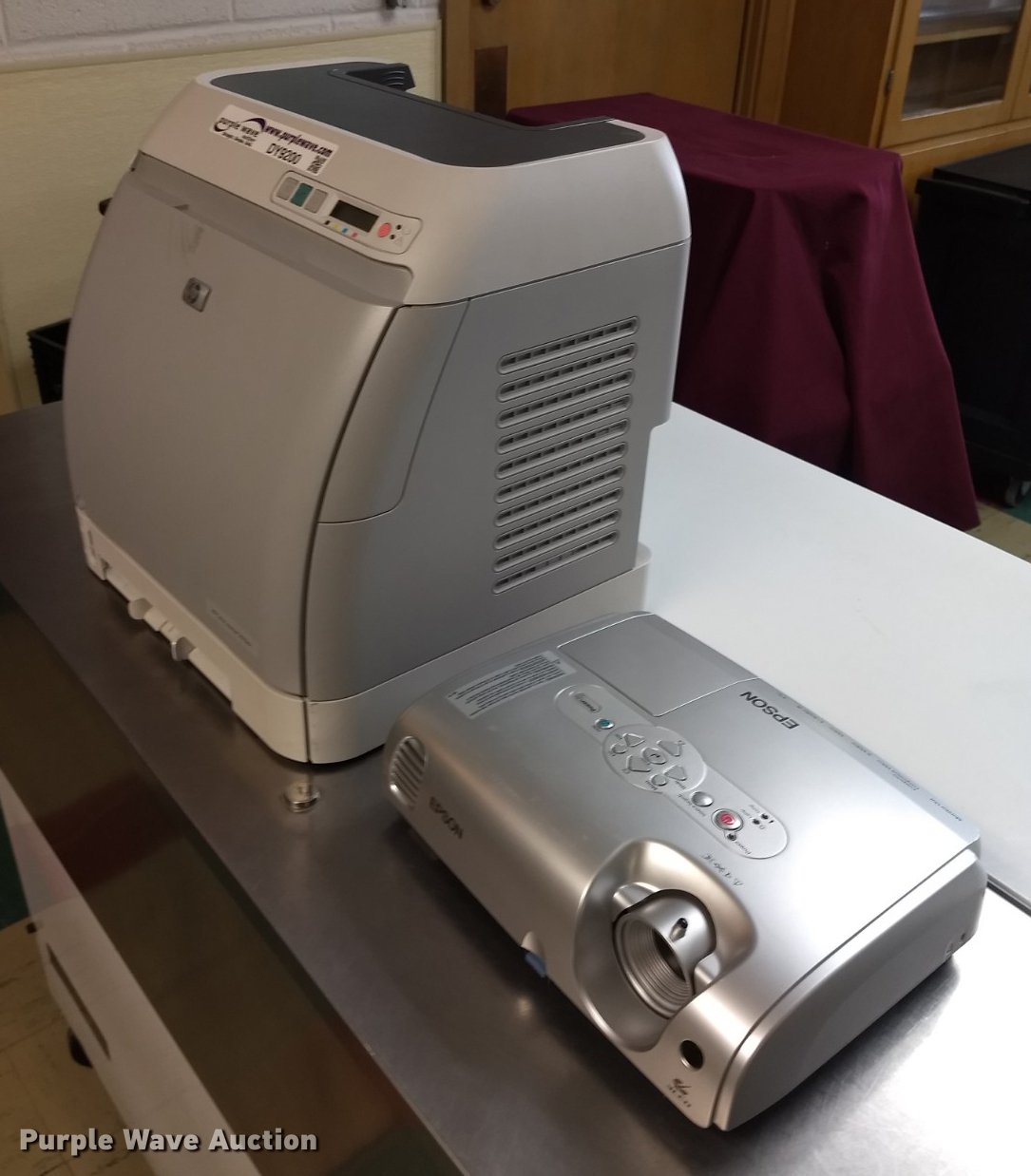 Purple Wave is selling a used Electronics in Kansas. This item is a Electronics with the following: HP Laserjet 2605dn printer, Serial CNBC65J039, Epson EMP-S3 projector, Serial GM9G623590F