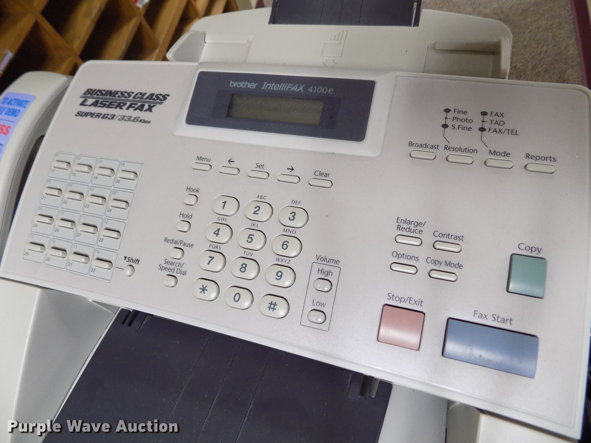 Purple Wave is selling a used Copy or Printing Machine in Kansas. This item is a Brother 4100E Business Class laser fax machine with the following: Super3G/33.6kbps, Serial U61639H6J518521