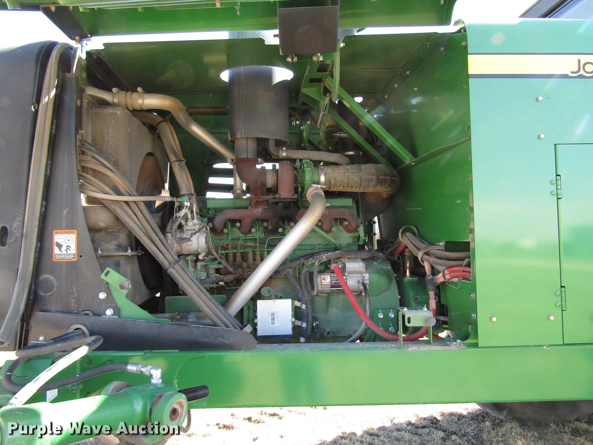 Purple Wave is selling a used Windrower Self Propelled in Texas. This item is a 2013 John Deere R450 windrower with the following: 1,769 engine hours on meter, 1,016 header hours on meter, John Deere 6068HE051 6.8L six cylinder turbo diesel engine, Serial PE6068L883658, Two speed hydrostatic transmission, AC and heat, Tilt steering wheel, AM/FM, Suspension seat, Instructor's seat, Work lights, John Deere 995 disc head, 16'W, Hydraulic head tilt, Steel/steel conditioners, Serial 1E00995SHCD390855, 18.4R38 front tires, 14L-16.1SL rear tires, Serial 1E0R450XPCD390524, Unit# 7