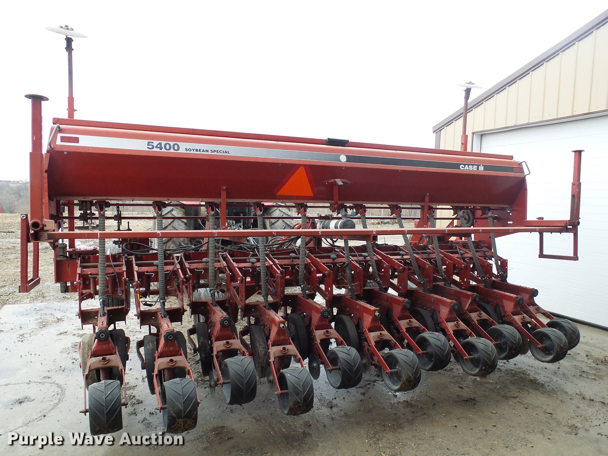 Purple Wave is selling a used Grain Drill or Seeder in Missouri. This item is a Case IH 5400 Soybean Special grain drill with the following: 11 row units, 15" row spacing, Bulk fill system, Ground meter drive, (2) 9.5L-15SL transport tires, (2) 9.5L-14 drive/outside tires, Serial 0852293