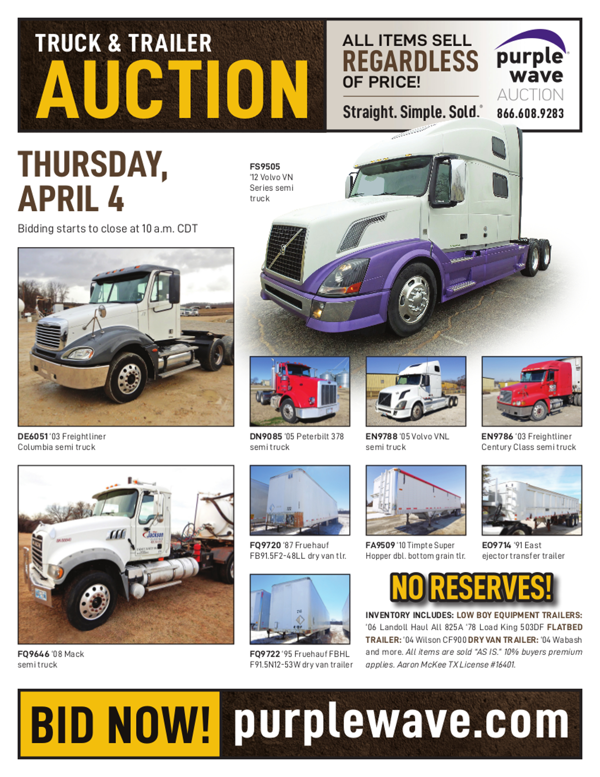 SOLD! April 4 Truck and Trailer Auction