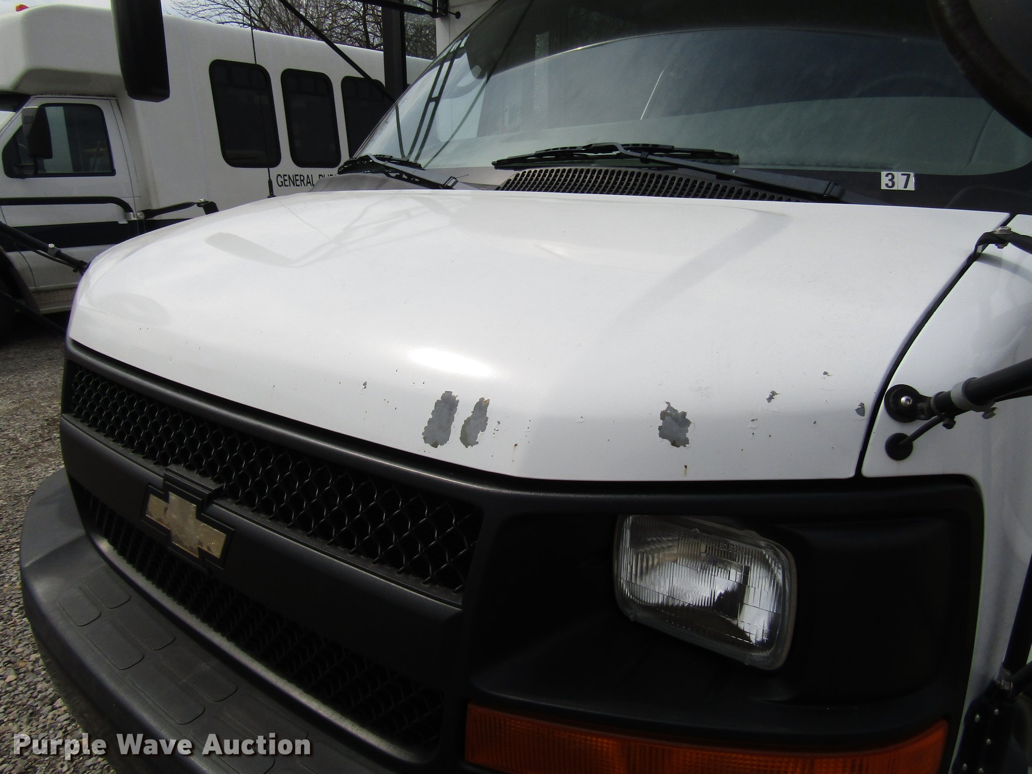 Purple Wave is selling a used Bus in Kansas. This item is a 2008 Chevrolet Express 3500 Cargo school bus with the following: 110,576 miles on odometer, 6.0L V8 OHV 16V gas engine, Automatic transmission, Single axle, AC and heat, Carrier rear AC, AM/FM/CD, Heated mirrors, Brake controls, Electric passenger sliding door, 14 passenger capacity, (2) child safety seats, Braun NL9171B2 wheelchair lift, Serial BB01177, Ceiling, rear, and side emergency exits, Backup alarm, Spring suspension, Hydraulic brakes, 166" wheelbase, 225/75R16 tires, GVWR 12,300 lbs, Transmission has been removed, Non-operational unit, Unit# 37