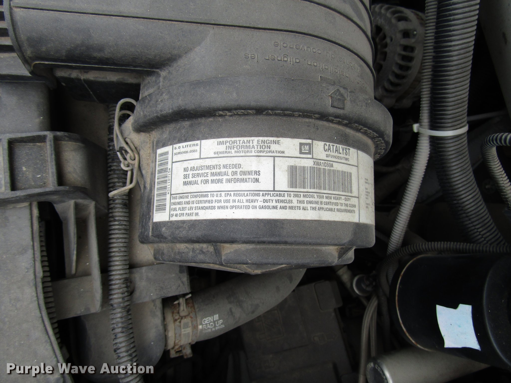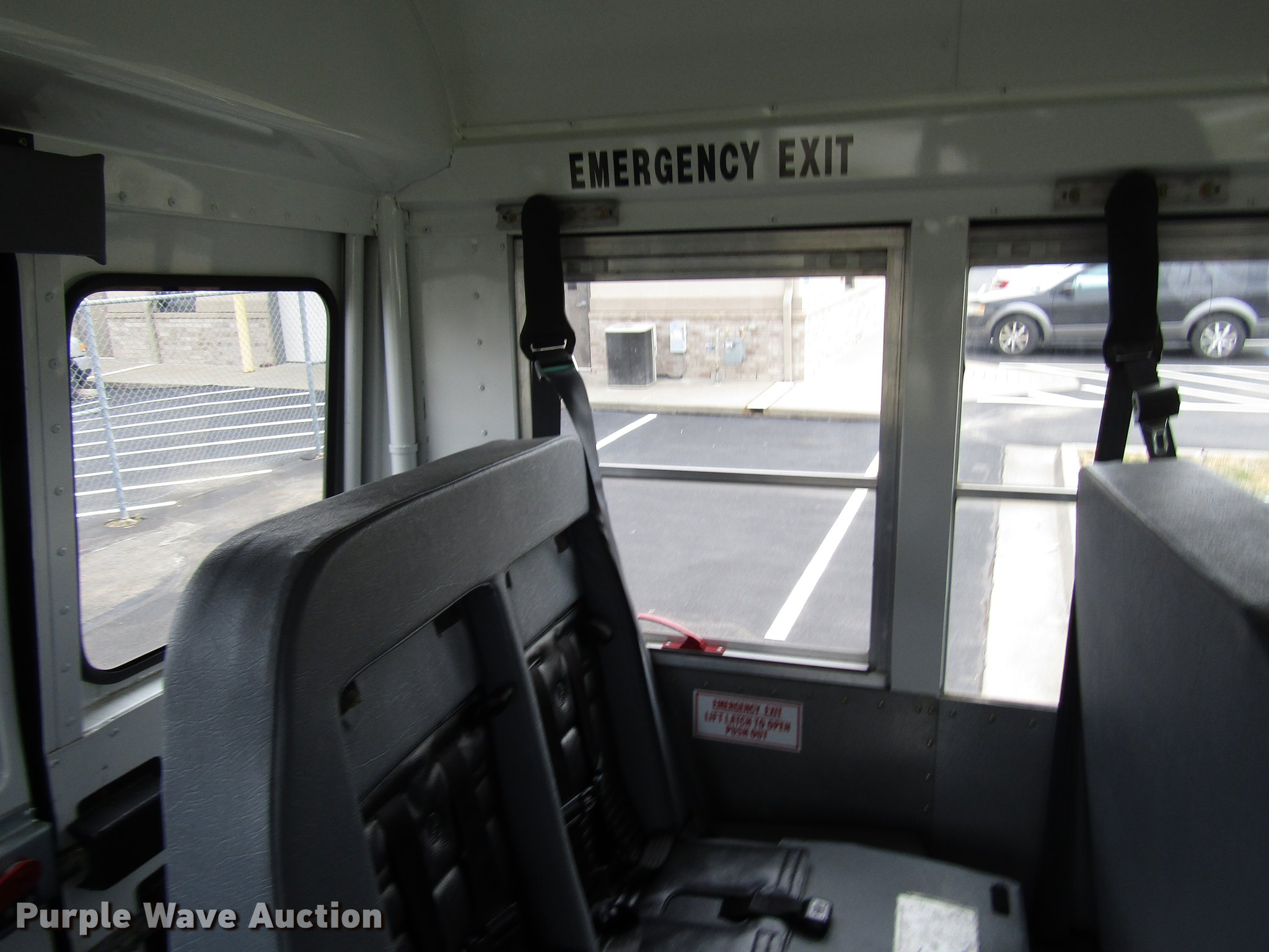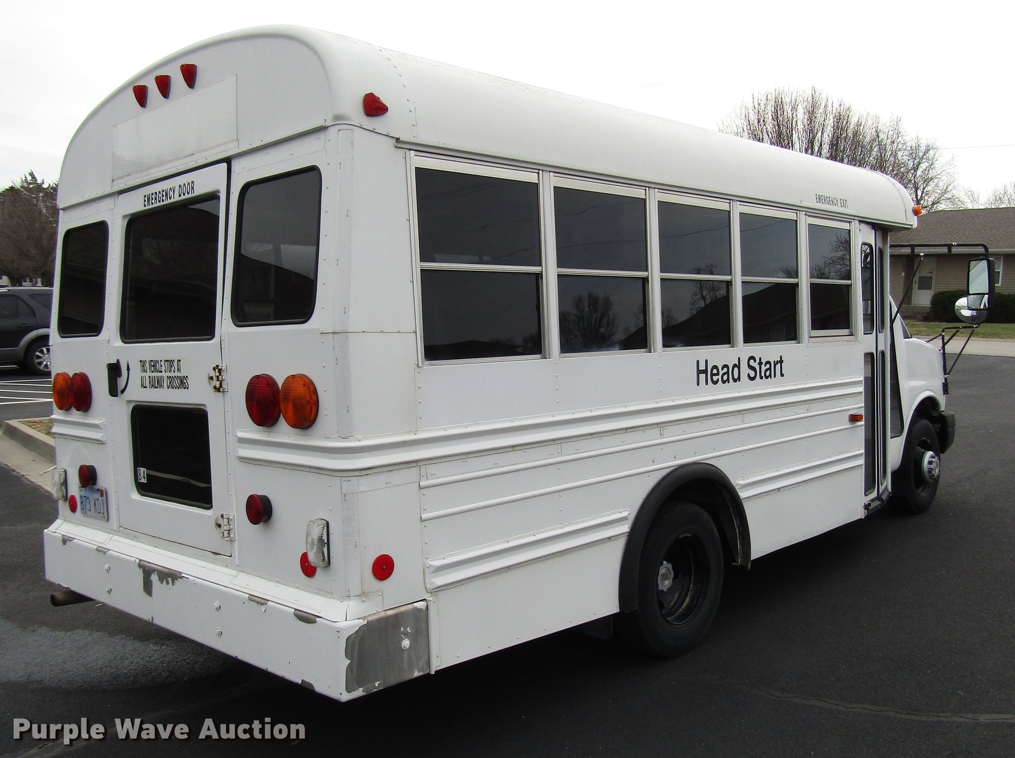 Purple Wave is selling a used Bus in Kansas. This item is a 2003 Chevrolet Express G3500 school bus with the following: 48,910 miles on odometer, 6.0L V8 OHV 16V gas engine, Automatic transmission, Single axle, AC and heat, Rear AC, Brake controls, 16 passenger capacity, (14) child safety seats, Ceiling, rear, and side emergency exits, Backup alarm, Spring suspension, Hydraulic brakes, 142" wheelbase, 225/75R16 tires, GVWR 12,000 lbs, Possible front end issues, Unit# 84