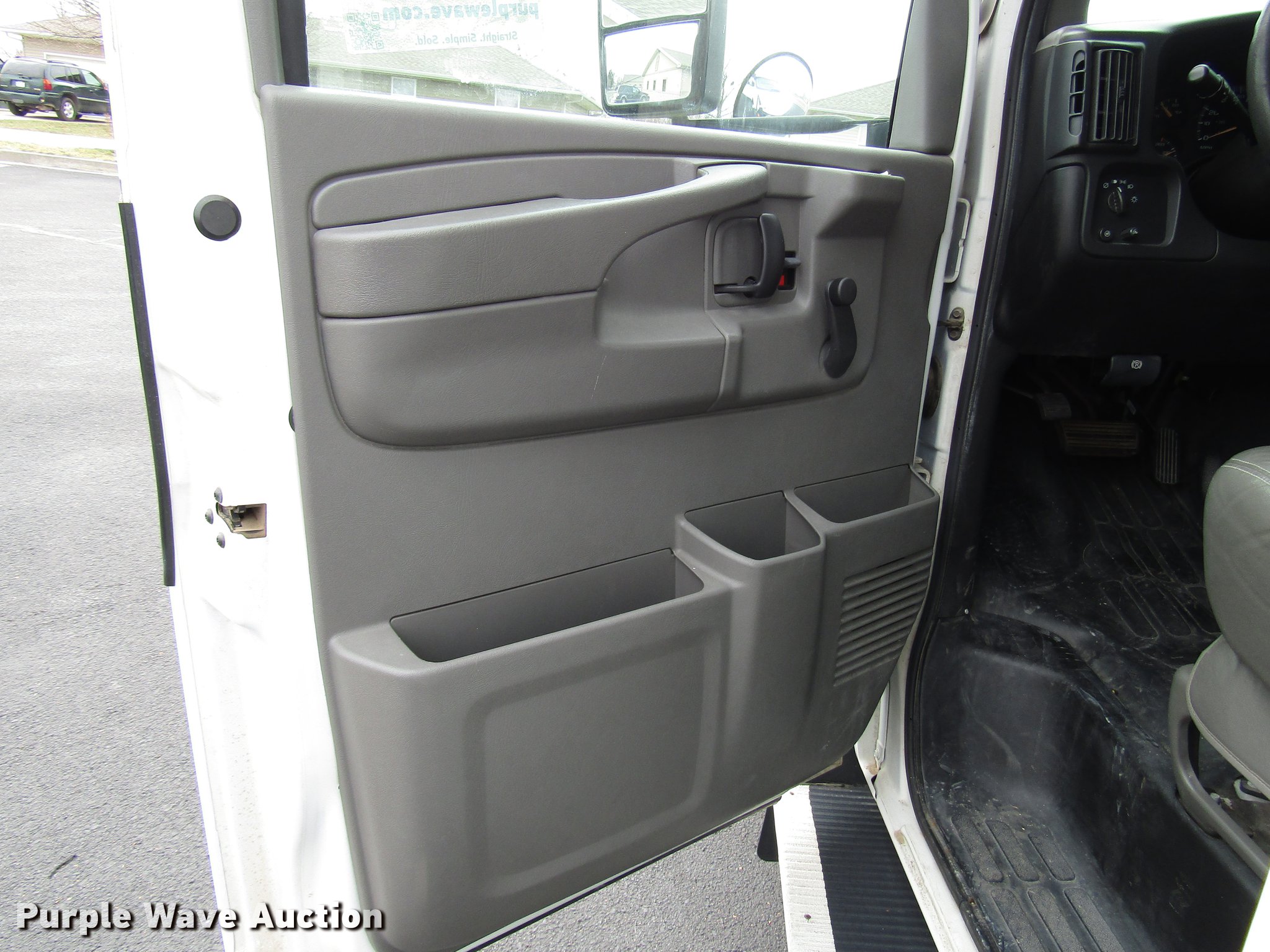 2003 Chevrolet Express G3500 school bus. 48,910 miles on odometer, 6.0L V8 OHV 16V gas engine, Automatic transmission, Single axle, AC and heat, Rear AC, Brake controls, 16 passenger capacity, (14) child safety seats, Ceiling, rear, and side emergency exits, Backup alarm, Spring suspension, Hydraulic brakes, 142" wheelbase, 225/75R16 tires, GVWR 12,000 lbs, Possible front end issues, Unit# 84. Kansas title. 1GBJG31U731118715. SEK-CAP. 401 N Sinnet St. Girard, KS 66743