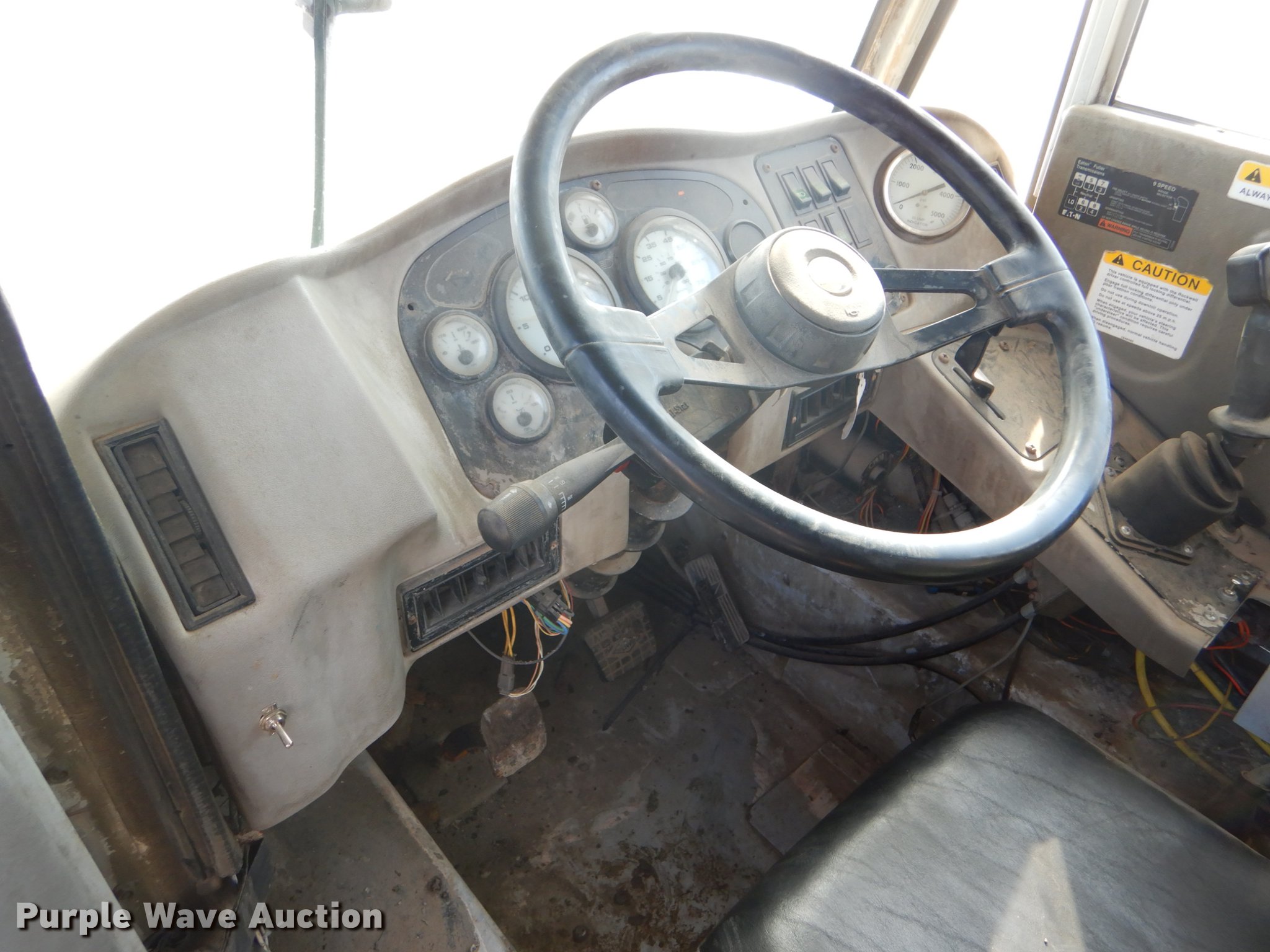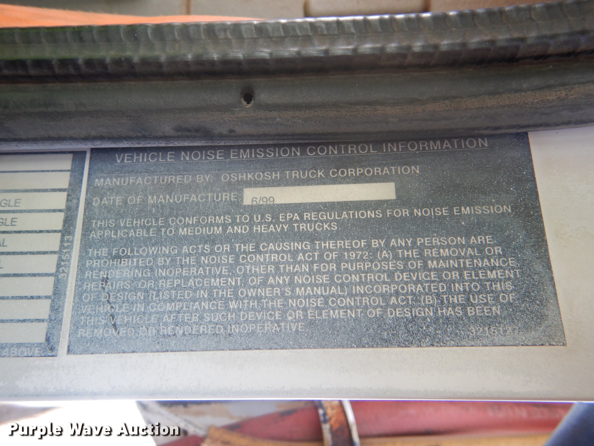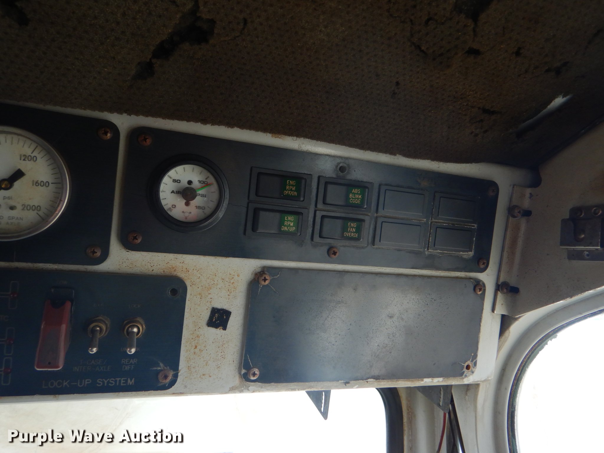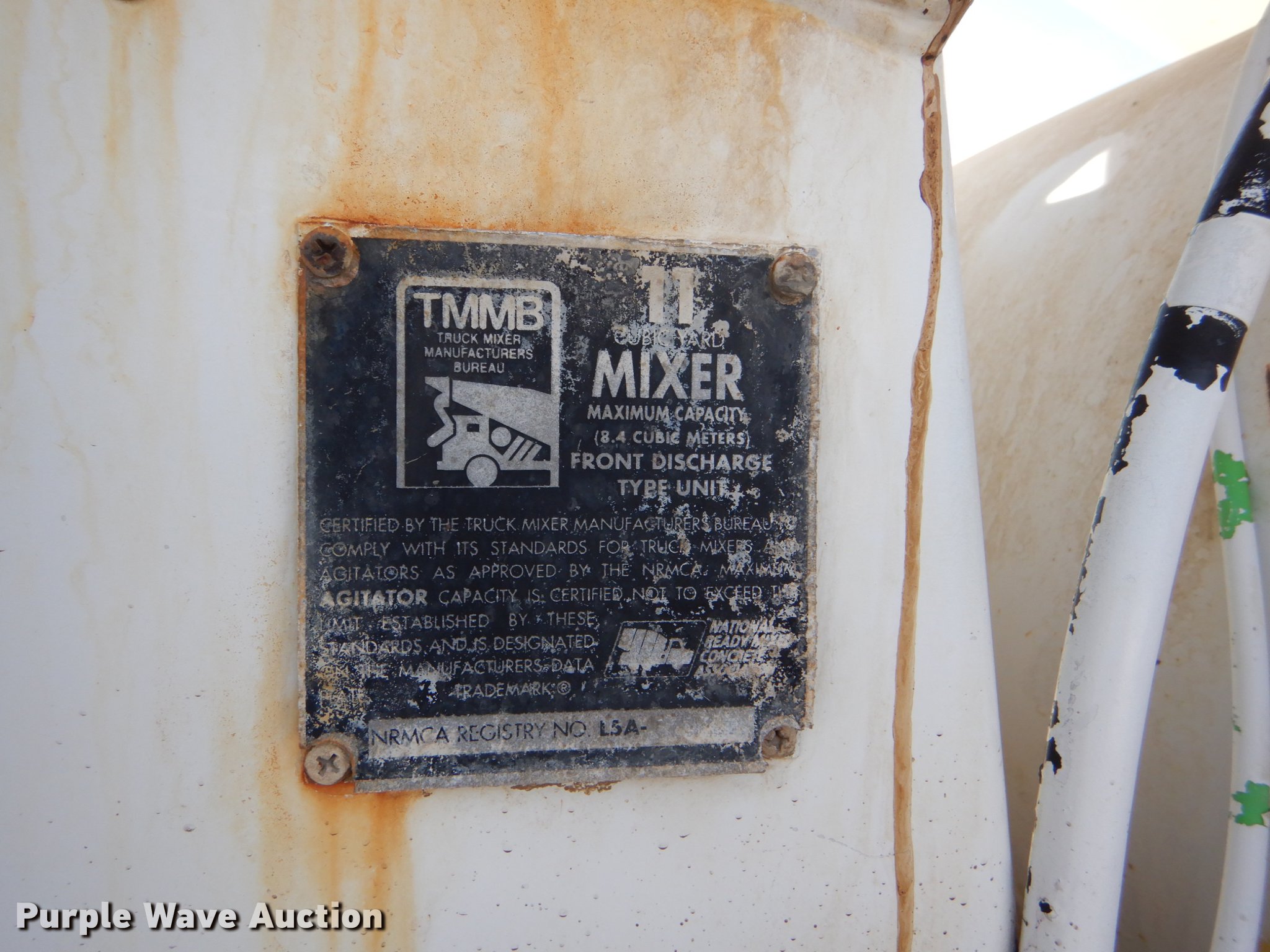 1999 Oshkosh S2346 ready mix truck. 156,601 miles on odometer, 13,562 hours on meter, Caterpillar C12 12.0L L6 turbo diesel engine 355 HP , Serial 2KS10104, Eaton Fuller nine speed manual transmission, Six wheel drive, Inter-axle differential lock, Tandem axle Pusher tag axle, Suspension seat, Drum/axle controls, PTO, 11 cu.yd. mixer capacity, (4) steel chute extensions, 100 gallon water tank, Front discharge, Single fuel tank, Front pin hitch, Walking beam suspension, Air brakes, 425/65R22.5 front tires, 255/70R22.5 pusher axle tires, 11R22.5 tag axle tires, 11R24.5 rear tires, GVWR 74,000 lbs, FAWR 22,000 lbs, IAWR 23,000 lbs, Pusher axle GAWR 11,020 lbs, Tag axle GAWR 13,200 lbs, RAWR 23,000 lbs. Kansas title. 10TJAWD28XS066807. Dunlap Construction Co Inc.. 2227 W Mary. Garden City, KS 67846