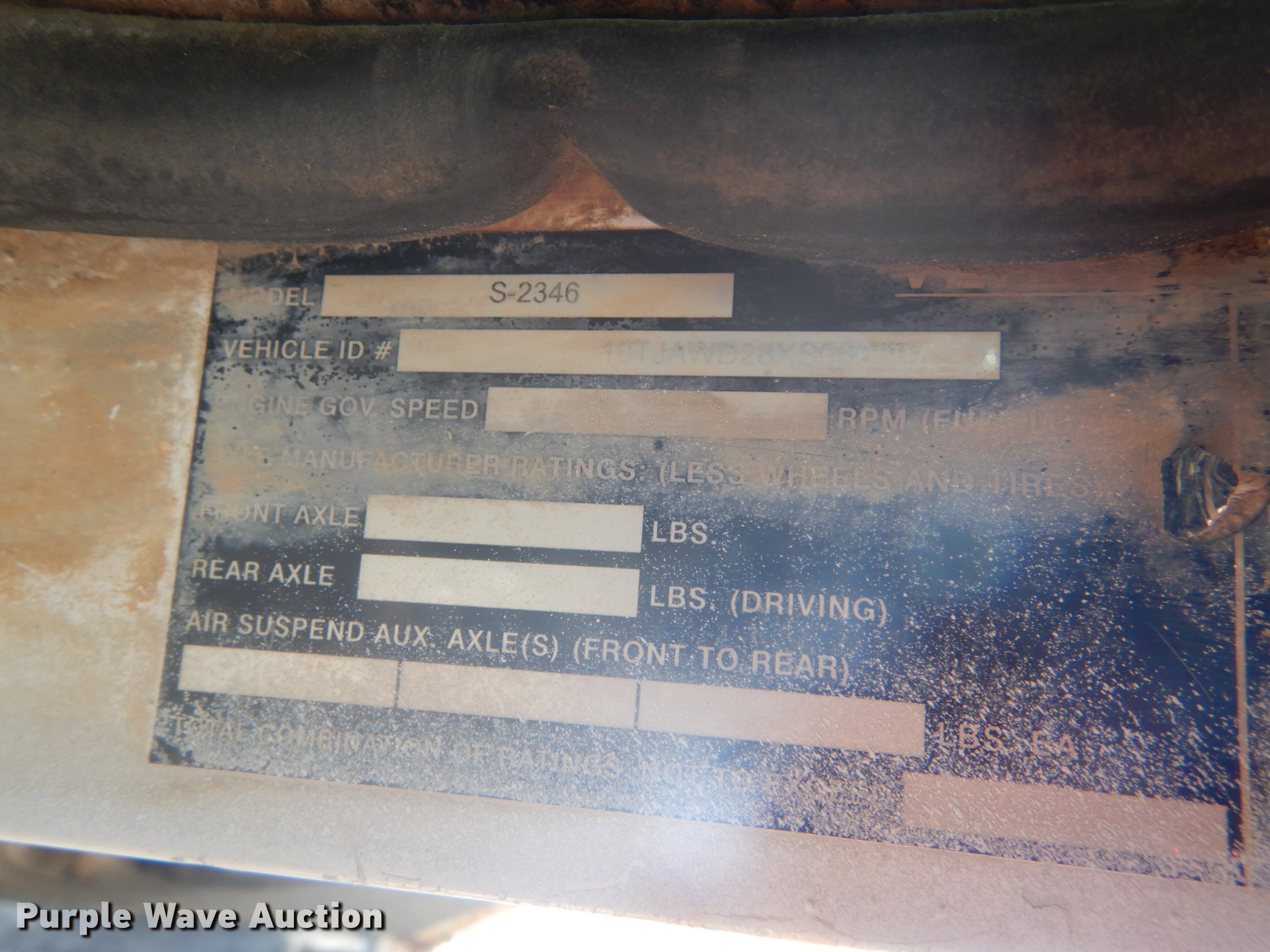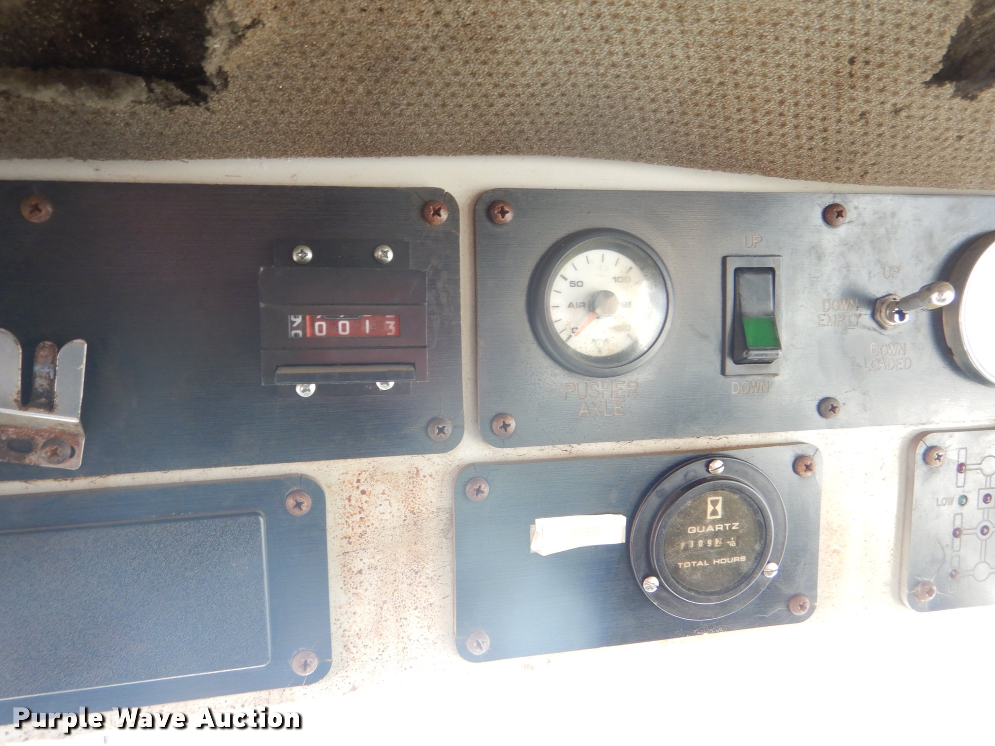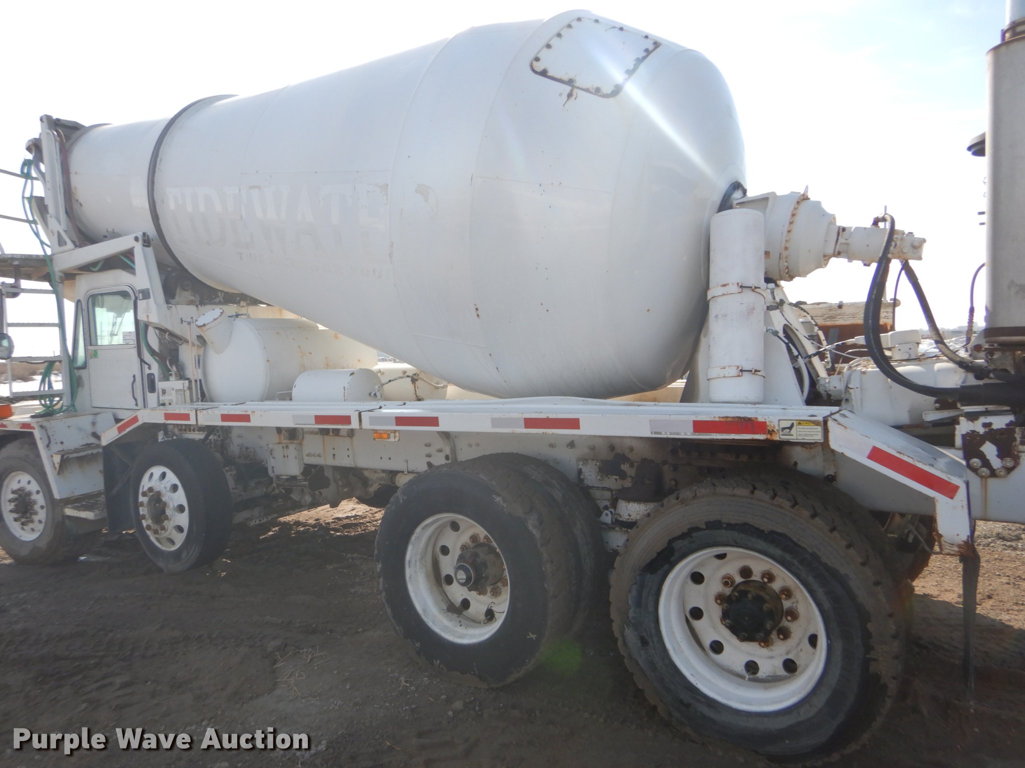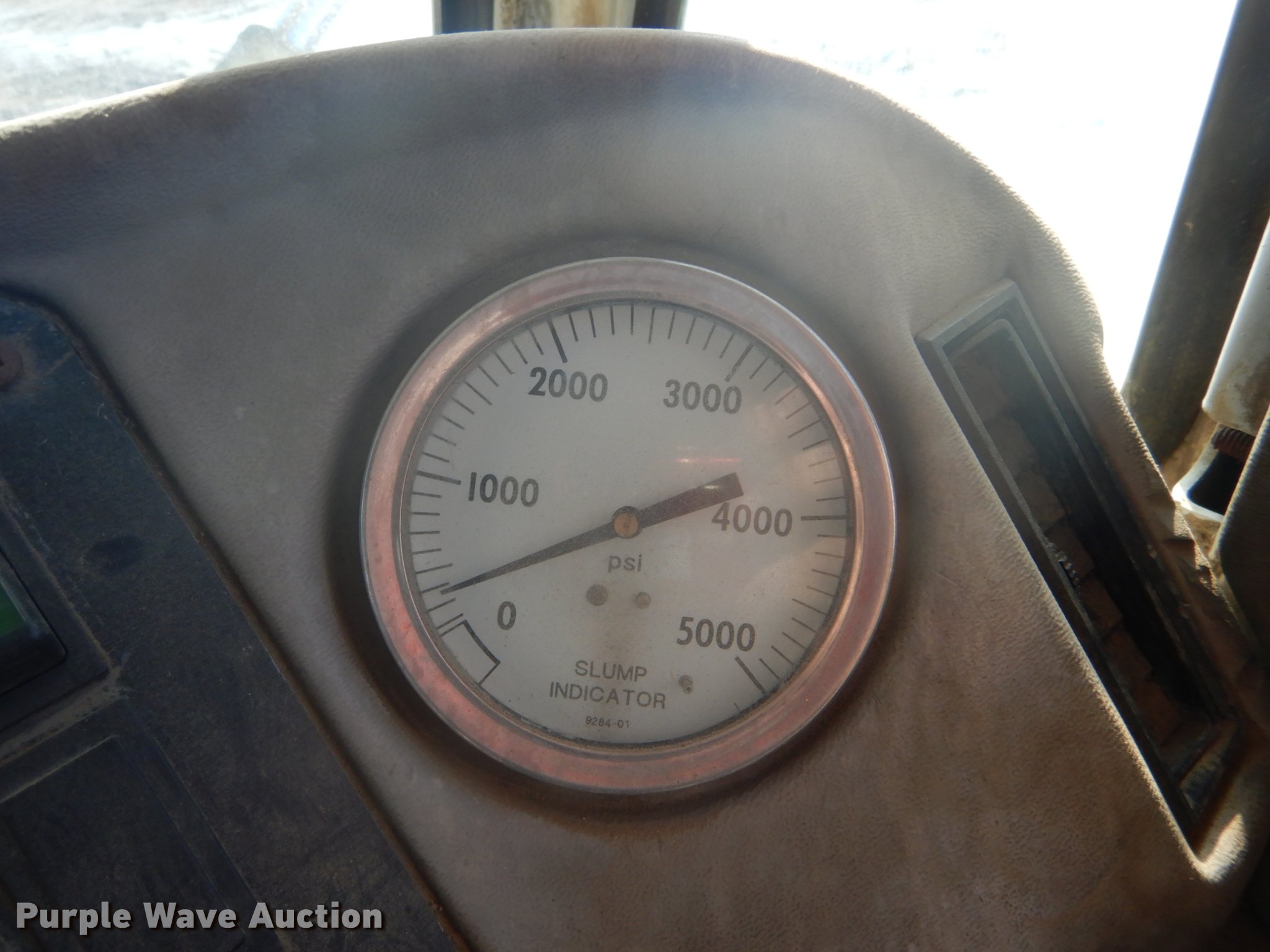 Purple Wave is selling a used Ready Mix or Pump Truck in Kansas. This item is a 1999 Oshkosh S2346 ready mix truck with the following: 156,601 miles on odometer, 13,562 hours on meter, Caterpillar C12 12.0L L6 turbo diesel engine, 355 HP, Serial 2KS10104, Eaton Fuller nine speed manual transmission, Six wheel drive, Inter-axle differential lock, Tandem axle, Pusher tag axle, Suspension seat, Drum/axle controls, PTO, 11 cu.yd. mixer capacity, (4) steel chute extensions, 100 gallon water tank, Front discharge, Single fuel tank, Front pin hitch, Walking beam suspension, Air brakes, 425/65R22.5 front tires, 255/70R22.5 pusher axle tires, 11R22.5 tag axle tires, 11R24.5 rear tires, GVWR 74,000 lbs, FAWR 22,000 lbs, IAWR 23,000 lbs, Pusher axle GAWR 11,020 lbs, Tag axle GAWR 13,200 lbs, RAWR 23,000 lbs