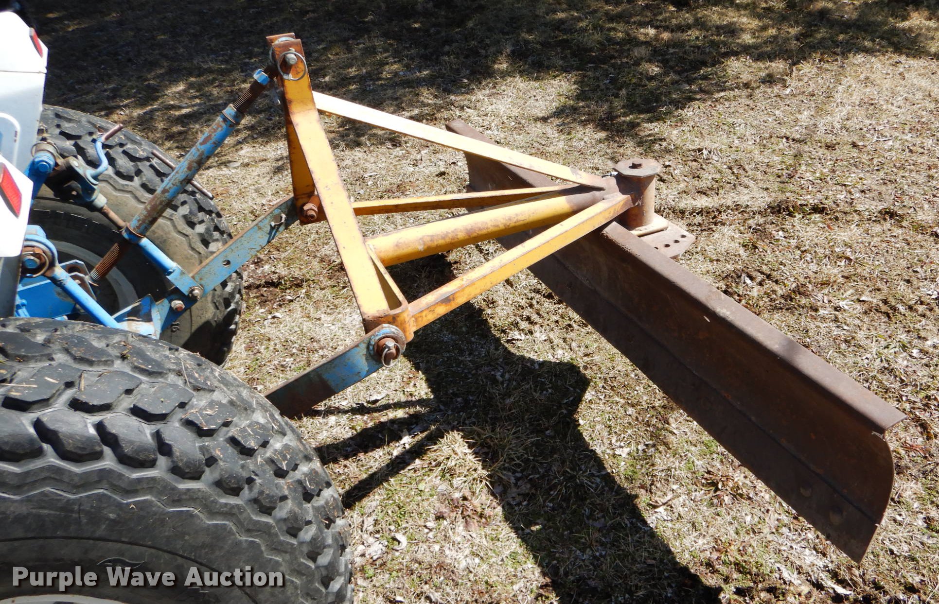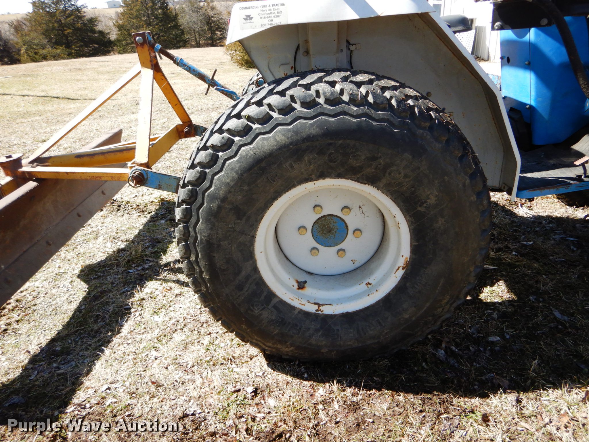 Purple Wave is selling a used Tractor in Missouri. This item is a 1990 Ford 1520 MFWD tractor with the following: 915 hours on meter, Three cylinder diesel engine, Serial J843-16966, Manual transmission, 3F-1R gears, Differential lock, Suspension seat, Koyker K1 loader, 60"W bucket, Two-lever controls, Three point, Top link, 540 PTO, Blade, 6'W x 13"H, Three point, 25x8.50-14 front tires, 13.6-16 rear tires, Serial UH26755
