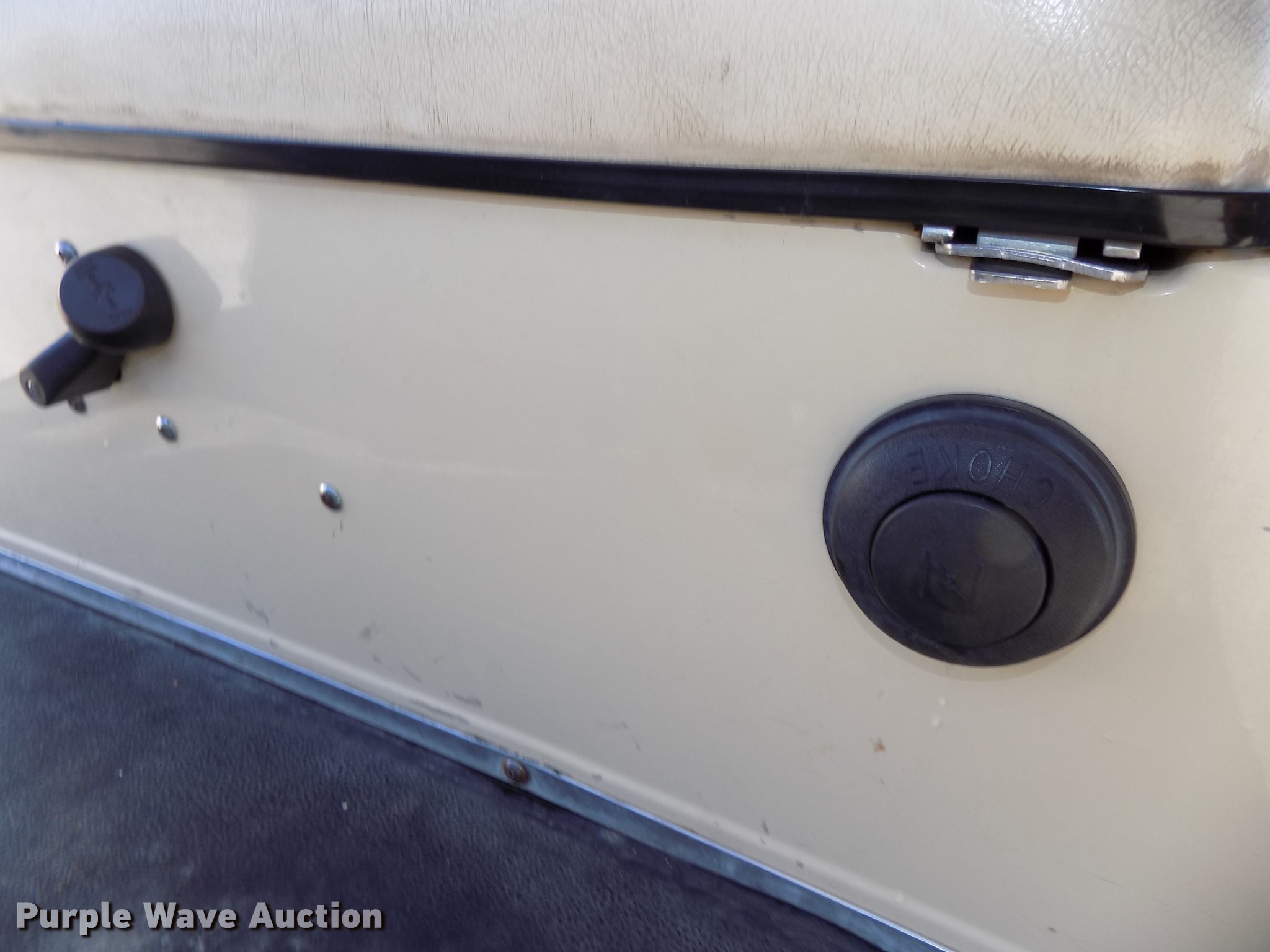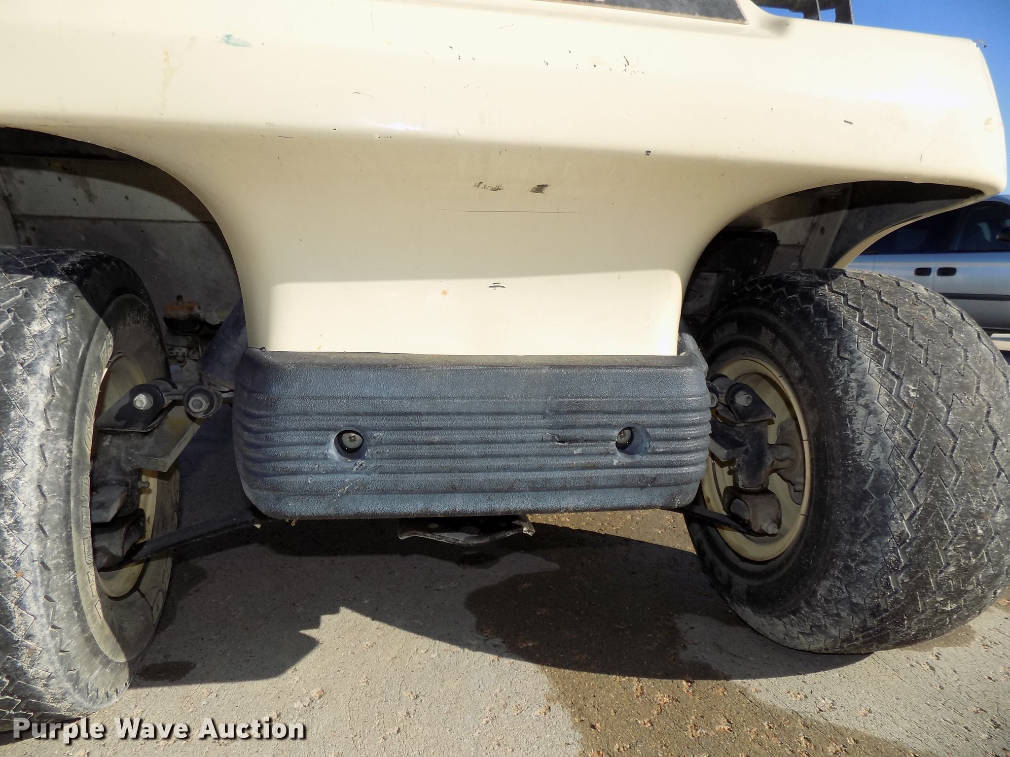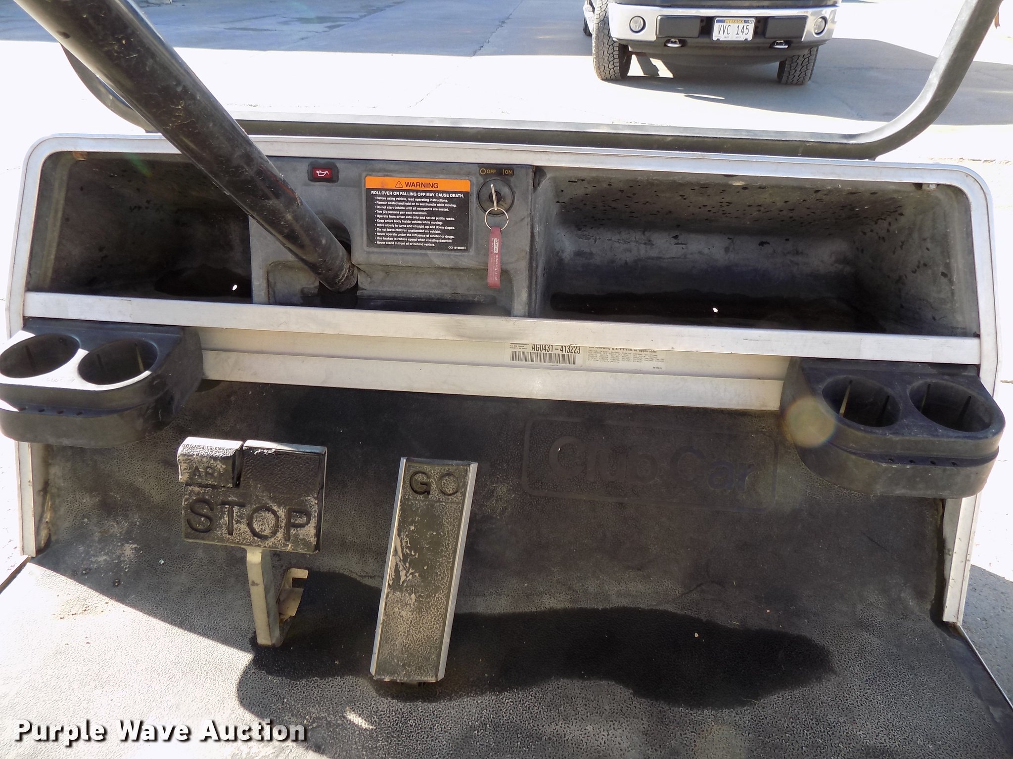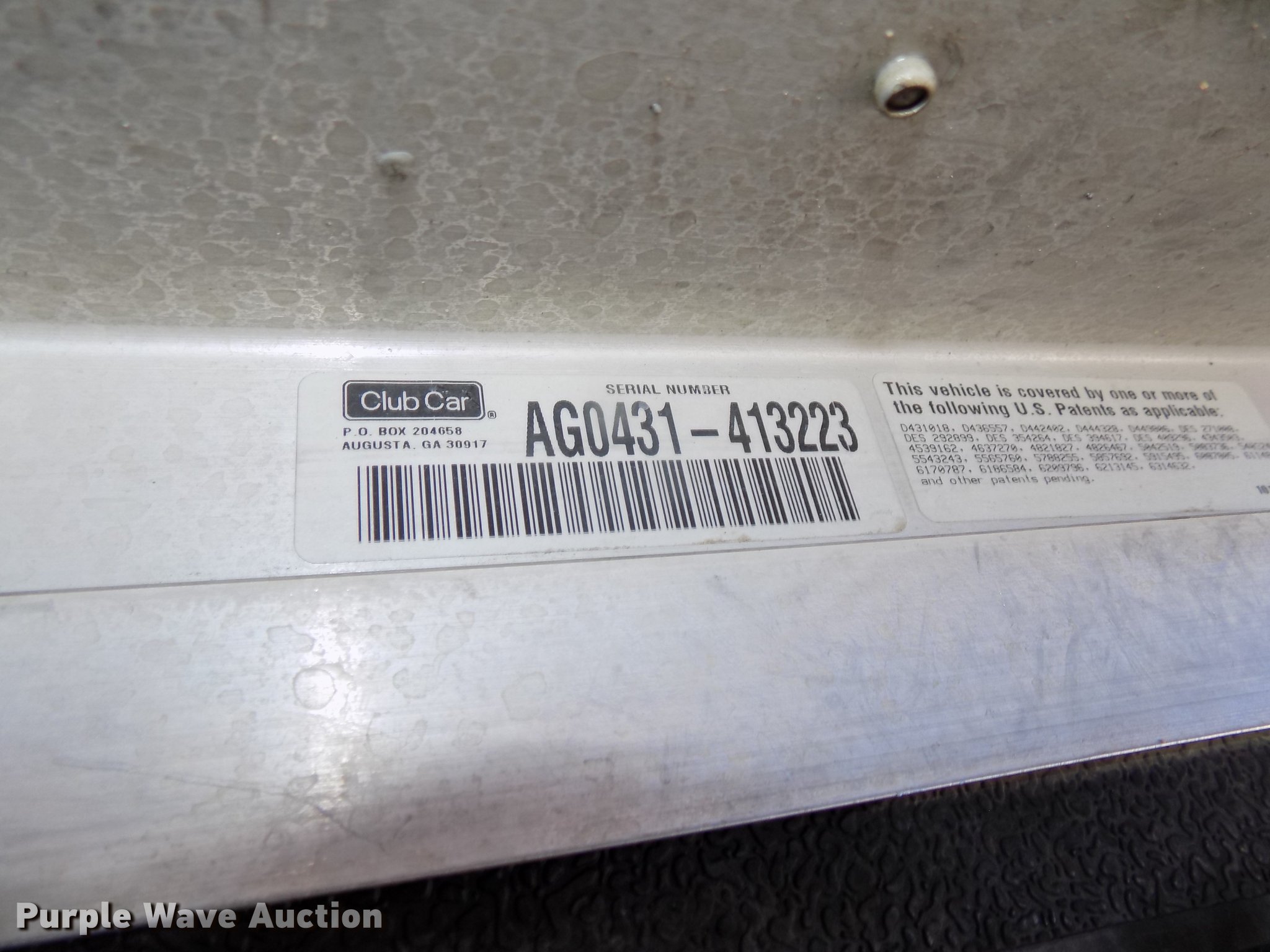 Purple Wave is selling a used Golf Cart in Nebraska. This item is a Club Car golf beverage cart with the following: Kawasaki single cylinder gas engine, Serial FE290D668445, Hydrostatic transmission, Canopy, Two passenger capacity, Electric start, 32"L x 42"W dump bed, 8.5"H aluminum sides, Rubber mat, End gate, 18x8.50-8 tires, Serial AG0431-413223