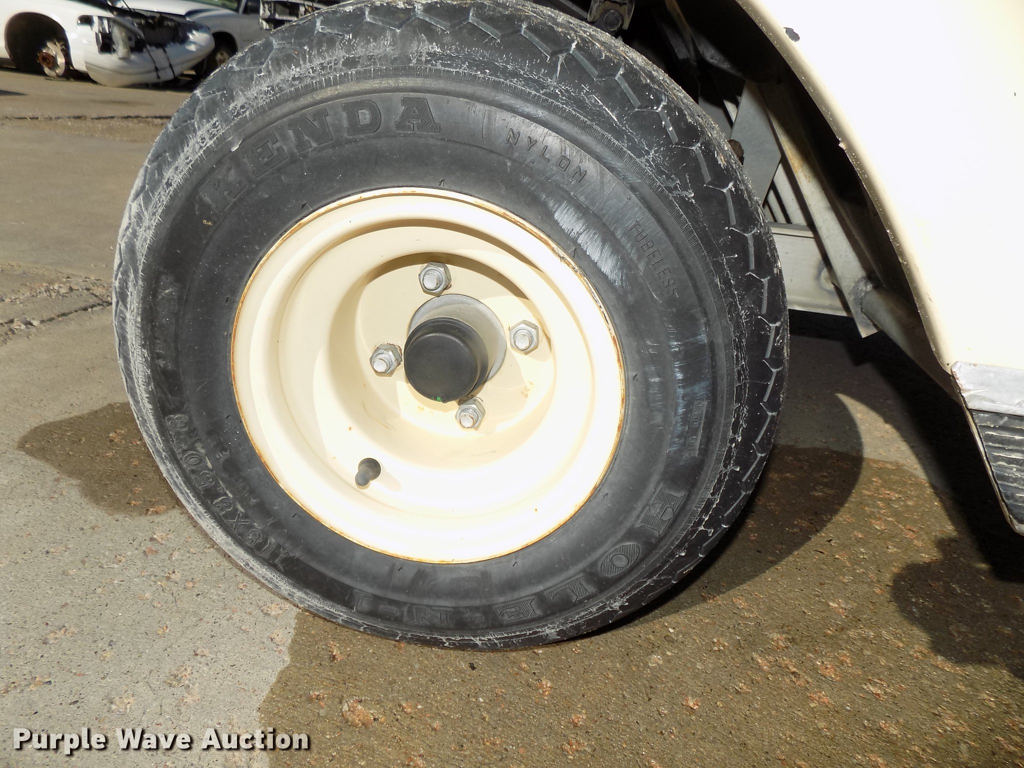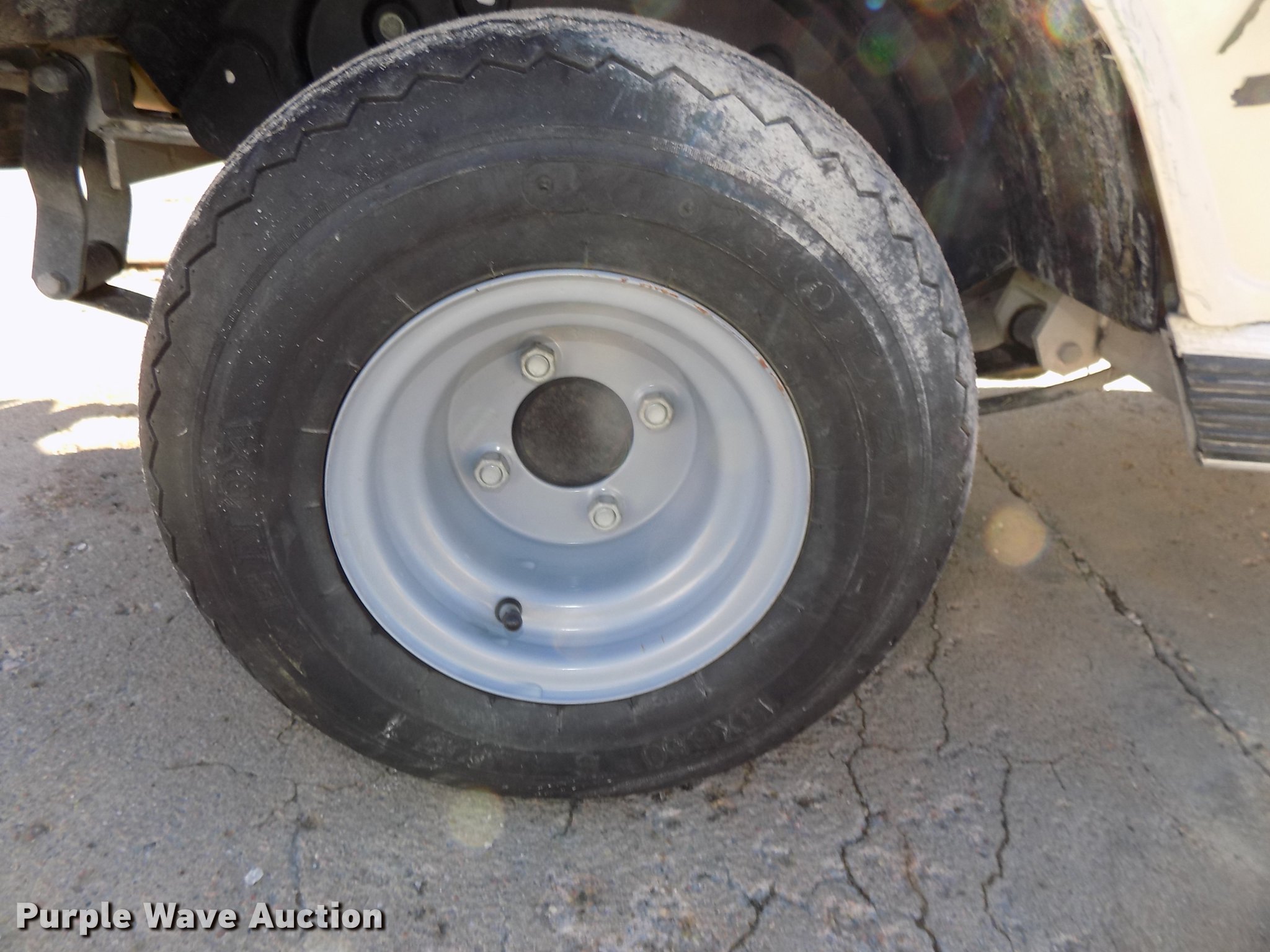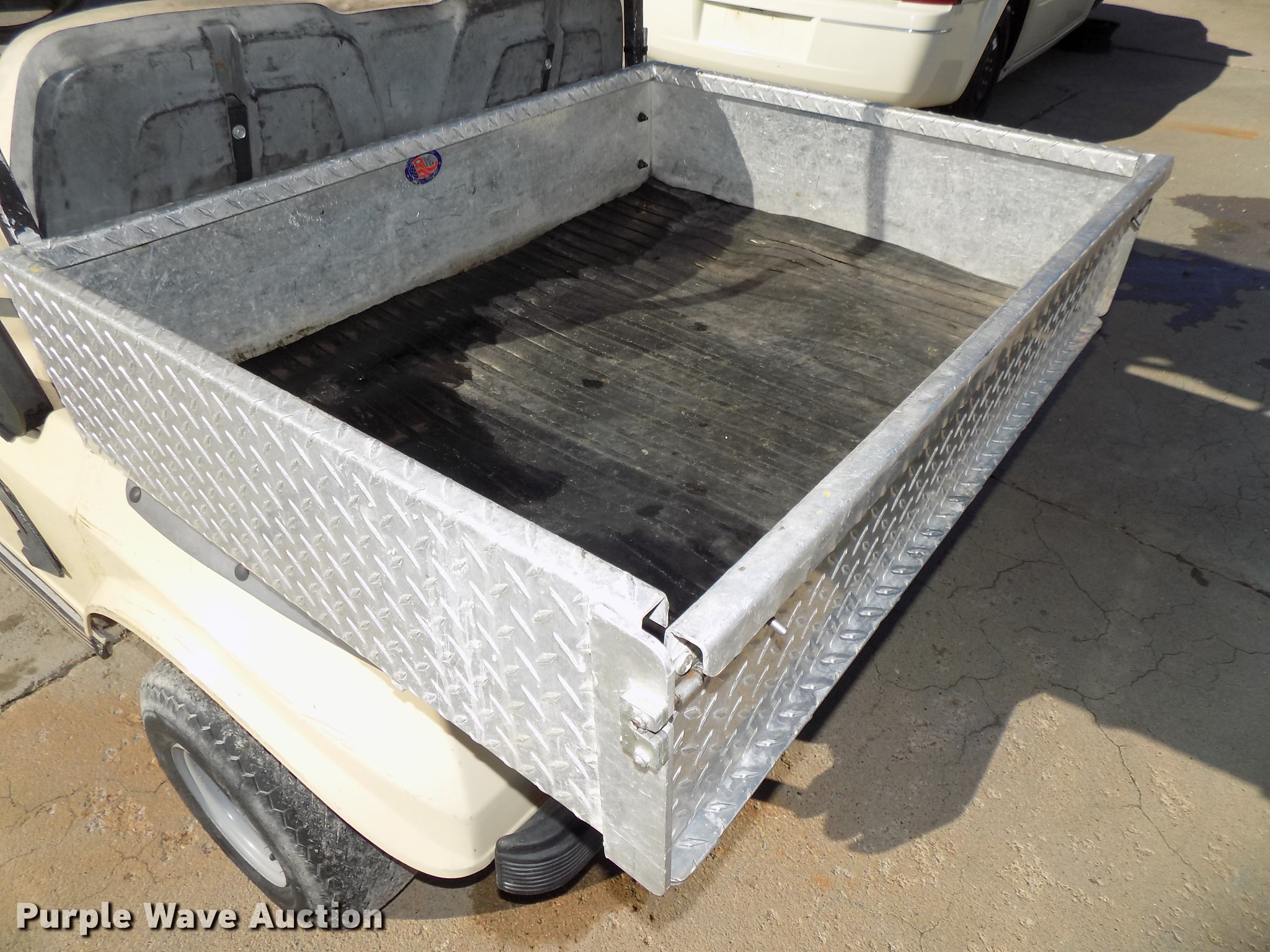 Club Car golf beverage cart. Kawasaki single cylinder gas engine Serial FE290D668445, Hydrostatic transmission, Canopy, Two passenger capacity, Electric start, 32"L x 42"W dump bed 8.5"H aluminum sides, Rubber mat, End gate, 18x8.50-8 tires, Serial AG0431-413223. Capital City Auto Recyclers. 100 W P St. Lincoln, NE 68528