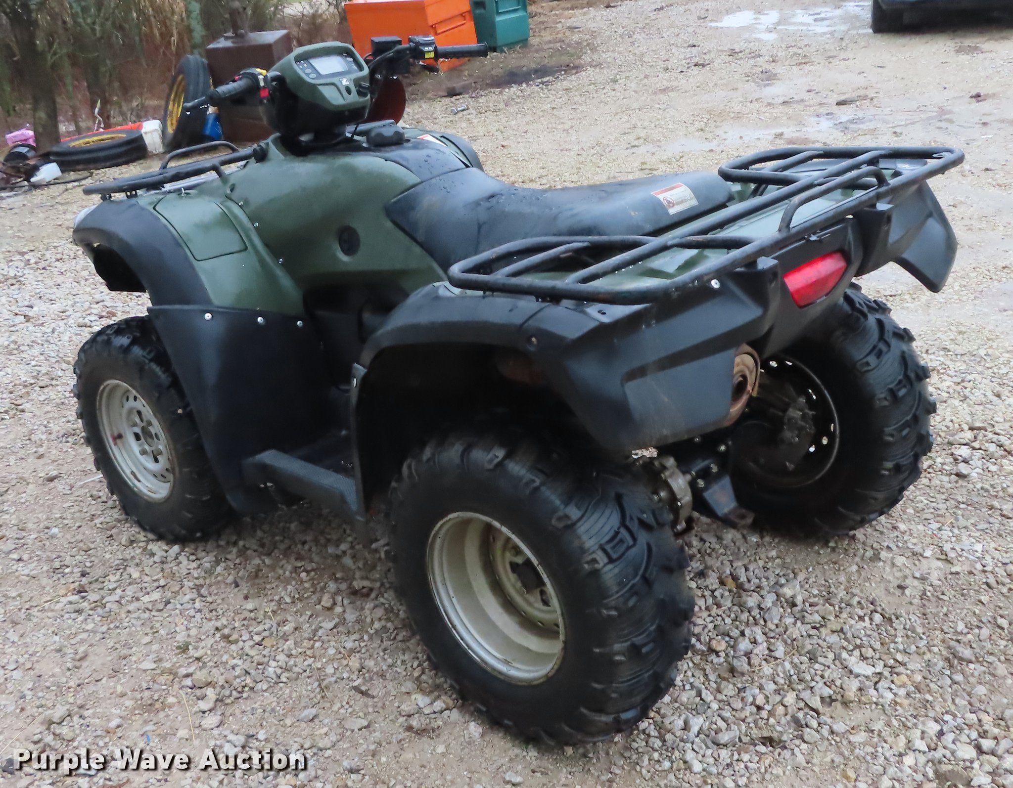 Purple Wave is selling a used ATV in Kansas. This item is a 2009 Honda Foreman ATV with the following: 3,158 miles on odometer, 500cc gas engine, Four wheel drive, AT25 x 8-12 front tires, AT25 x 10-12 rear tires