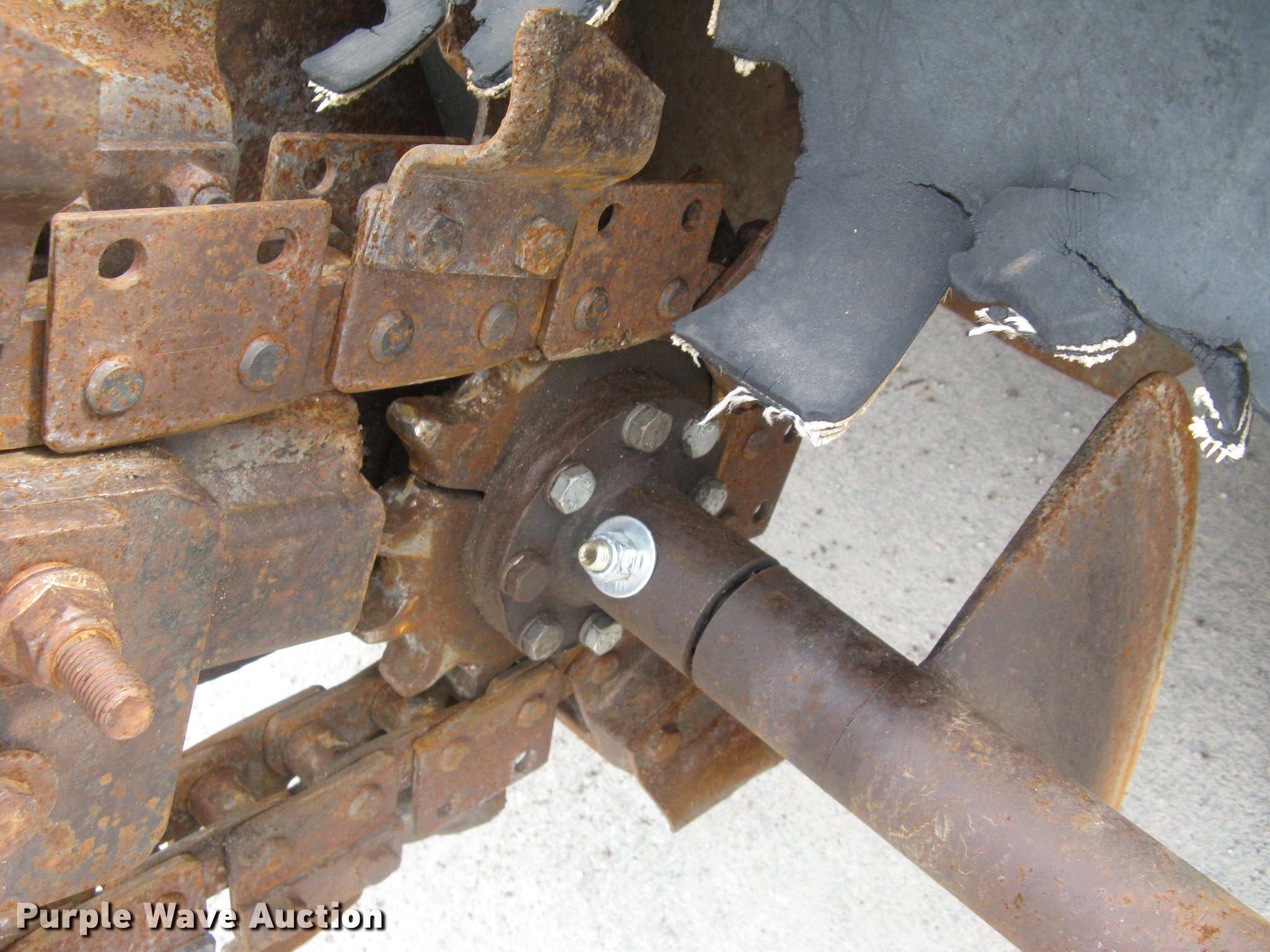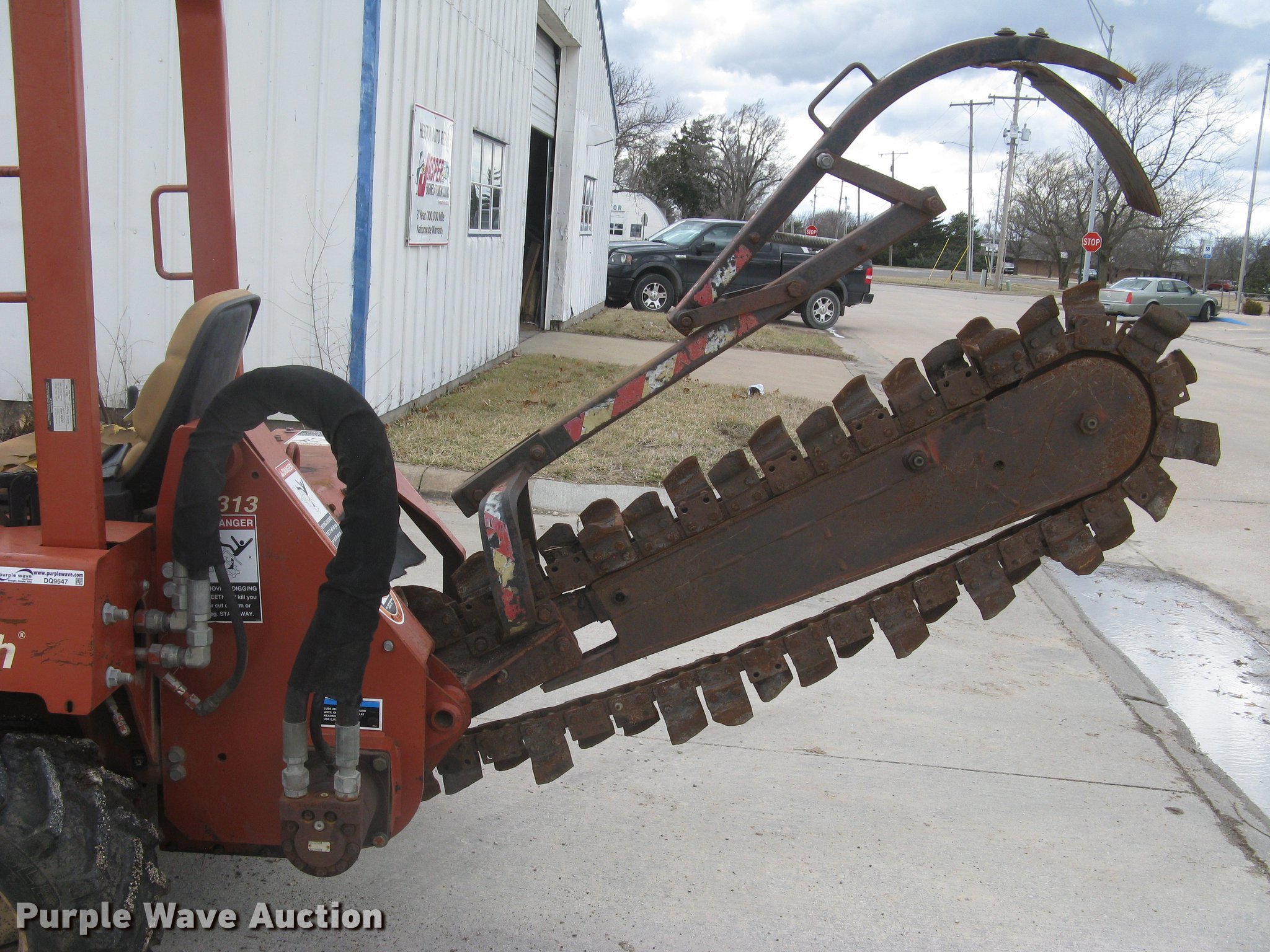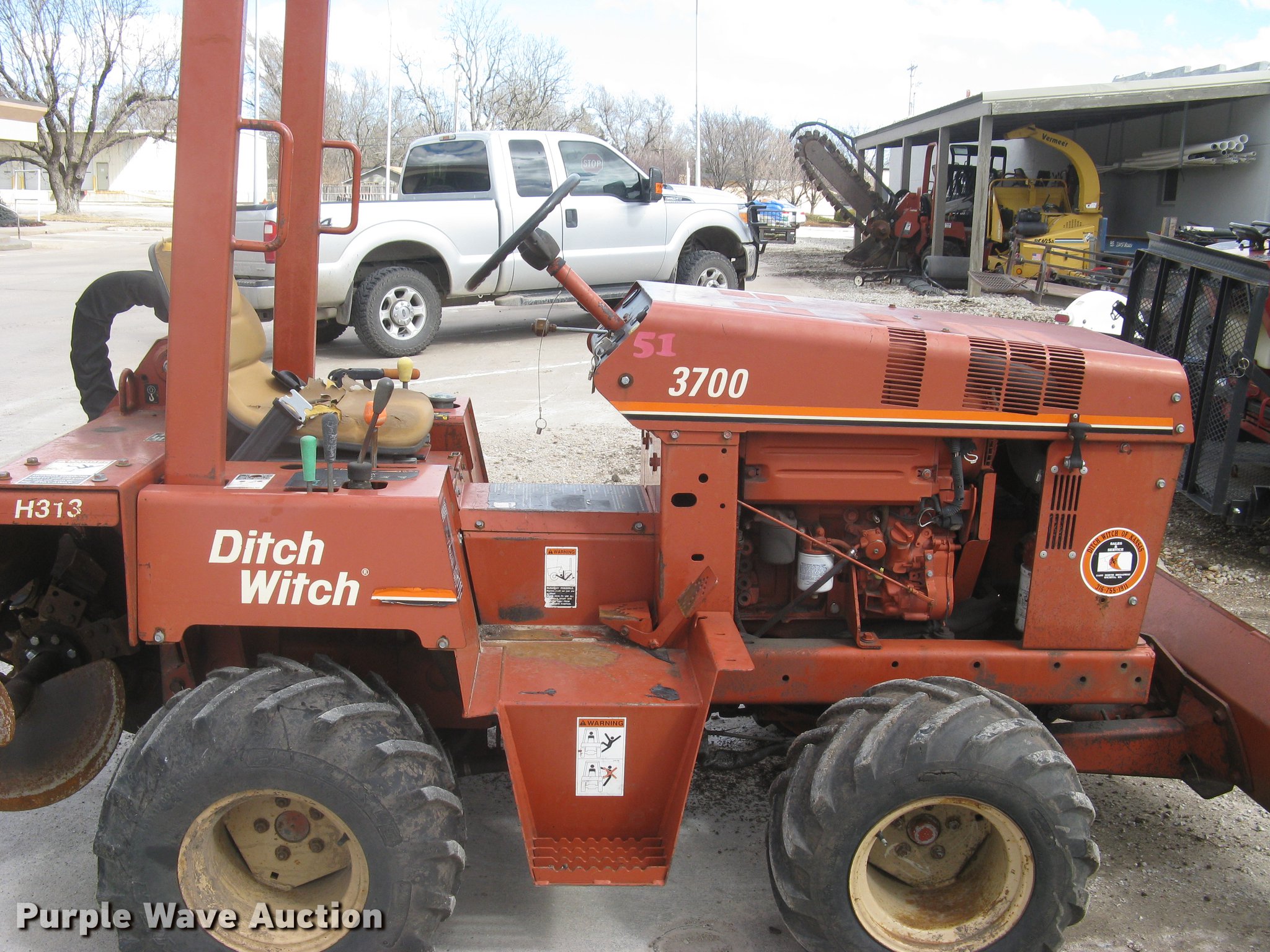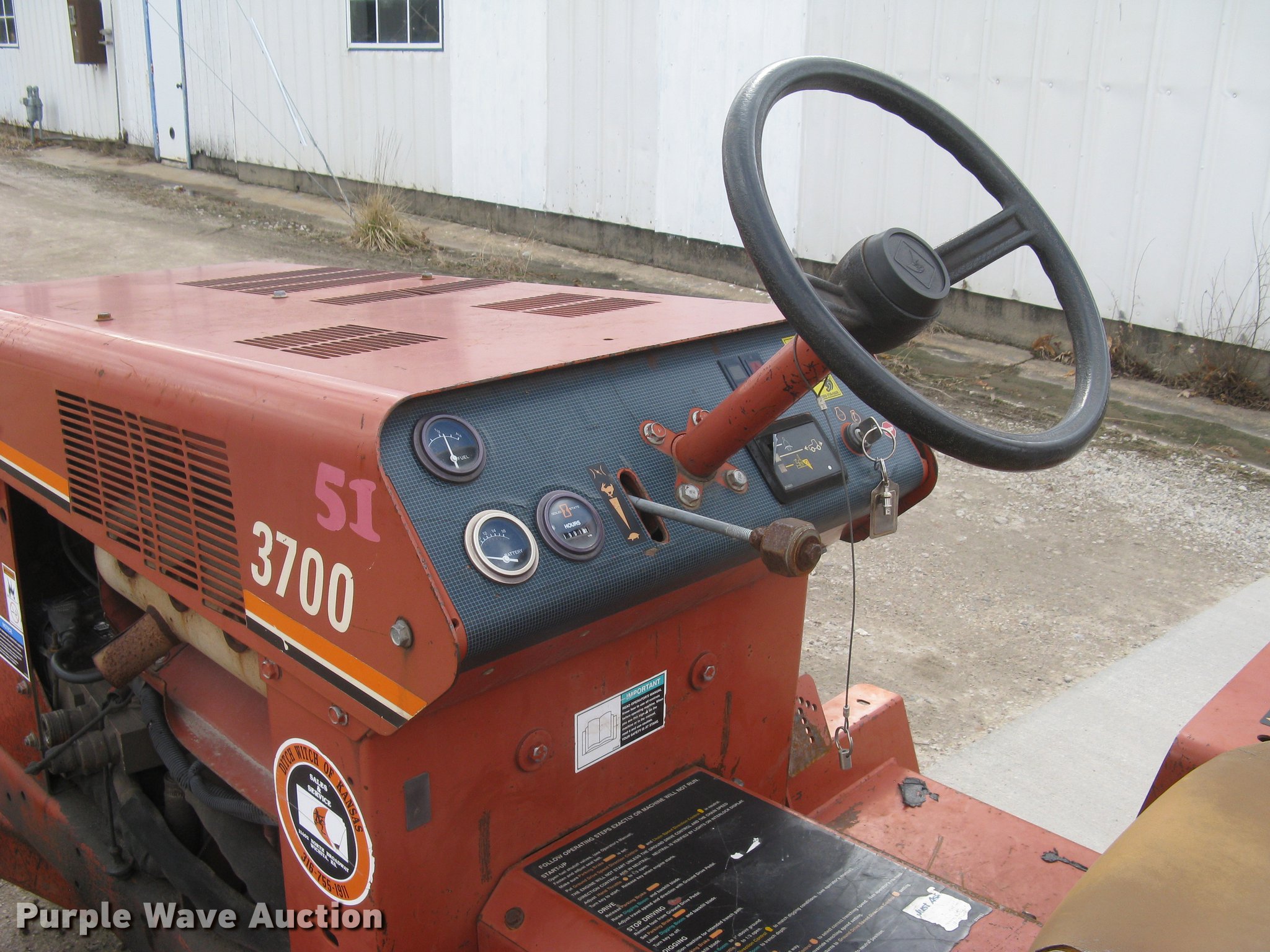 Purple Wave is selling a used Trencher or Rock Saw in Kansas. This item is a 2001 Ditch Witch 3700DD trencher with the following: 1,901 hours on meter, Deutz three cylinder diesel engine, Hydrostatic transmission, Two post ROPS, Trencher model H313, 84" boom length, 8" cutting width, Dirt teeth, Manual crumber arch, Serial 8V0013, 64"W four-way backfill blade, 26 x 12.00-12 NHS tires, Serial 3V0004
