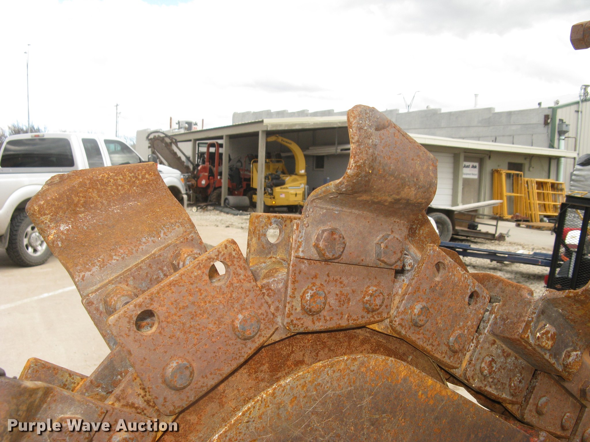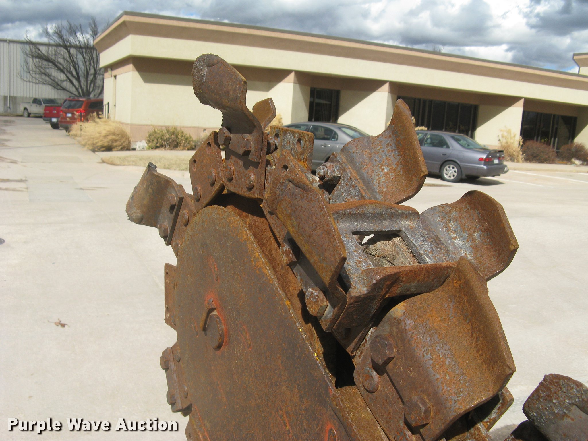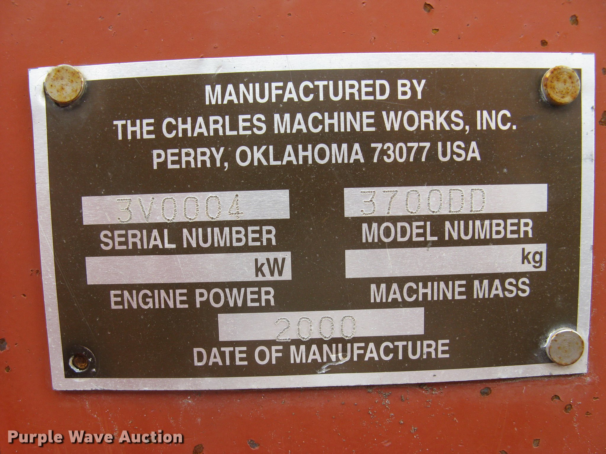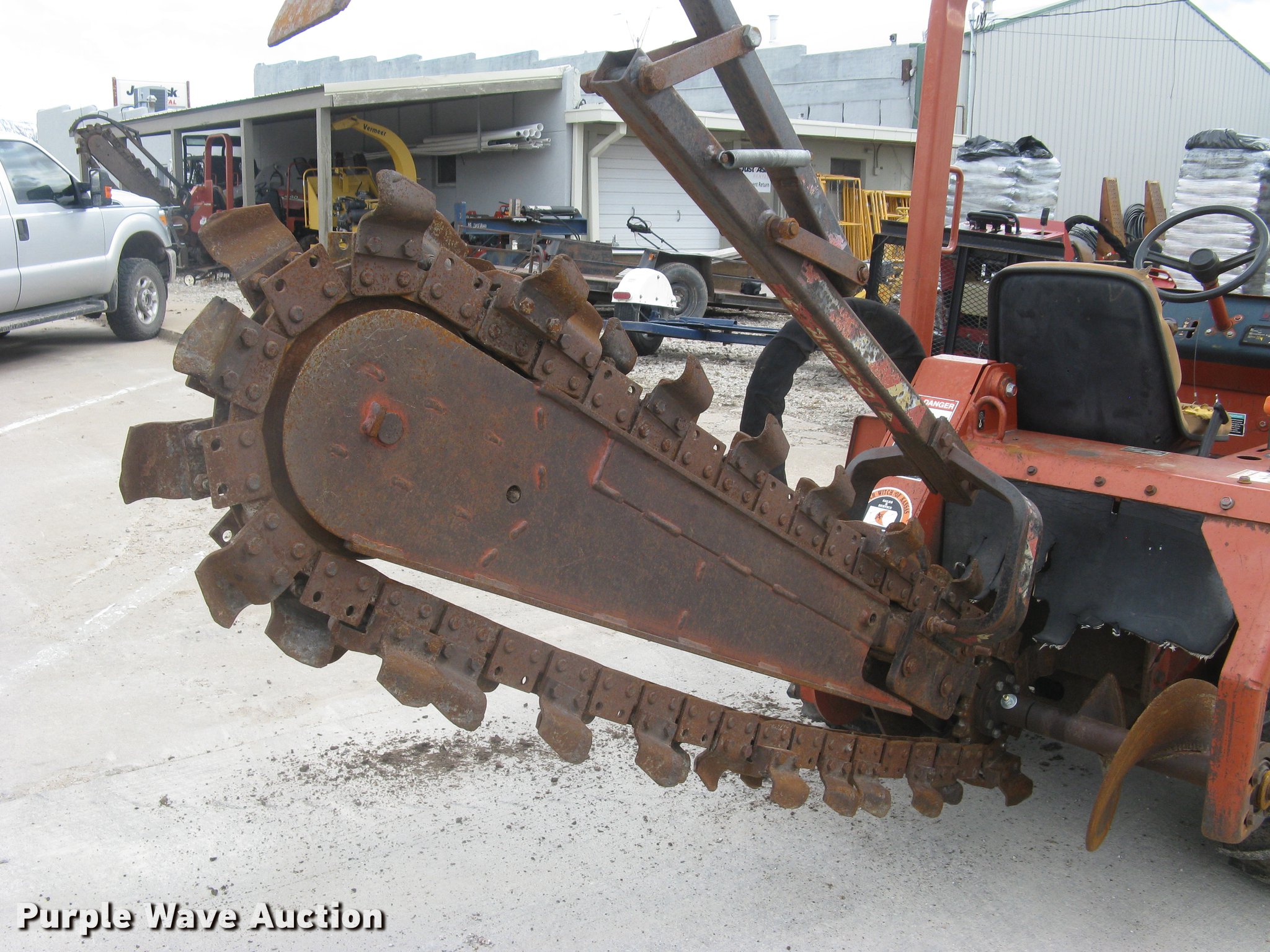 Purple Wave is selling a used Trencher or Rock Saw in Kansas. This item is a 2001 Ditch Witch 3700DD trencher with the following: 1,901 hours on meter, Deutz three cylinder diesel engine, Hydrostatic transmission, Two post ROPS, Trencher model H313, 84" boom length, 8" cutting width, Dirt teeth, Manual crumber arch, Serial 8V0013, 64"W four-way backfill blade, 26 x 12.00-12 NHS tires, Serial 3V0004