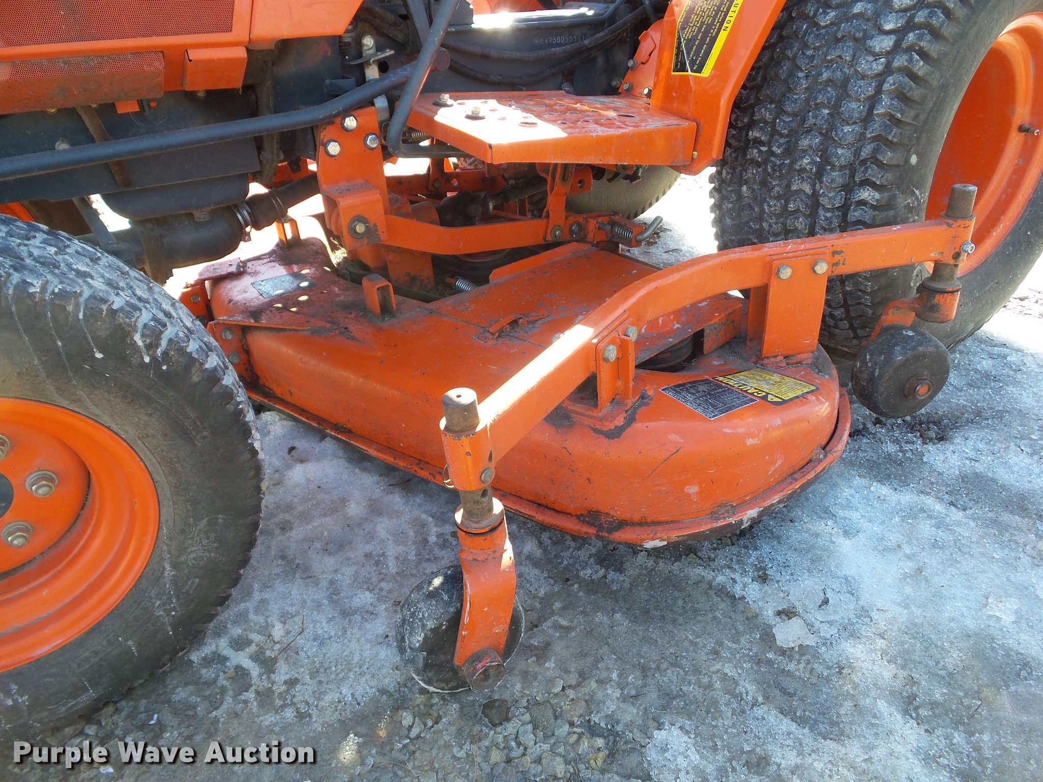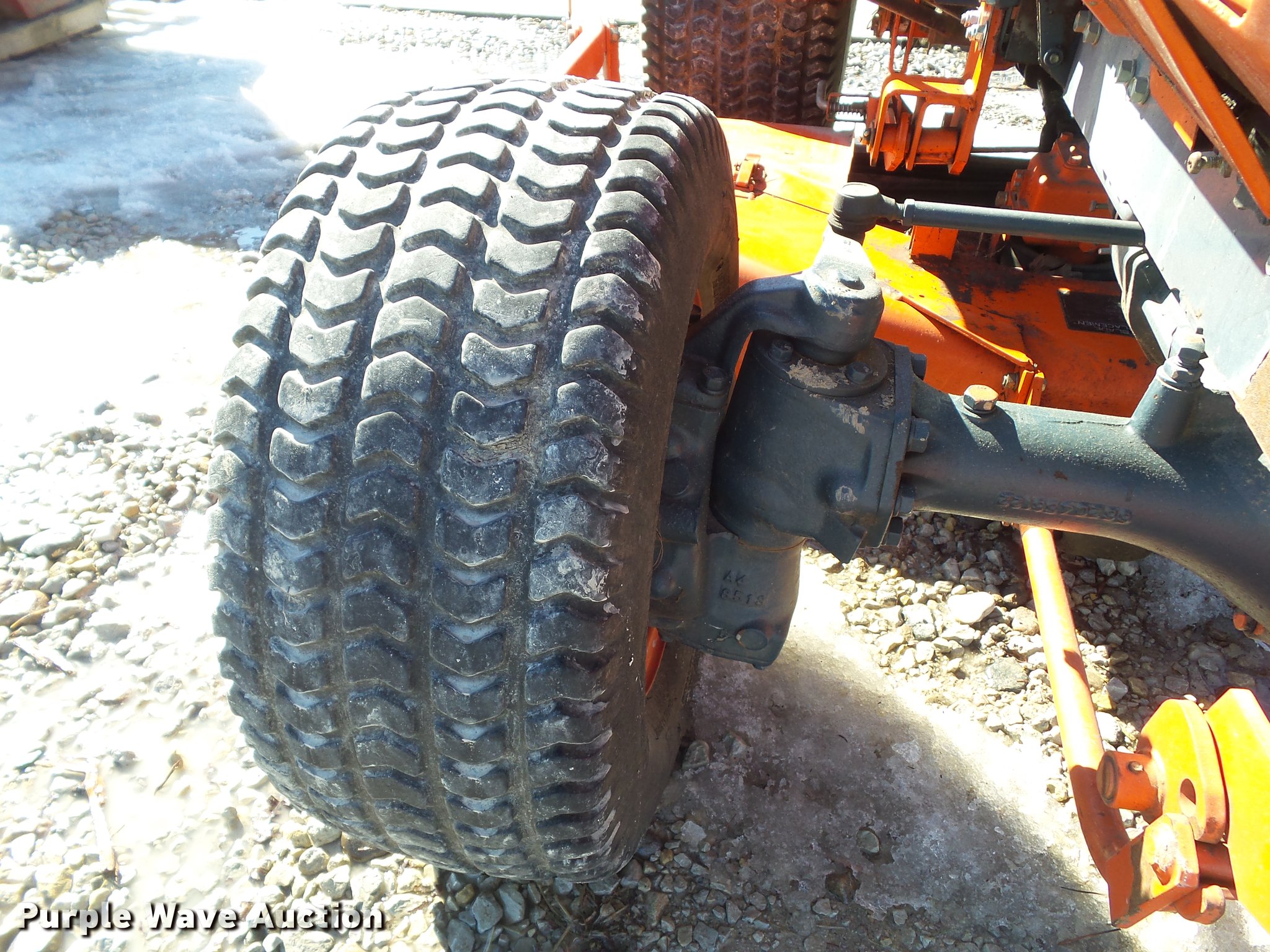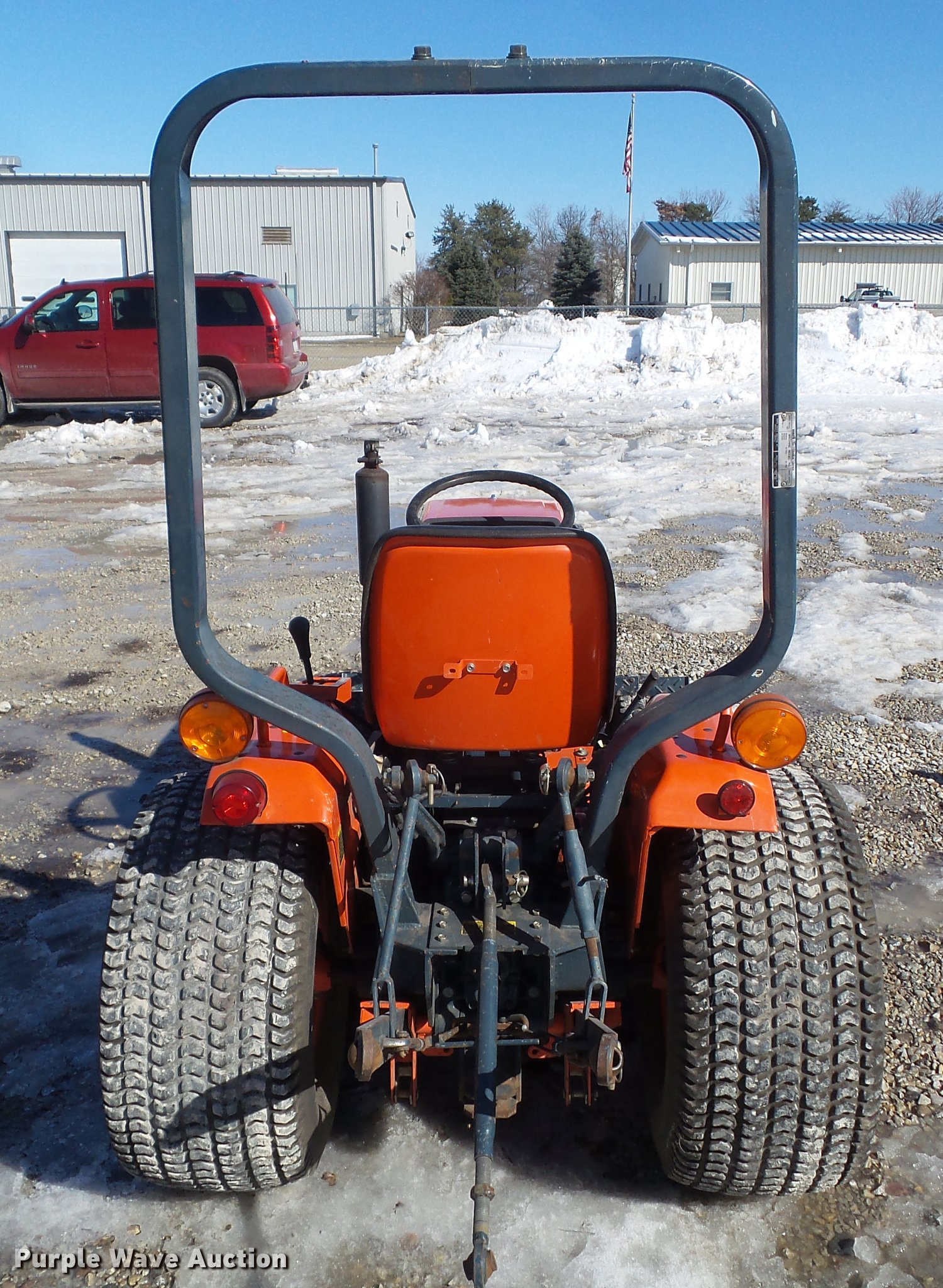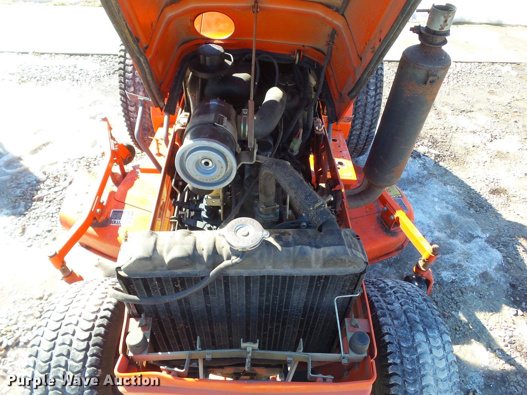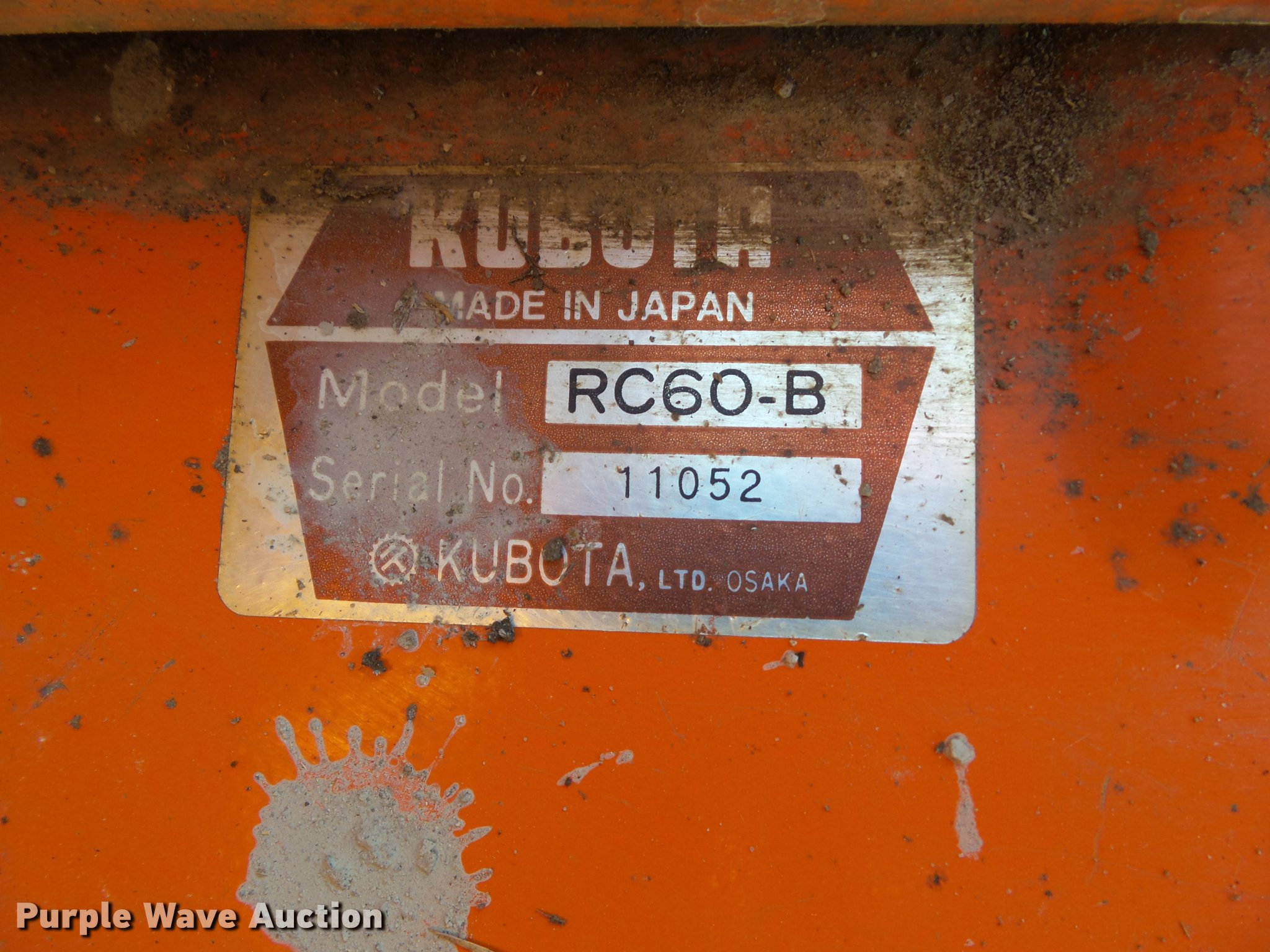 Purple Wave is selling a used Tractor in Iowa. This item is a Kubota B1750 MFWD tractor with the following: 1,566 hours on meter, Kubota D950-5B three cylinder diesel engine, Manual transmission, 6F-2R gears, Spring suspension seat, Three point, Top link, 540 PTO, Kubota RC60-B mowing deck, 60"W, Serial 11052, 20.5-8.00-10 front tires, 31 x 13.5-15 rear tires, Serial B1750D50361