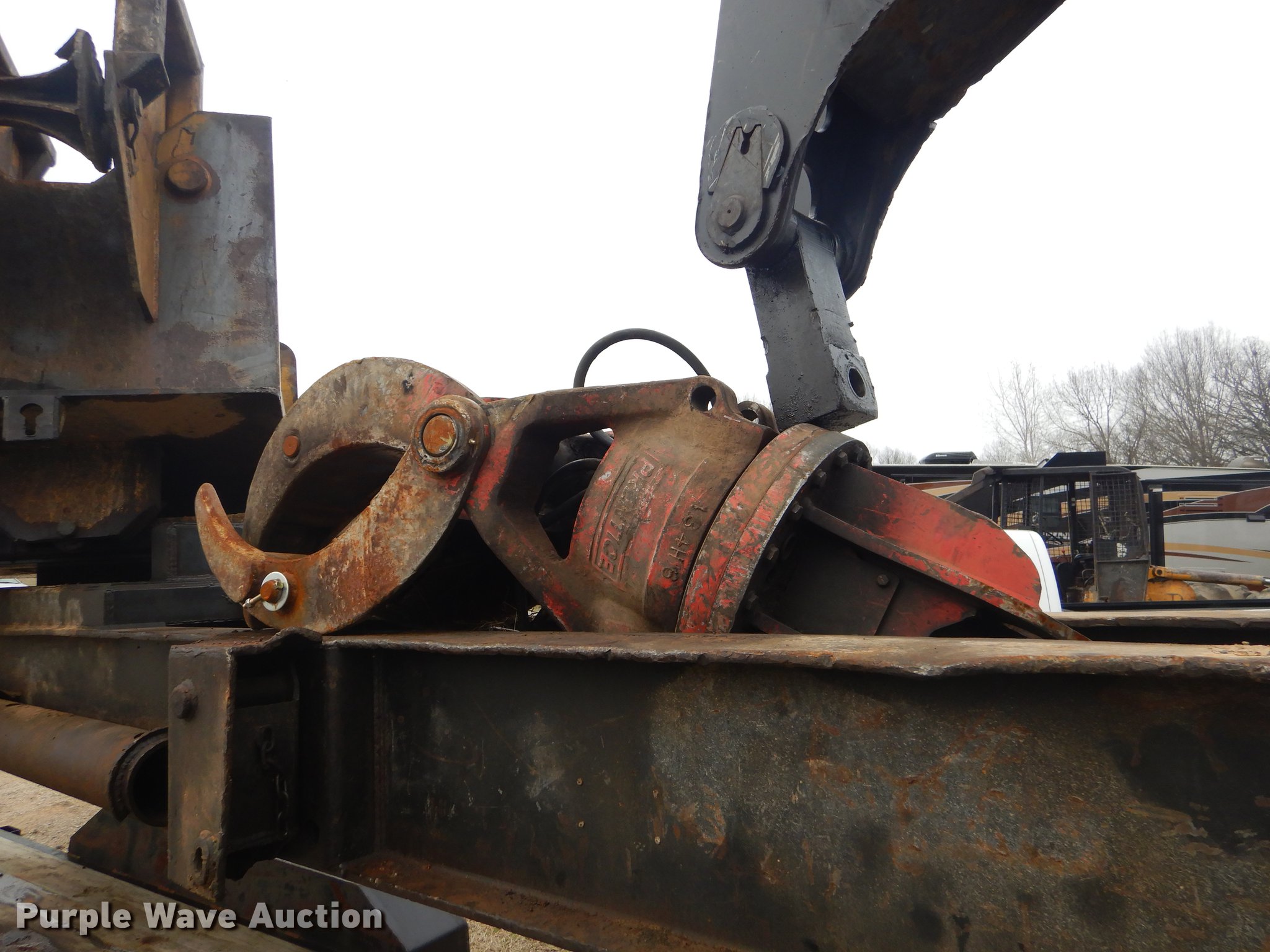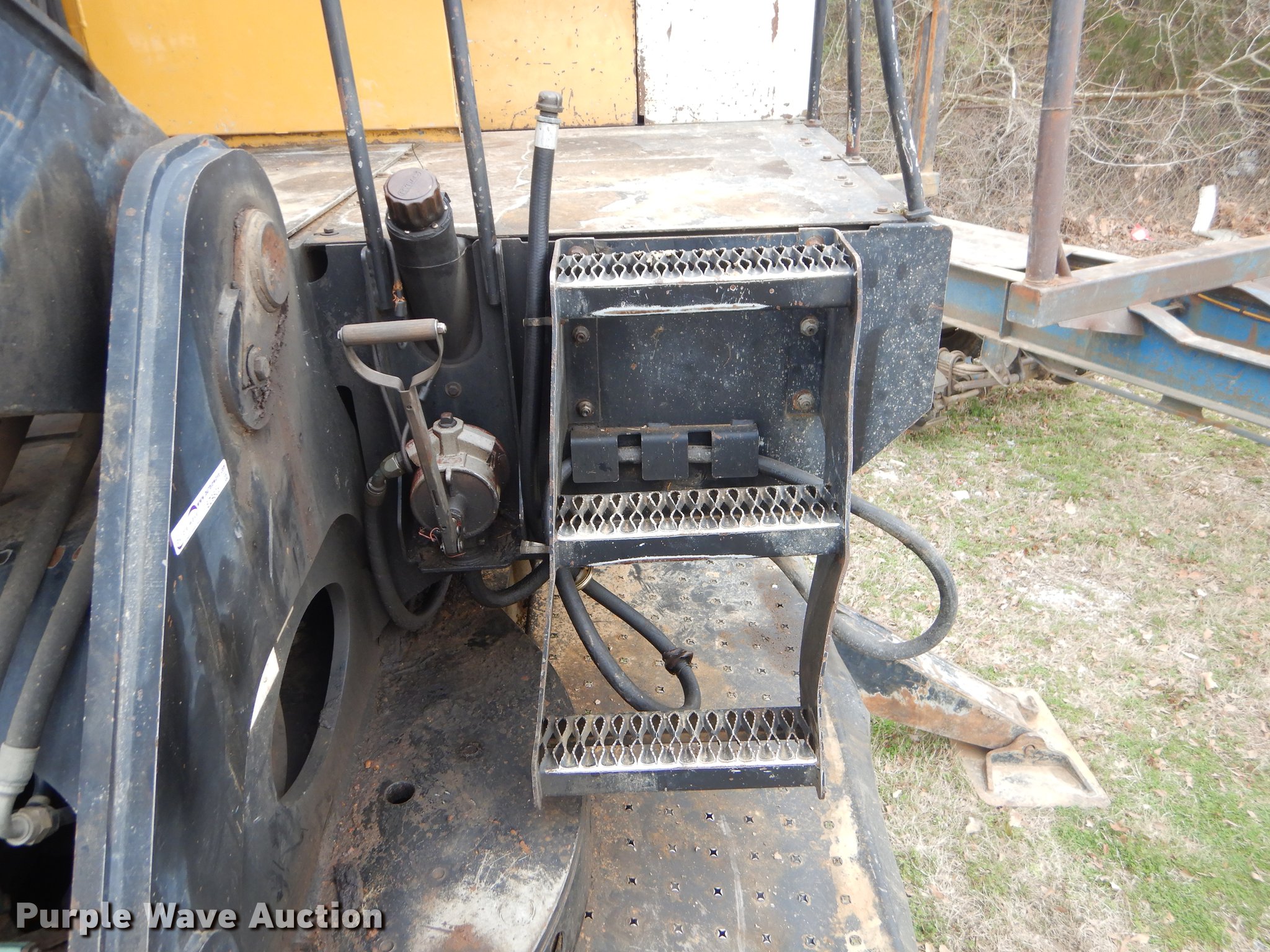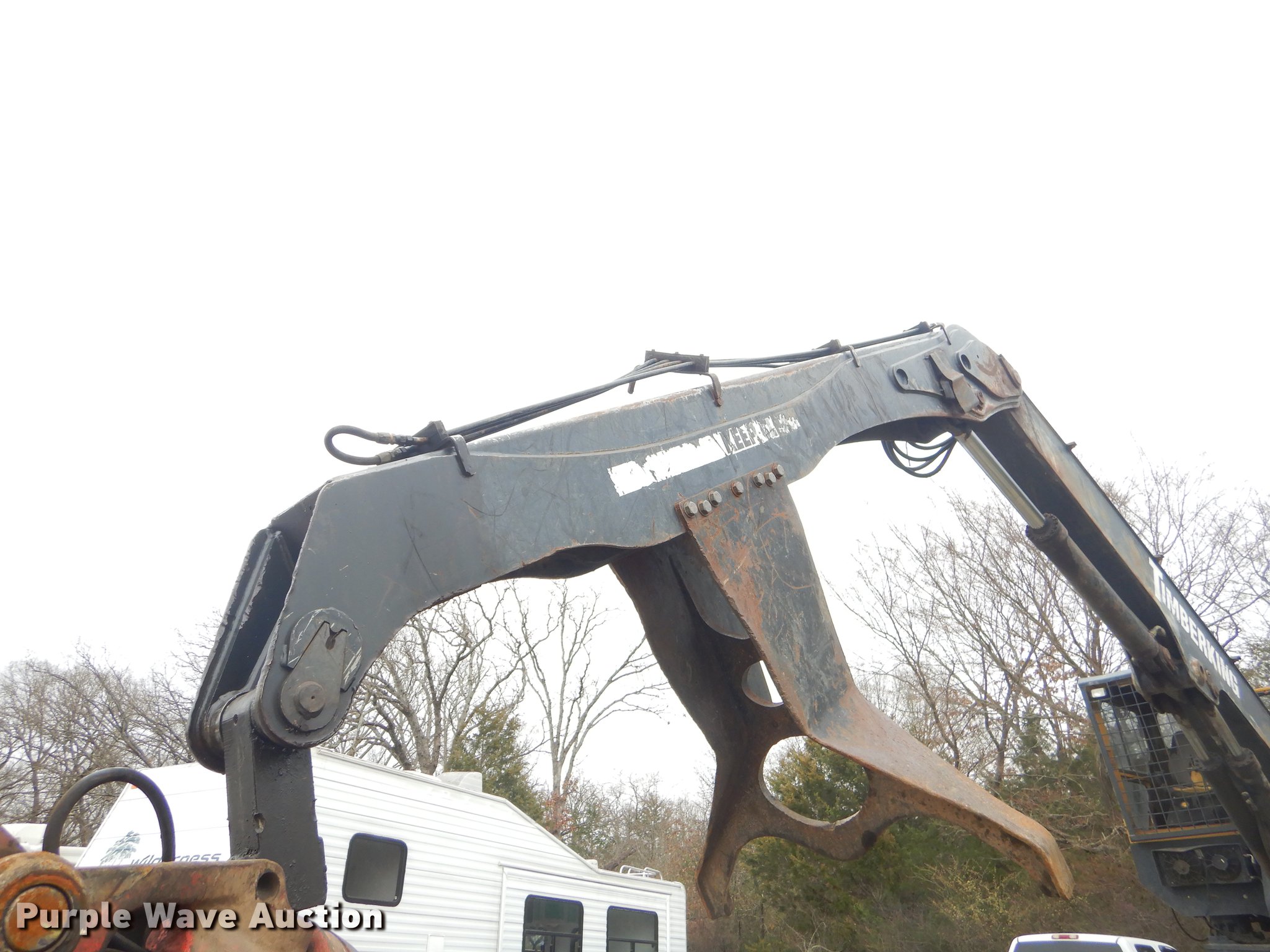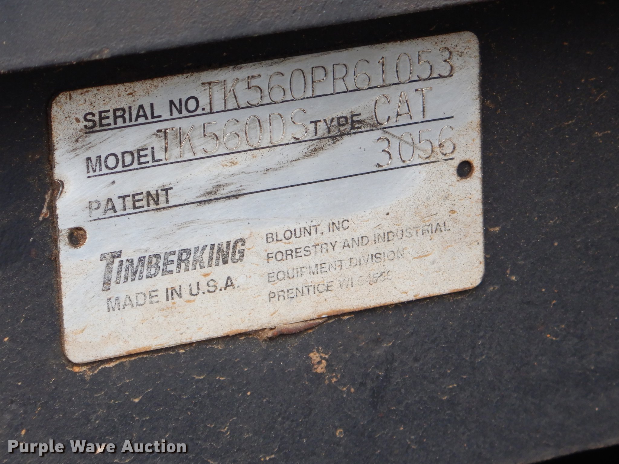 Purple Wave is selling a used Log Loader in Oklahoma. This item is a Timber King TK560DS log loader with the following: 51'L x 96"W, Caterpillar six cylinder turbo diesel engine, 12,449 hours on meter, ROPS, Suspension seat, Joystick control, Wipers, Front work lights, Prentice 32" grapple, On-board fuel cell, Delimber, (4) outriggers, Fifth wheel plate, Rigid suspension, Air brakes, Tandem axle, Steel wheels, 295/75R22.5 tires, Delimber bar and blade missing, Grapple unattached, Cylinders and grapple need rebuilt