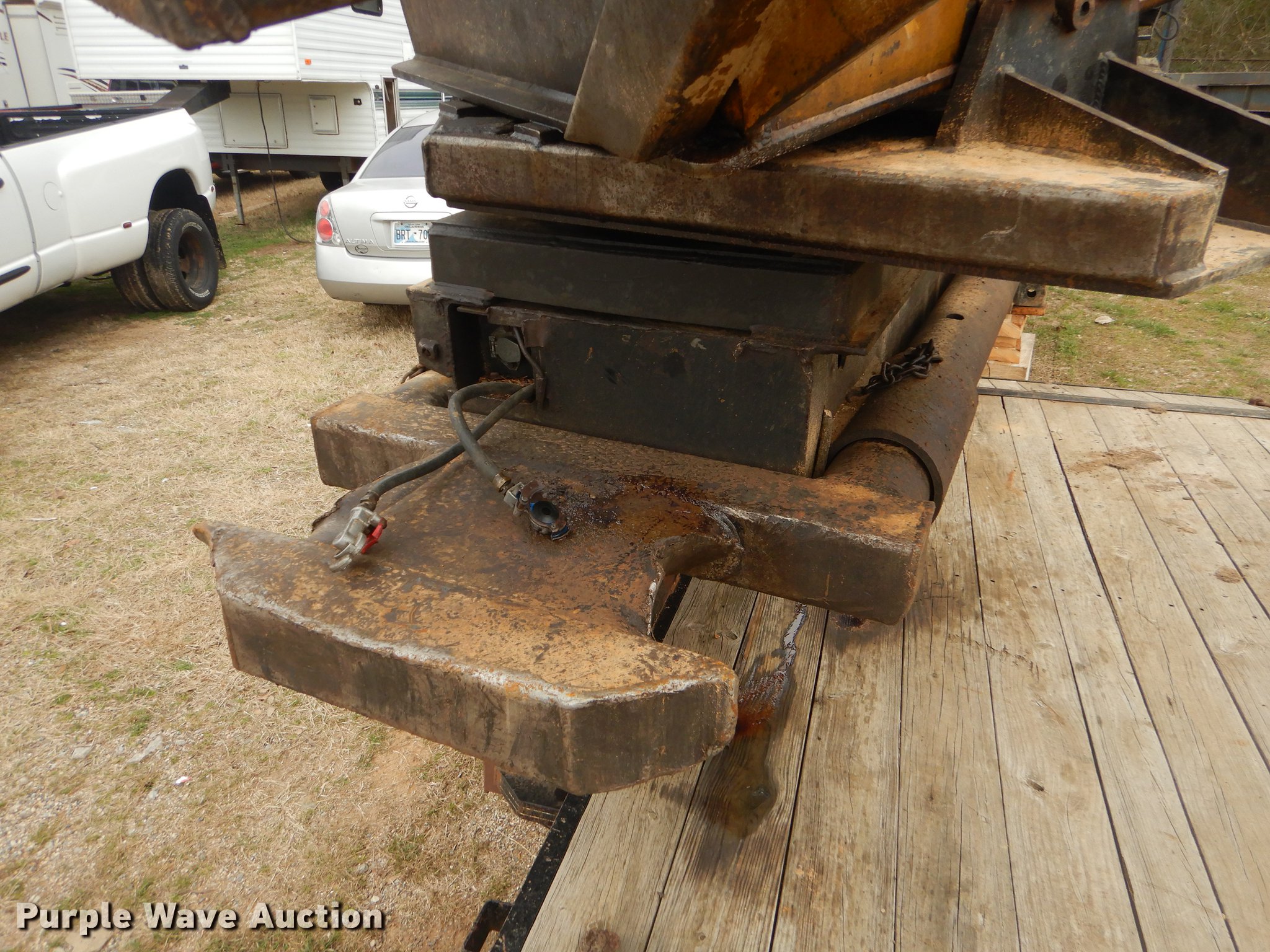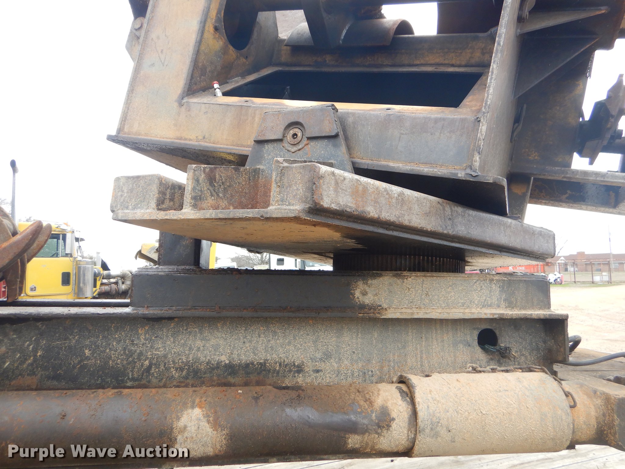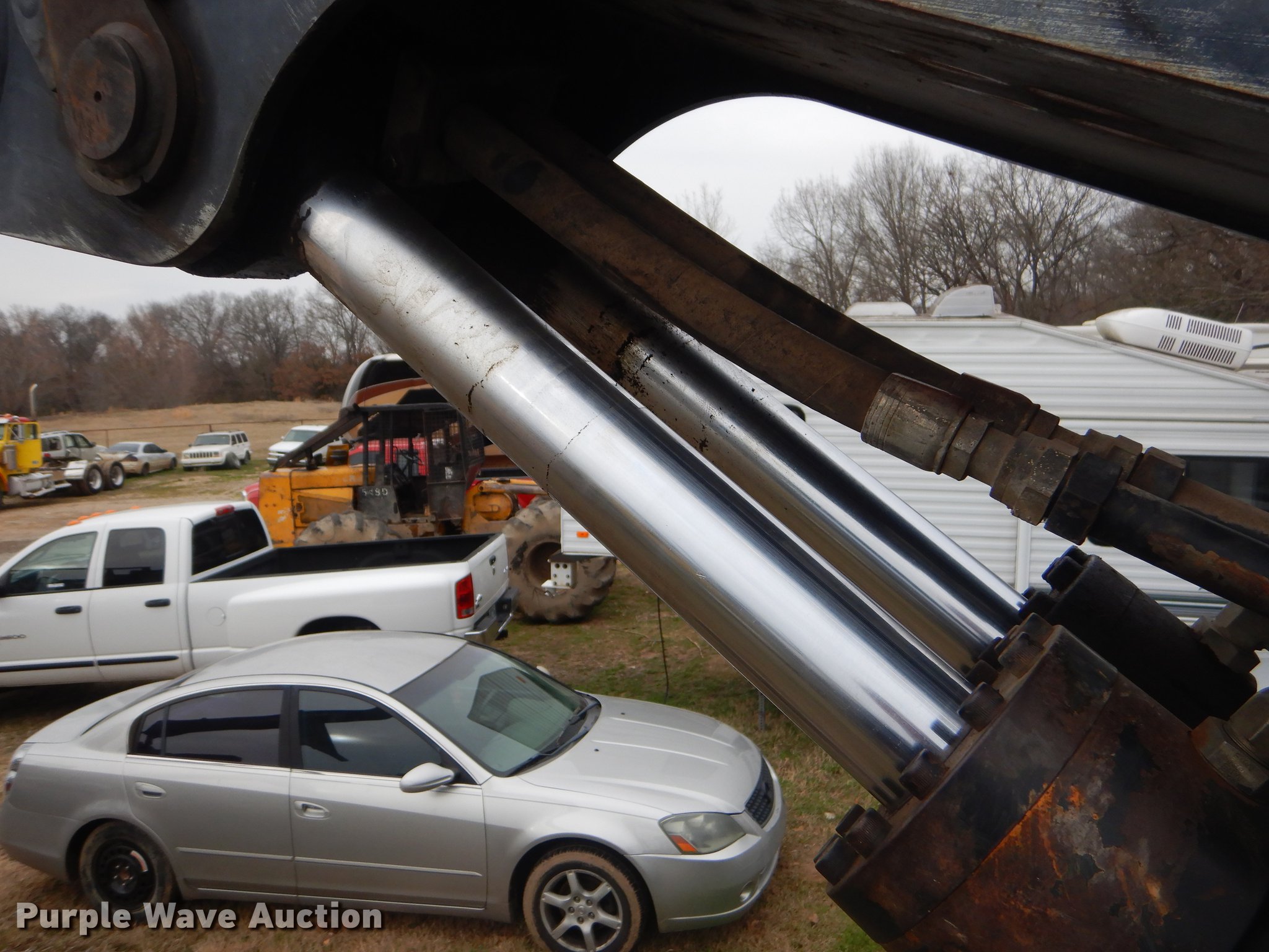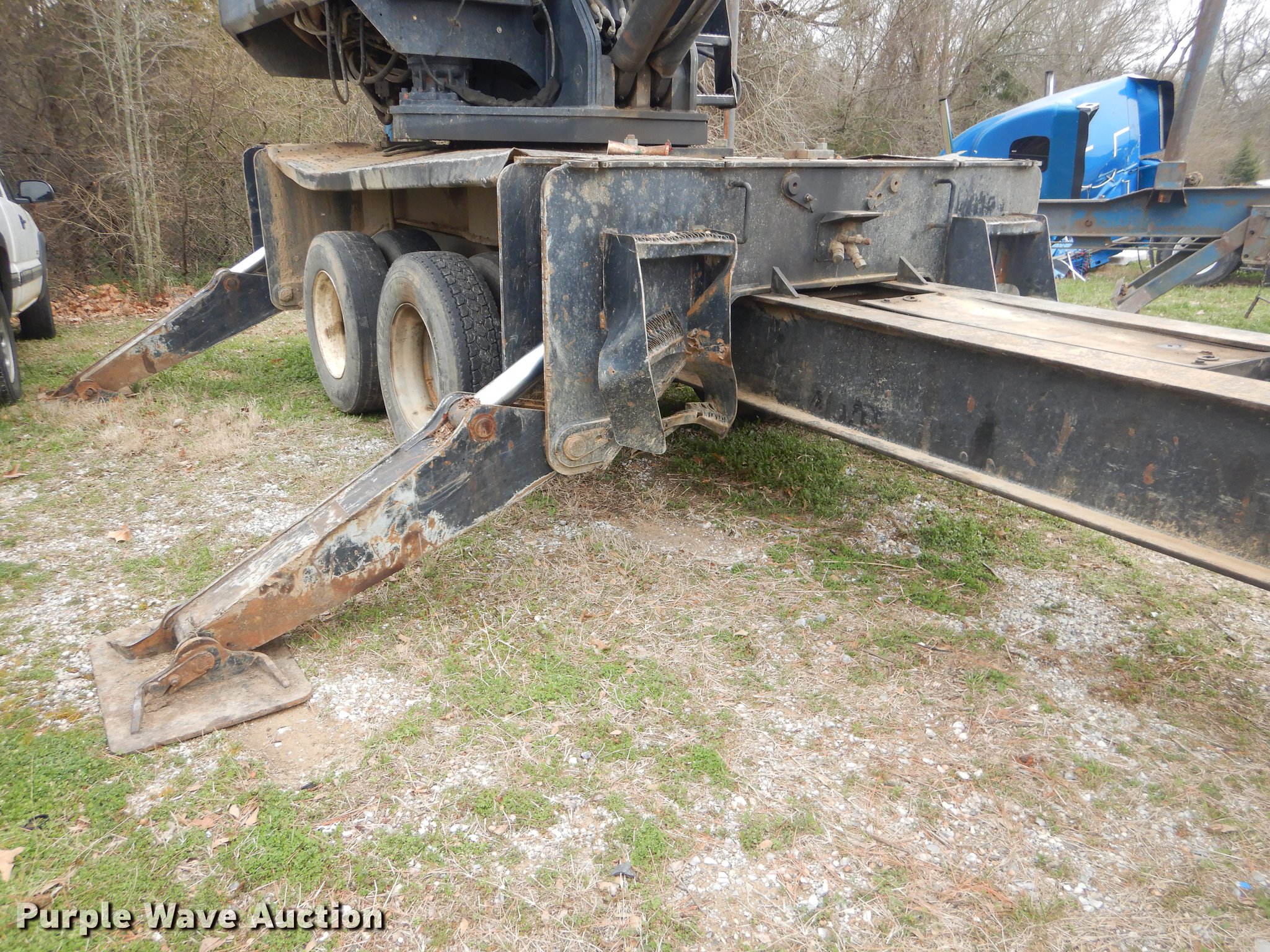 Purple Wave is selling a used Log Loader in Oklahoma. This item is a Timber King TK560DS log loader with the following: 51'L x 96"W, Caterpillar six cylinder turbo diesel engine, 12,449 hours on meter, ROPS, Suspension seat, Joystick control, Wipers, Front work lights, Prentice 32" grapple, On-board fuel cell, Delimber, (4) outriggers, Fifth wheel plate, Rigid suspension, Air brakes, Tandem axle, Steel wheels, 295/75R22.5 tires, Delimber bar and blade missing, Grapple unattached, Cylinders and grapple need rebuilt
