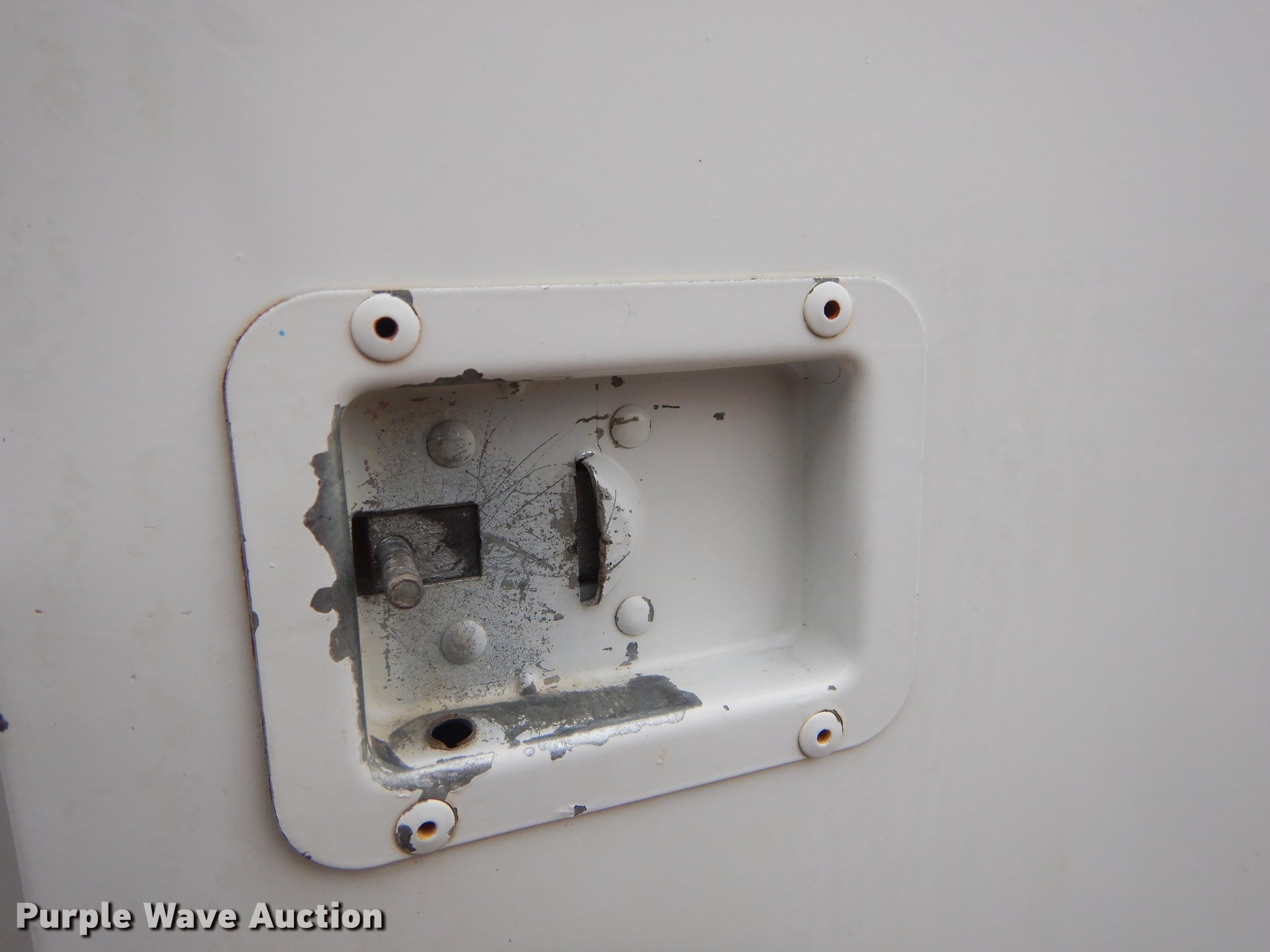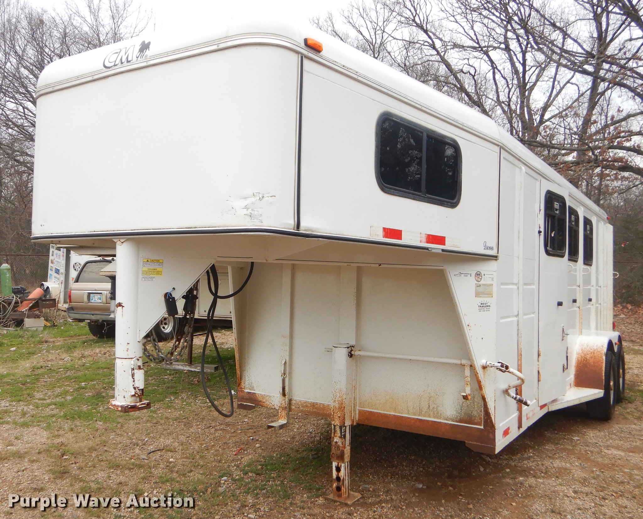 Purple Wave is selling a used Livestock Trailer in Oklahoma. This item is a 2006 Cm Trailers livestock trailer with the following: 25'L x 102"W, 80" interior width, Steel construction, Two decks, (2) center gates, (2) horse capacity, Tack room, Side entry door, Full swing-out rear door, Gooseneck hitch, Single leg landing gear, Spring suspension, Electric brakes, Tandem axle, Steel wheels, 225/75R15 tires, GVWR 3,900 lbs