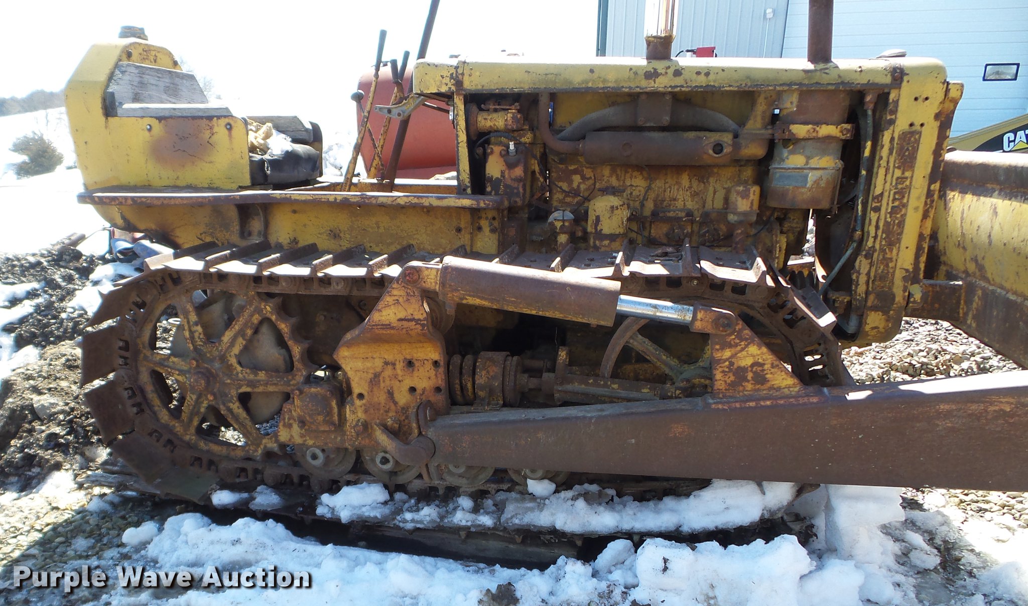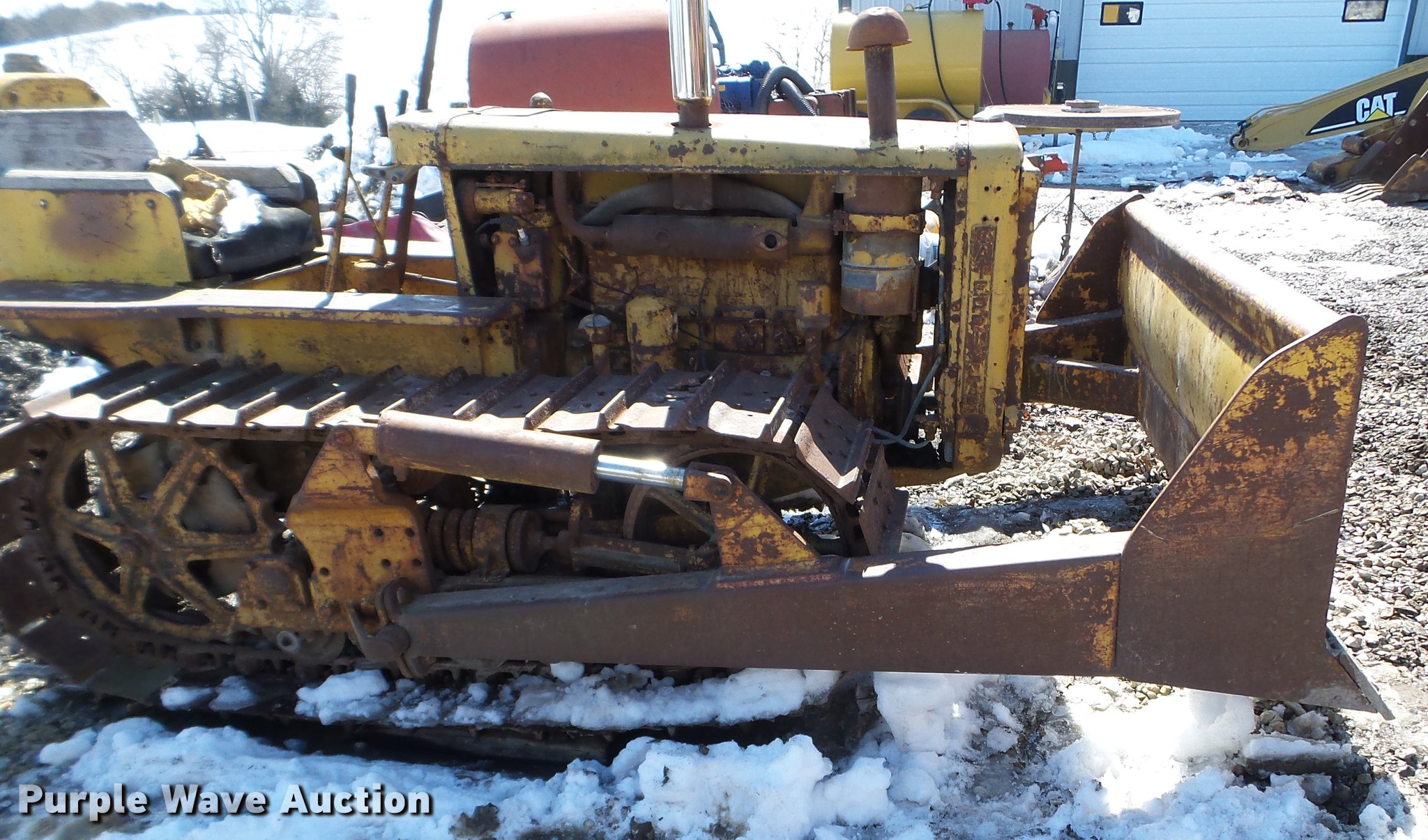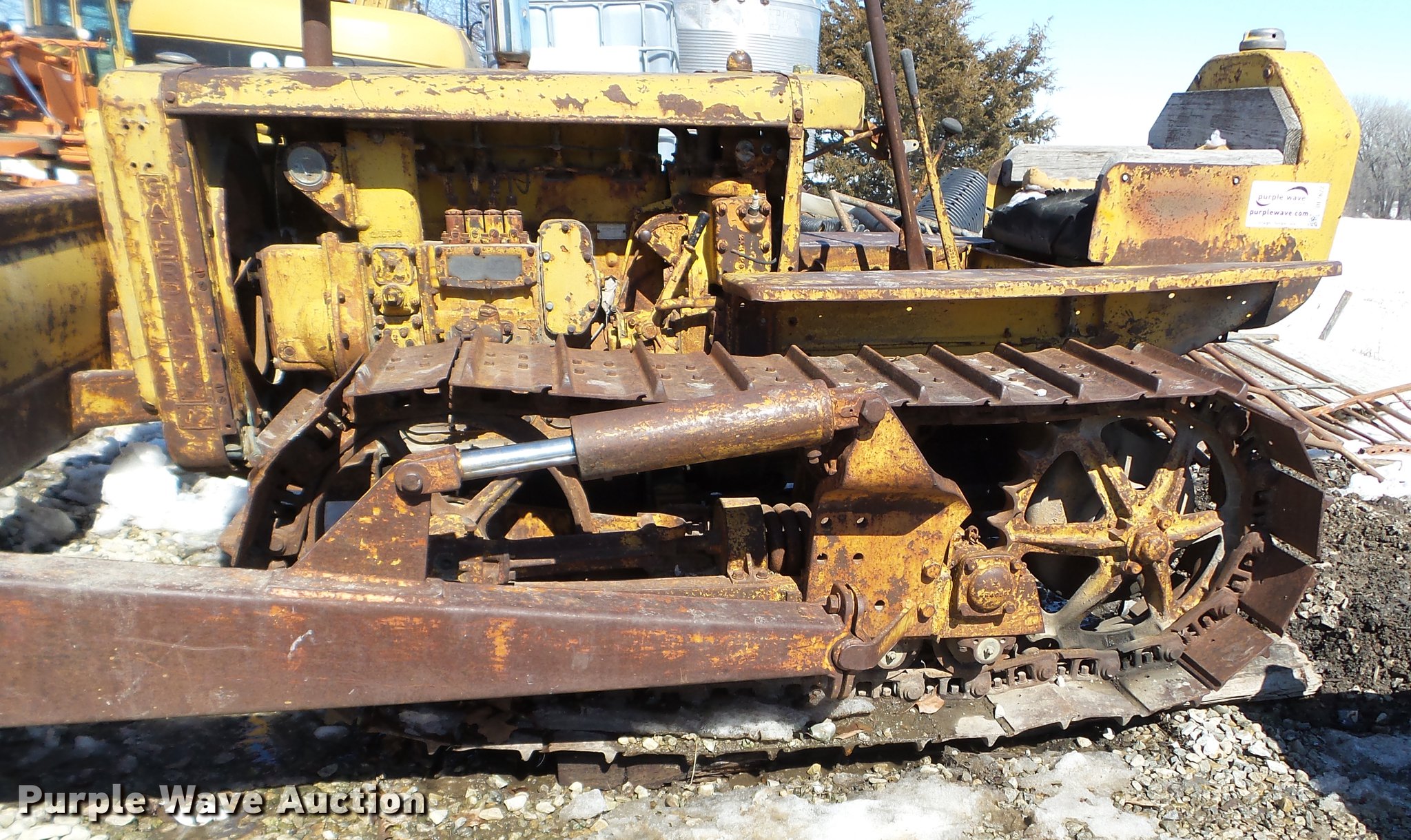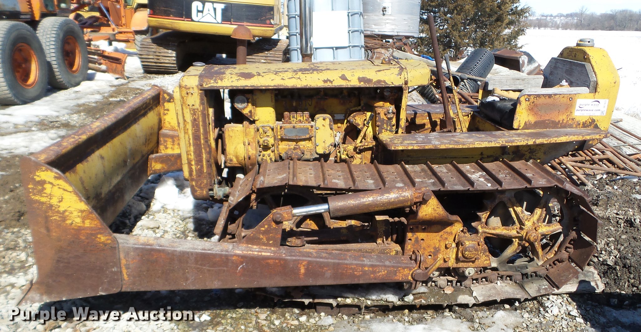 Purple Wave is selling a used Crawler Dozer in Iowa. This item is a 1947 Caterpillar D2 dozer with the following: Four cylinder diesel engine, 7'W dozer blade, Rear draw bar, 16"W single grouser track pads, Unknown operating condition, Serial 5J9283