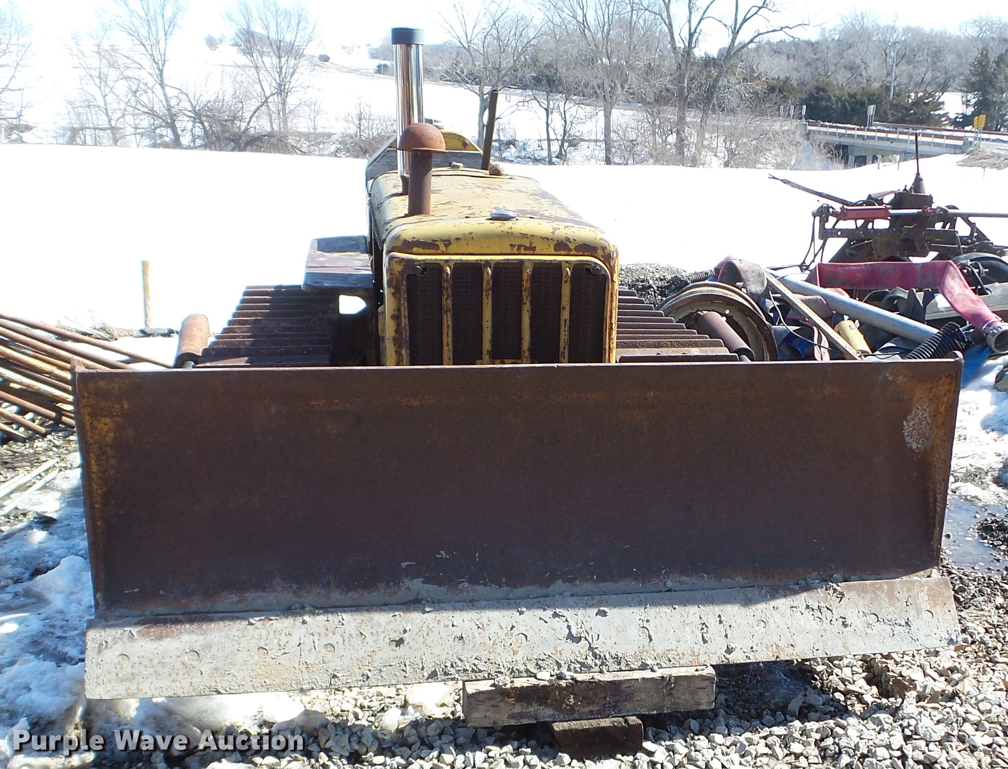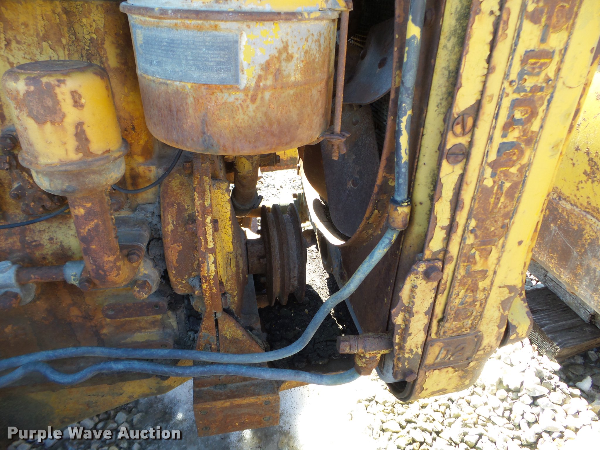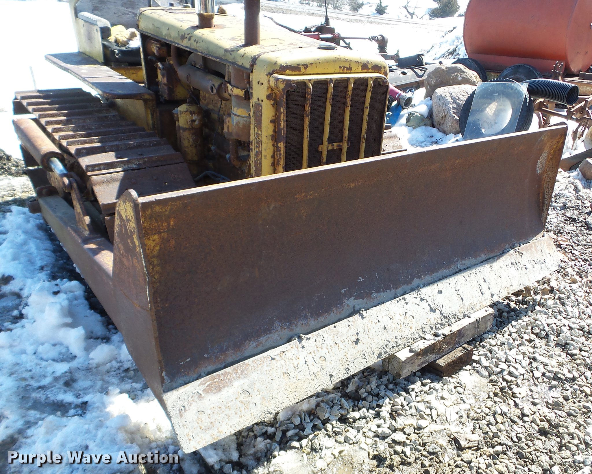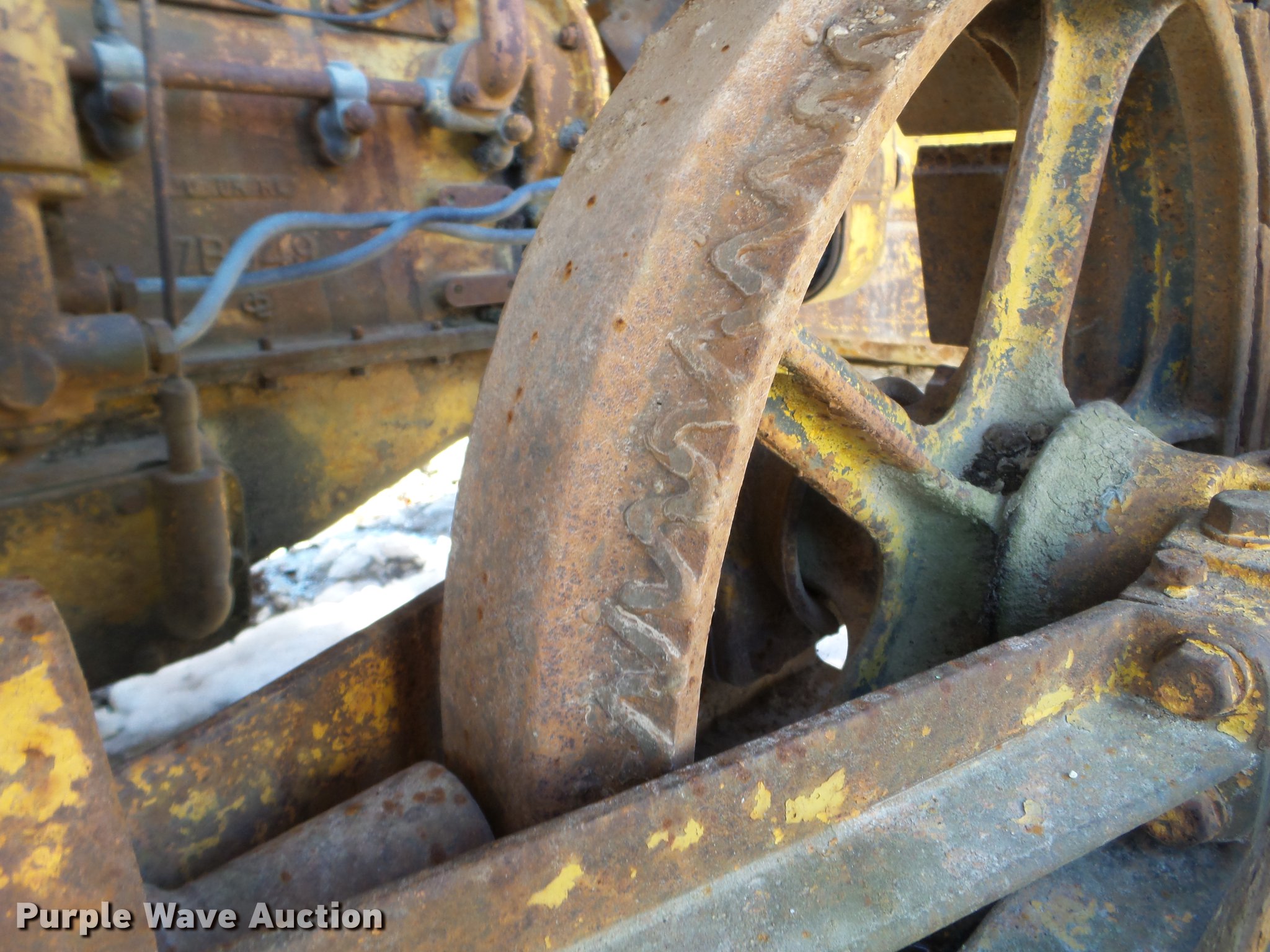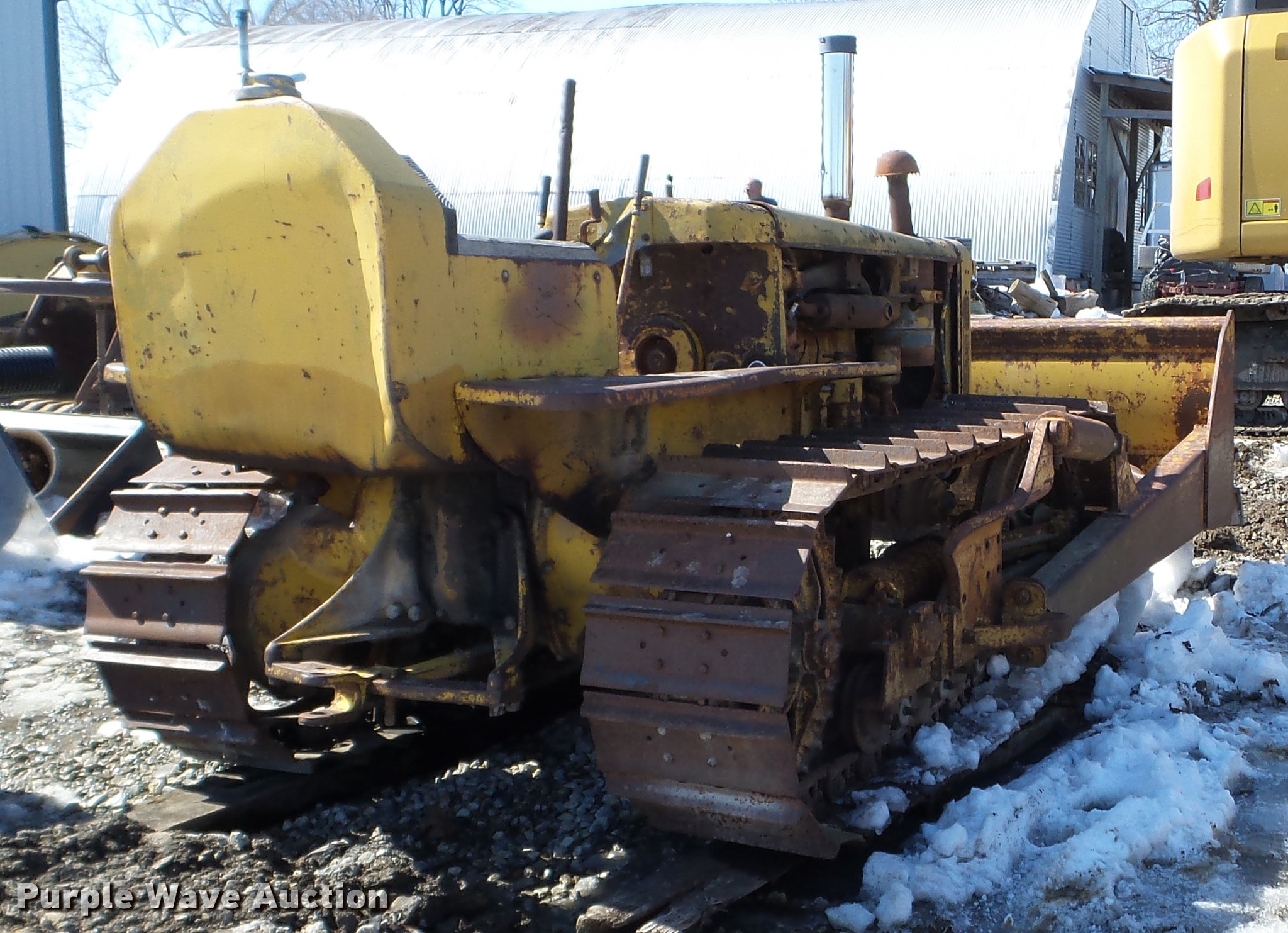 Purple Wave is selling a used Crawler Dozer in Iowa. This item is a 1947 Caterpillar D2 dozer with the following: Four cylinder diesel engine, 7'W dozer blade, Rear draw bar, 16"W single grouser track pads, Unknown operating condition, Serial 5J9283