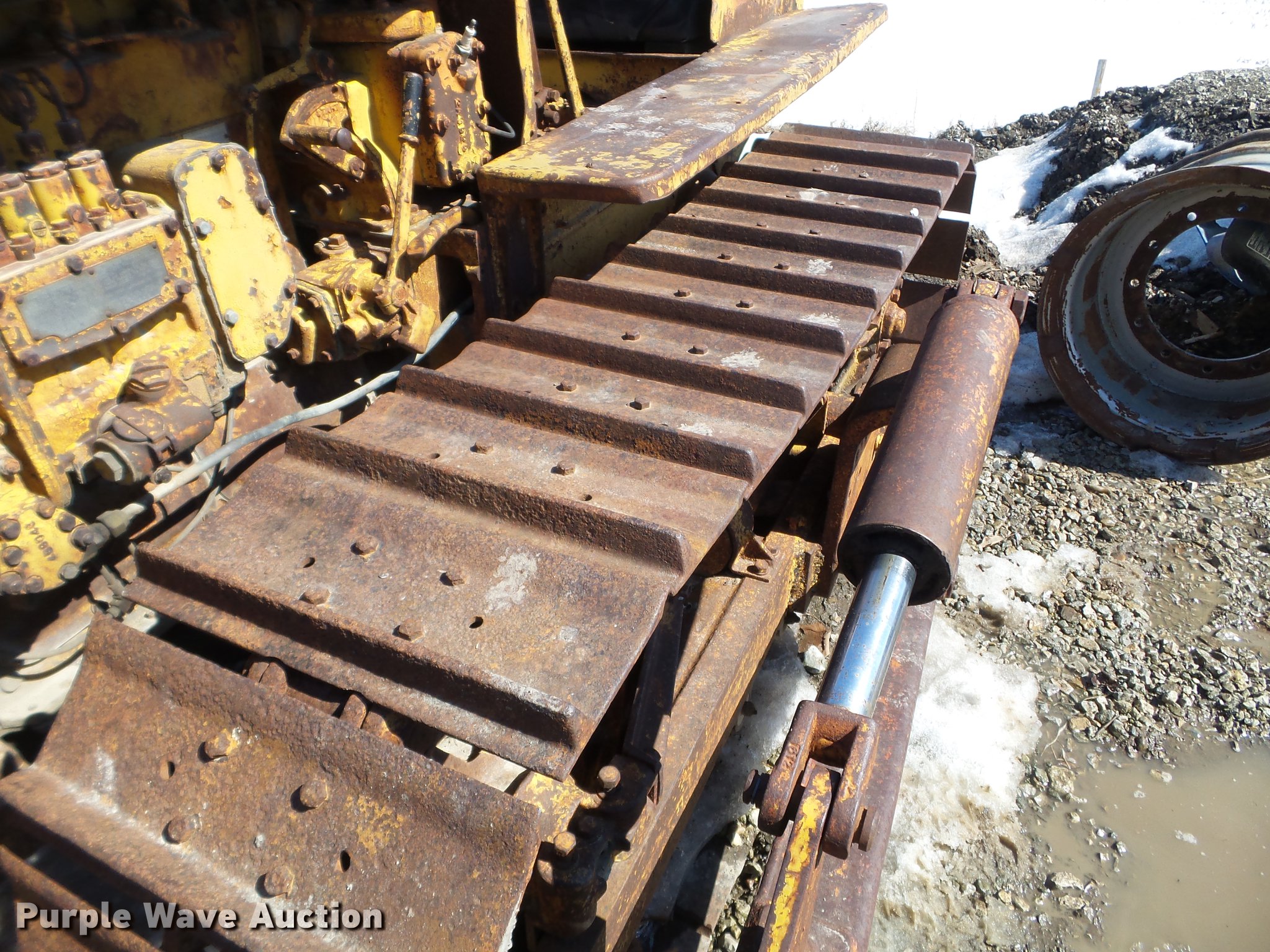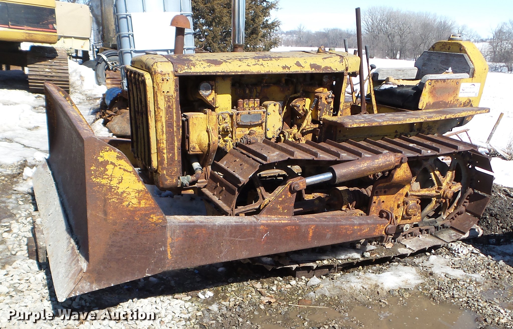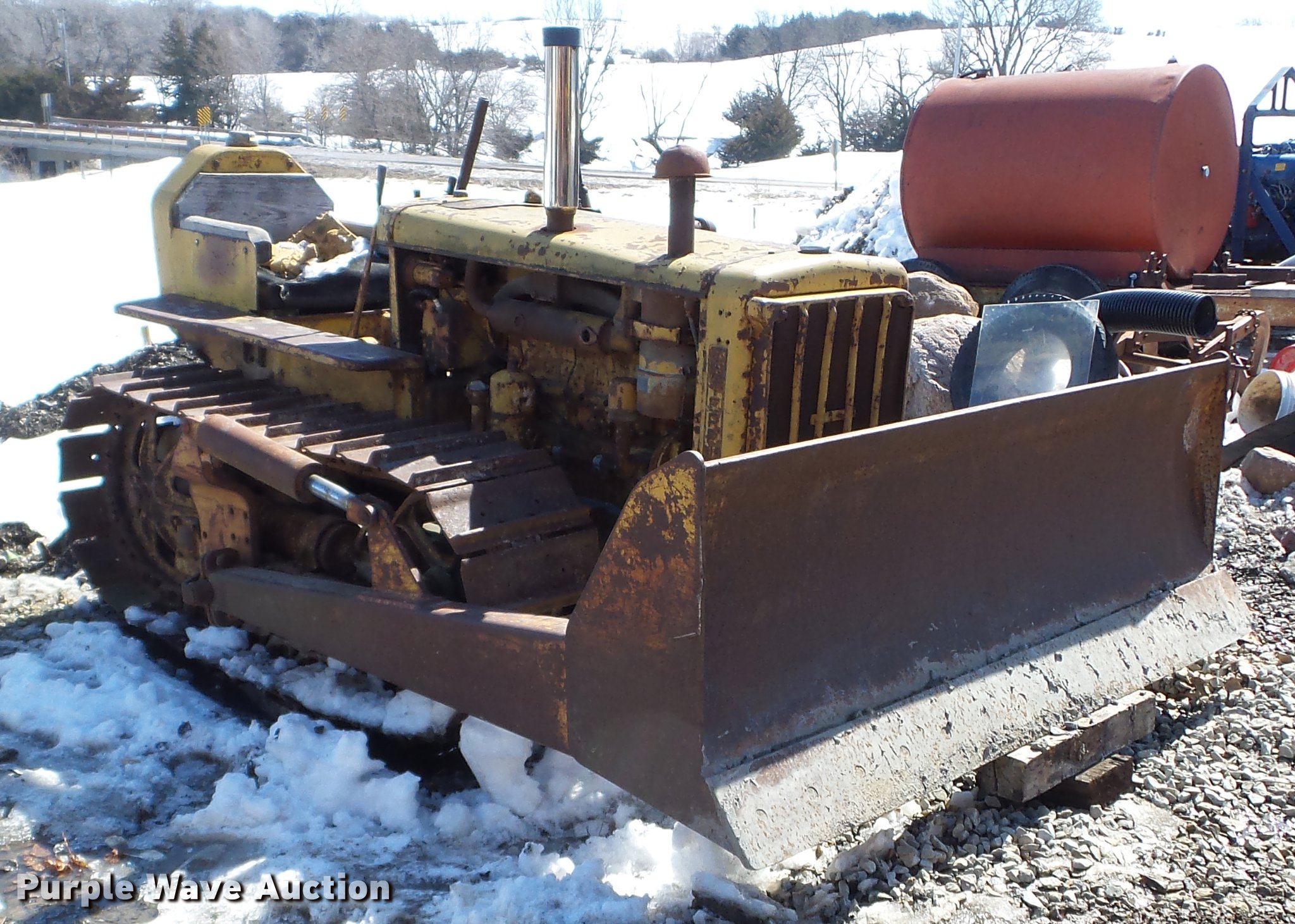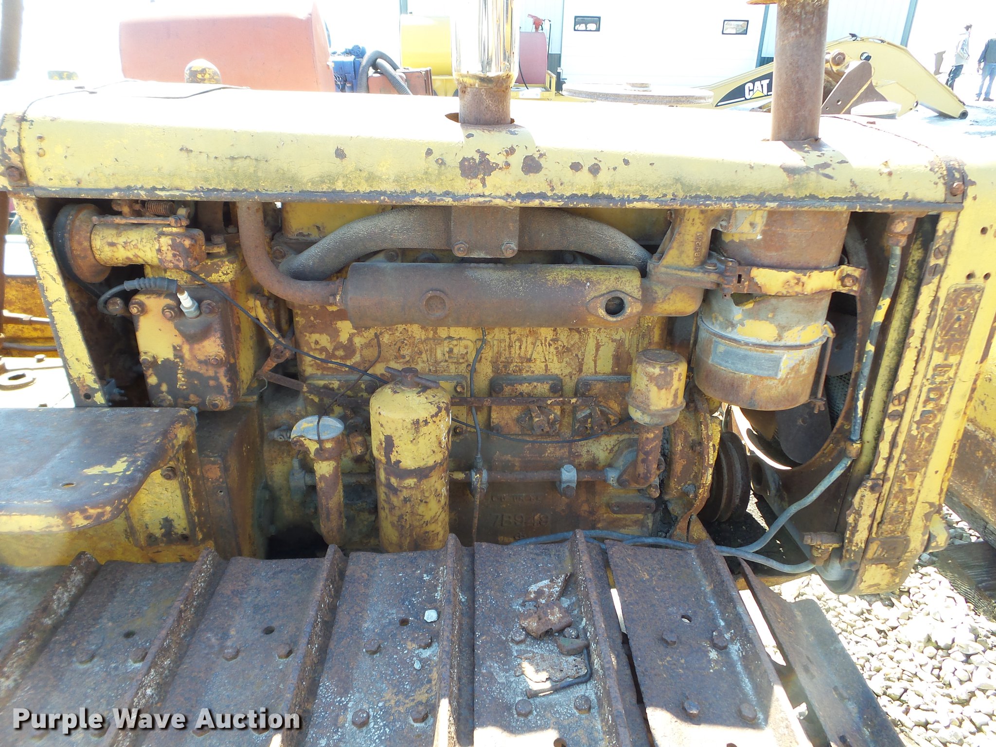 Purple Wave is selling a used Crawler Dozer in Iowa. This item is a 1947 Caterpillar D2 dozer with the following: Four cylinder diesel engine, 7'W dozer blade, Rear draw bar, 16"W single grouser track pads, Unknown operating condition, Serial 5J9283