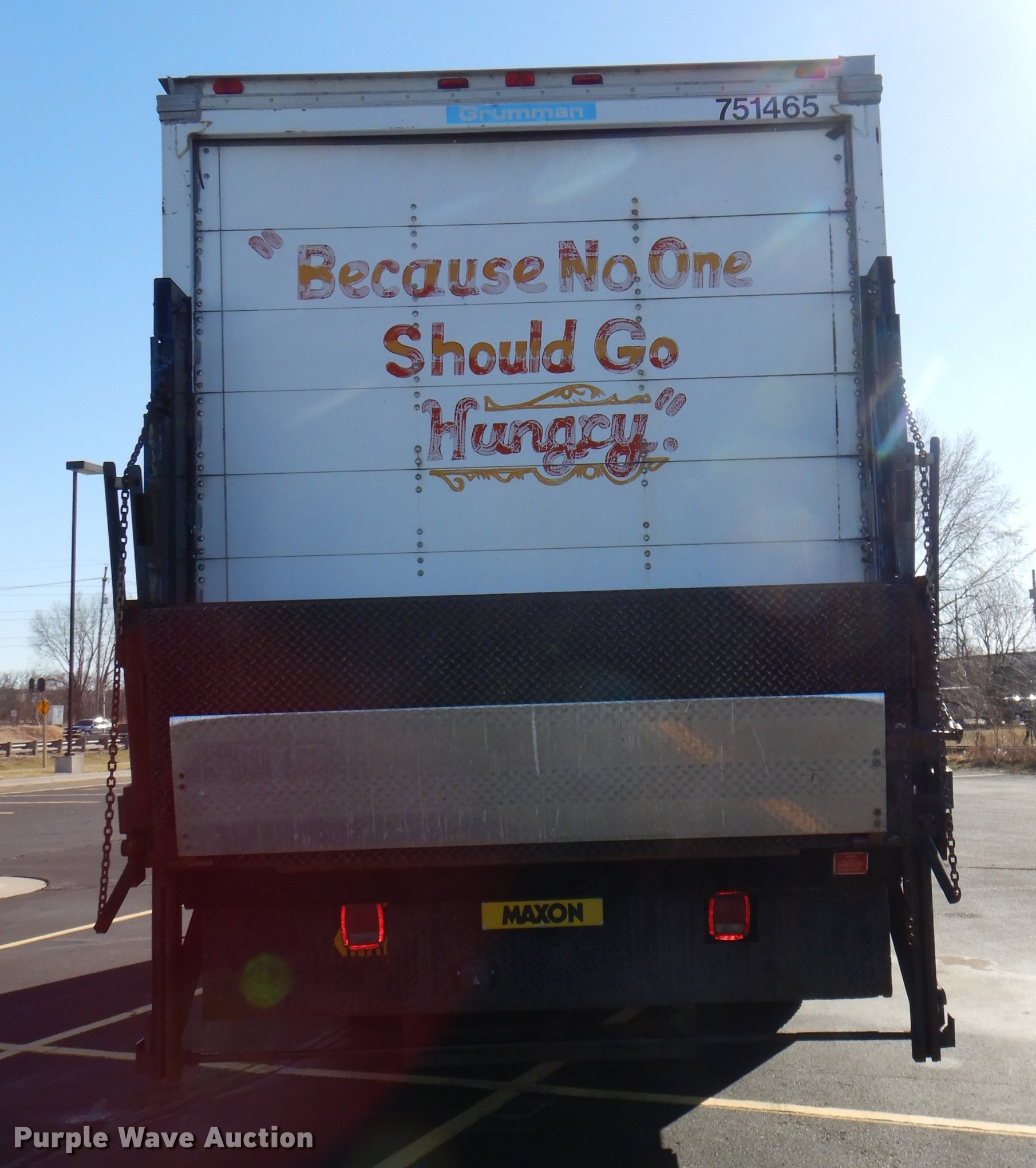 1995 Ford F700 box truck. 154,581 miles on odometer, Cummins B5.9 5.9L L6 turbo diesel engine, Automatic transmission, Single axle, AC and heat, AM/FM, 24'L x 8'W dry van body Roll-up rear door, Maxon RCT-43 end gate lift 4,000 lbs capacity, Serial C90399933C, Spring suspension, Hydraulic brakes, 10R22.5 tires. Kansas title. 1FDNF80C6SVA00700. 825 Levee Drive. Manhattan, KS 66502