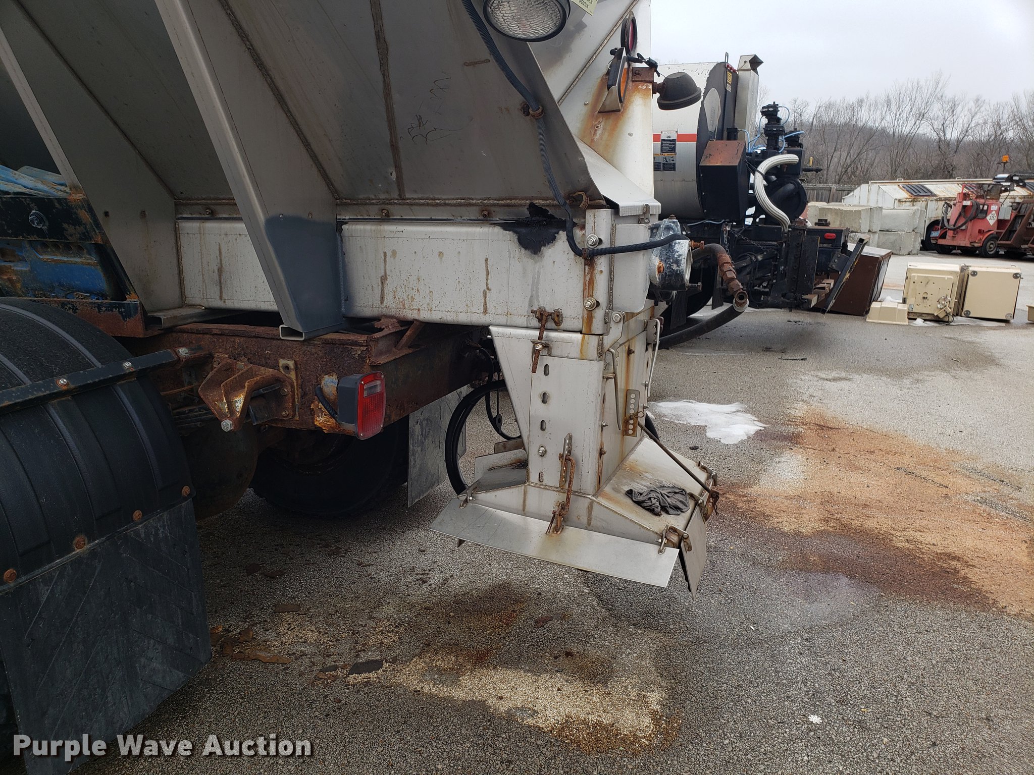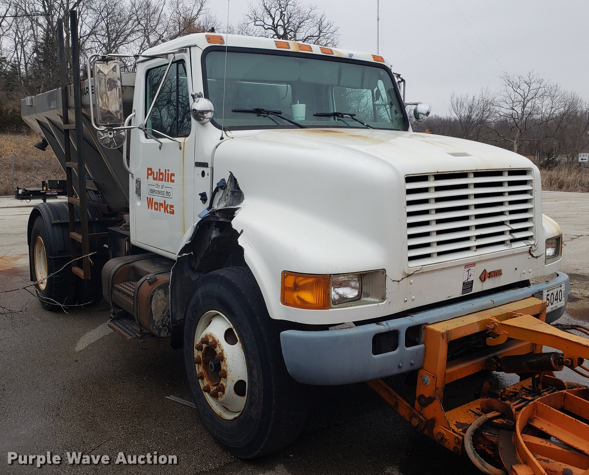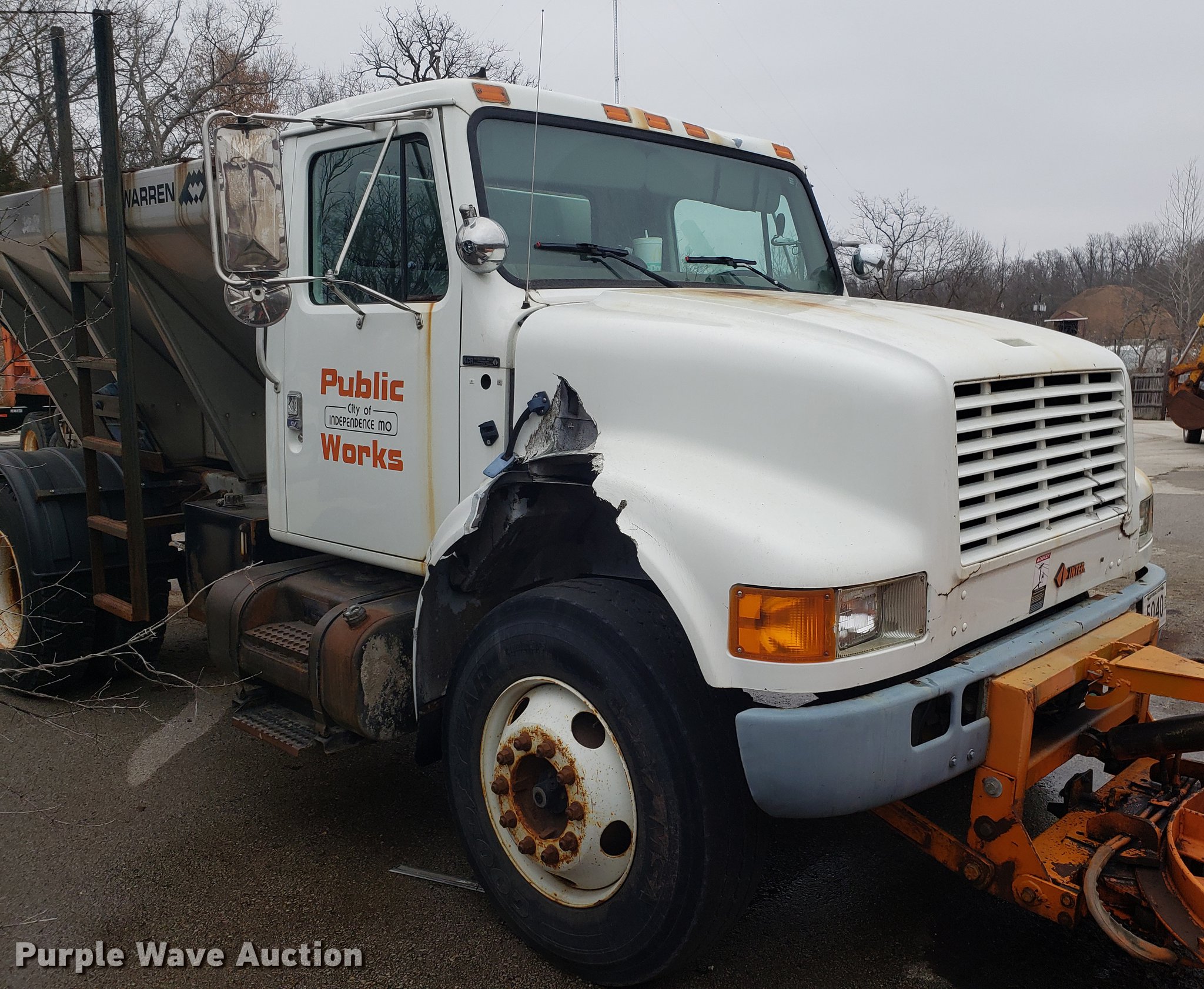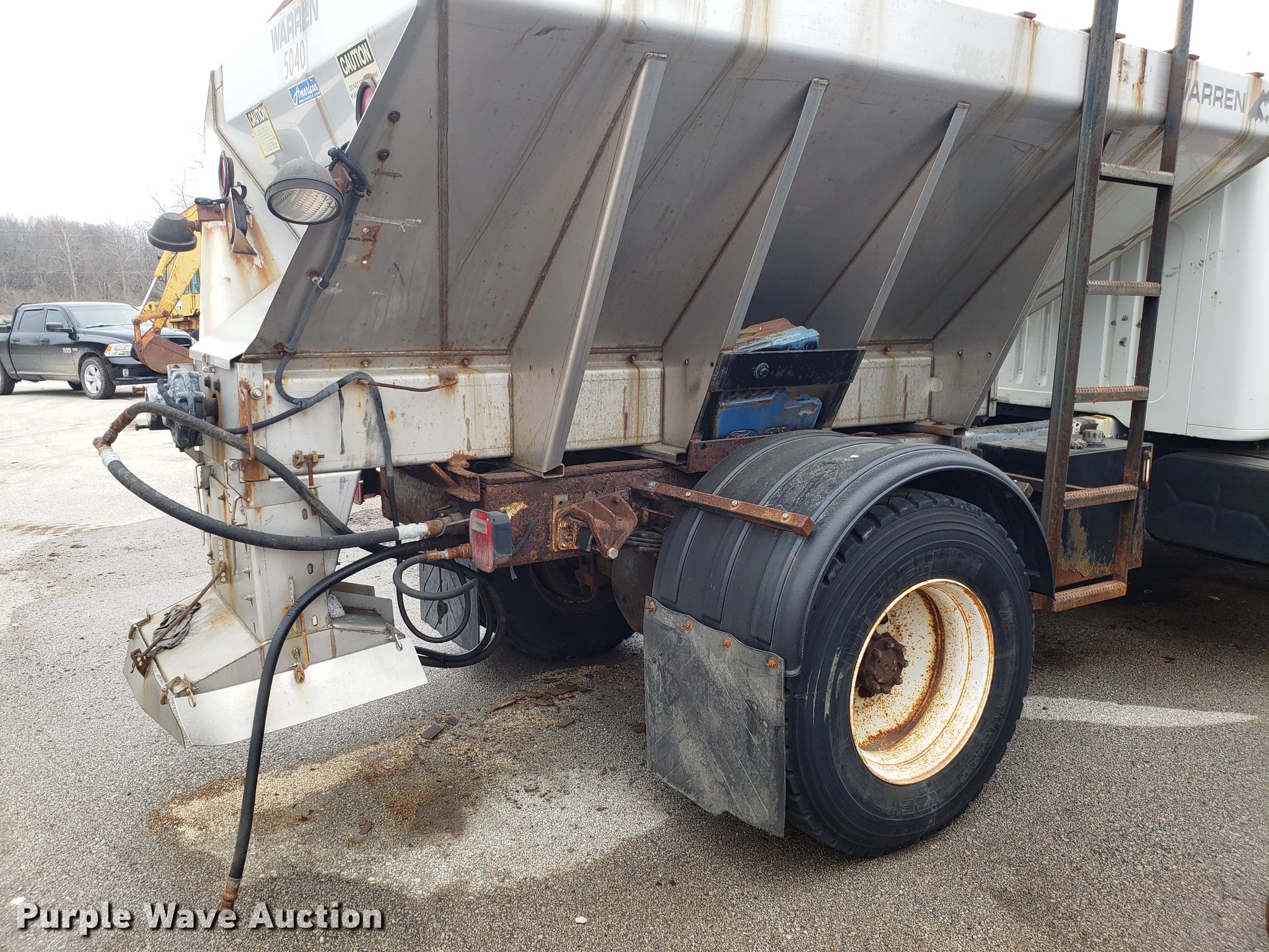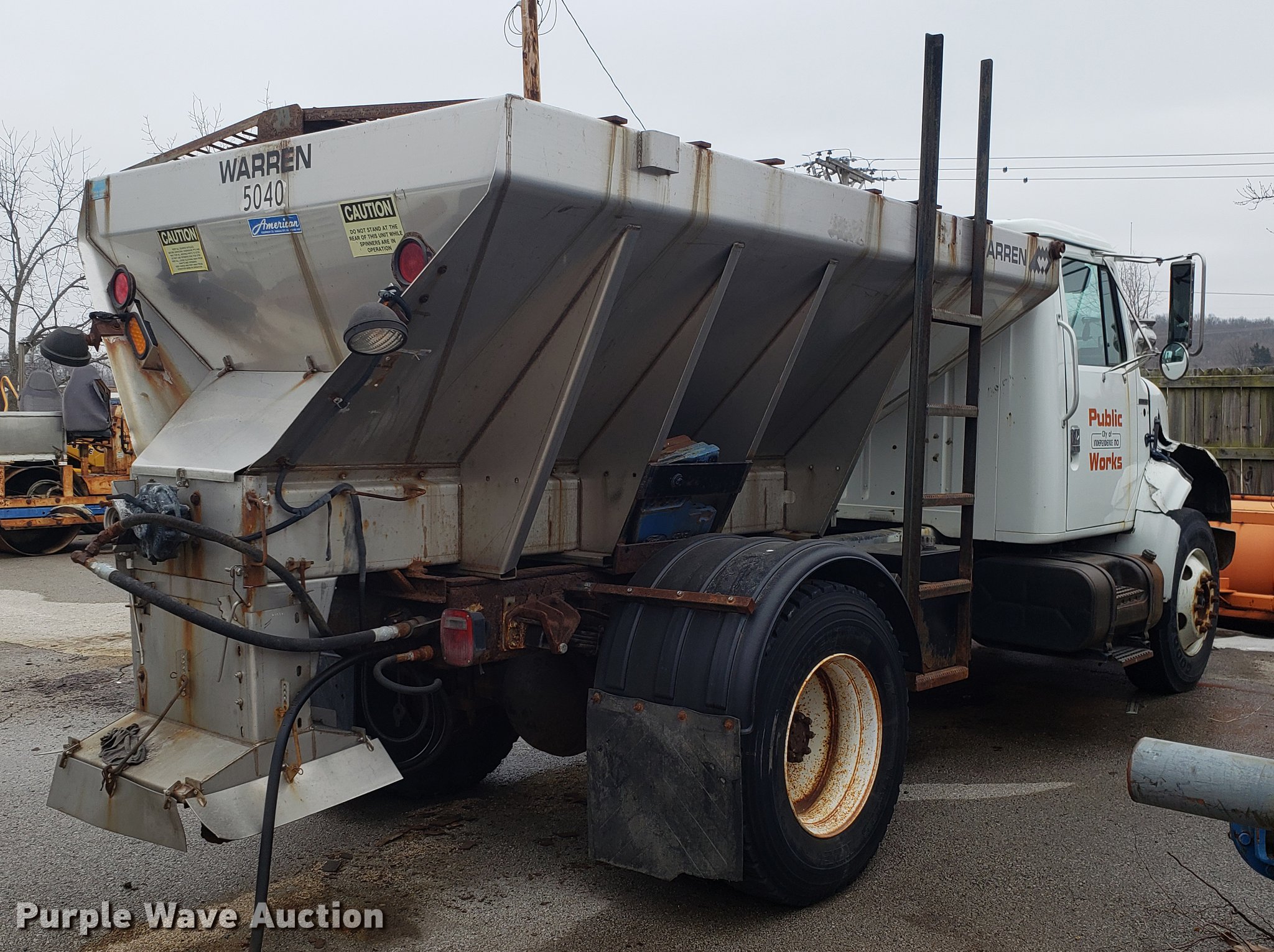 Purple Wave is selling a used Truck Chassis in Missouri. This item is a 2001 International 4700 spreader truck with the following: 233,077 miles on odometer, 30,946 hours on meter, International DT466 7.6L L6 turbo diesel engine, Automatic transmission, Cruise, AM/FM, Air suspension seat, PTO, Plow mount, Warren stainless steel spreader bed, 11'L x 7'W, Hydraulic operation, Spring suspension, Air brakes, 11R22.5 tires, Plow not included, Unknown operating condition, Unit# 3082