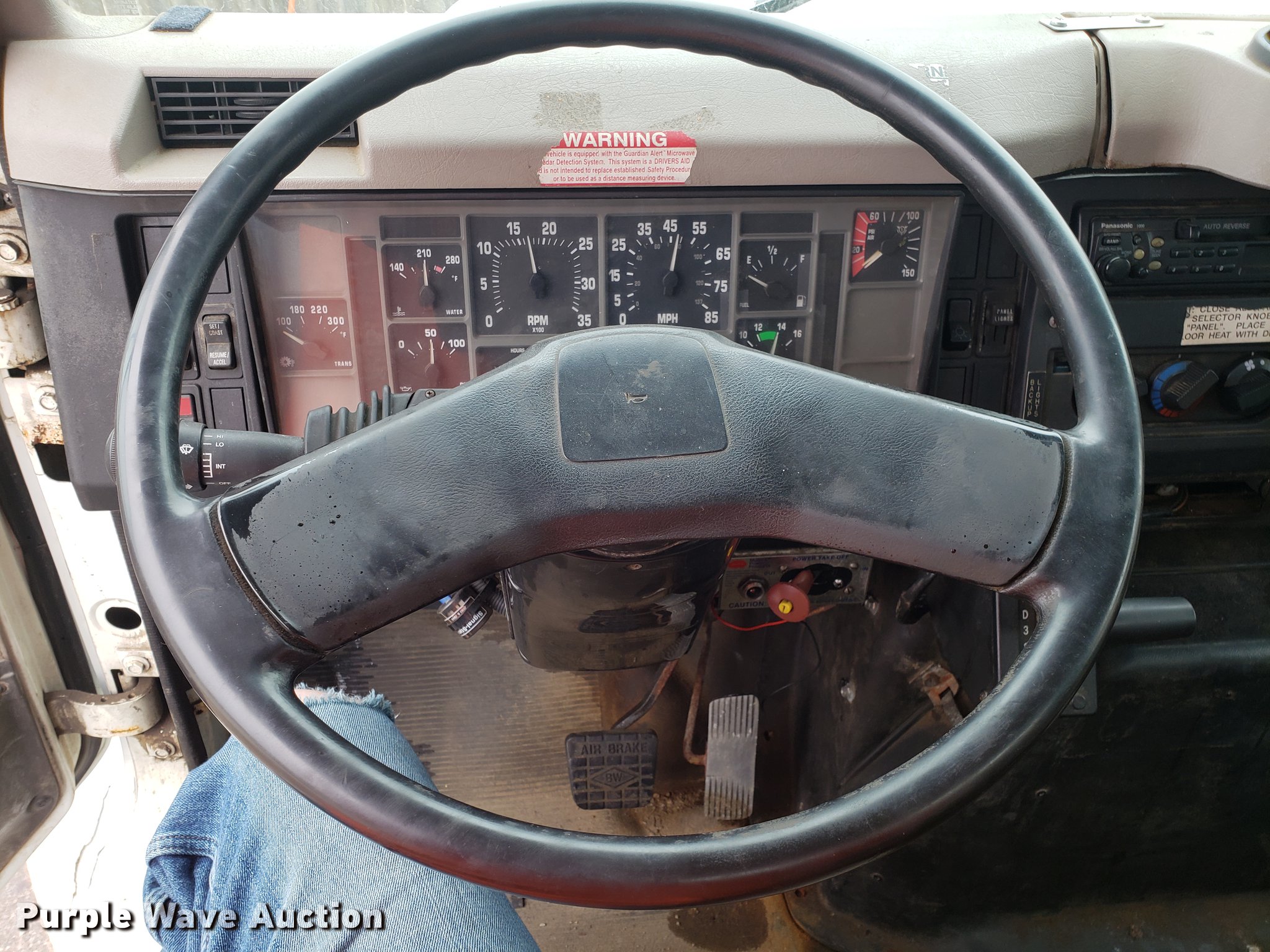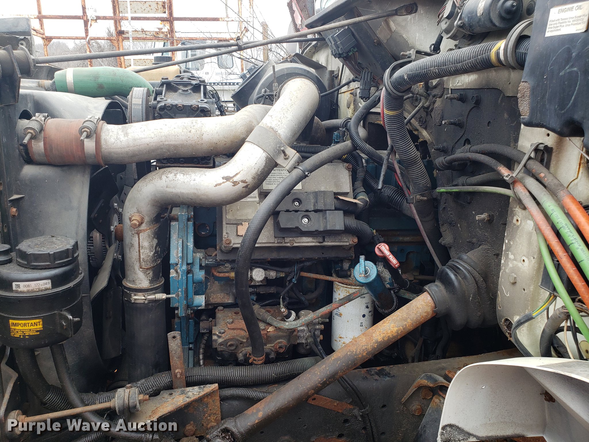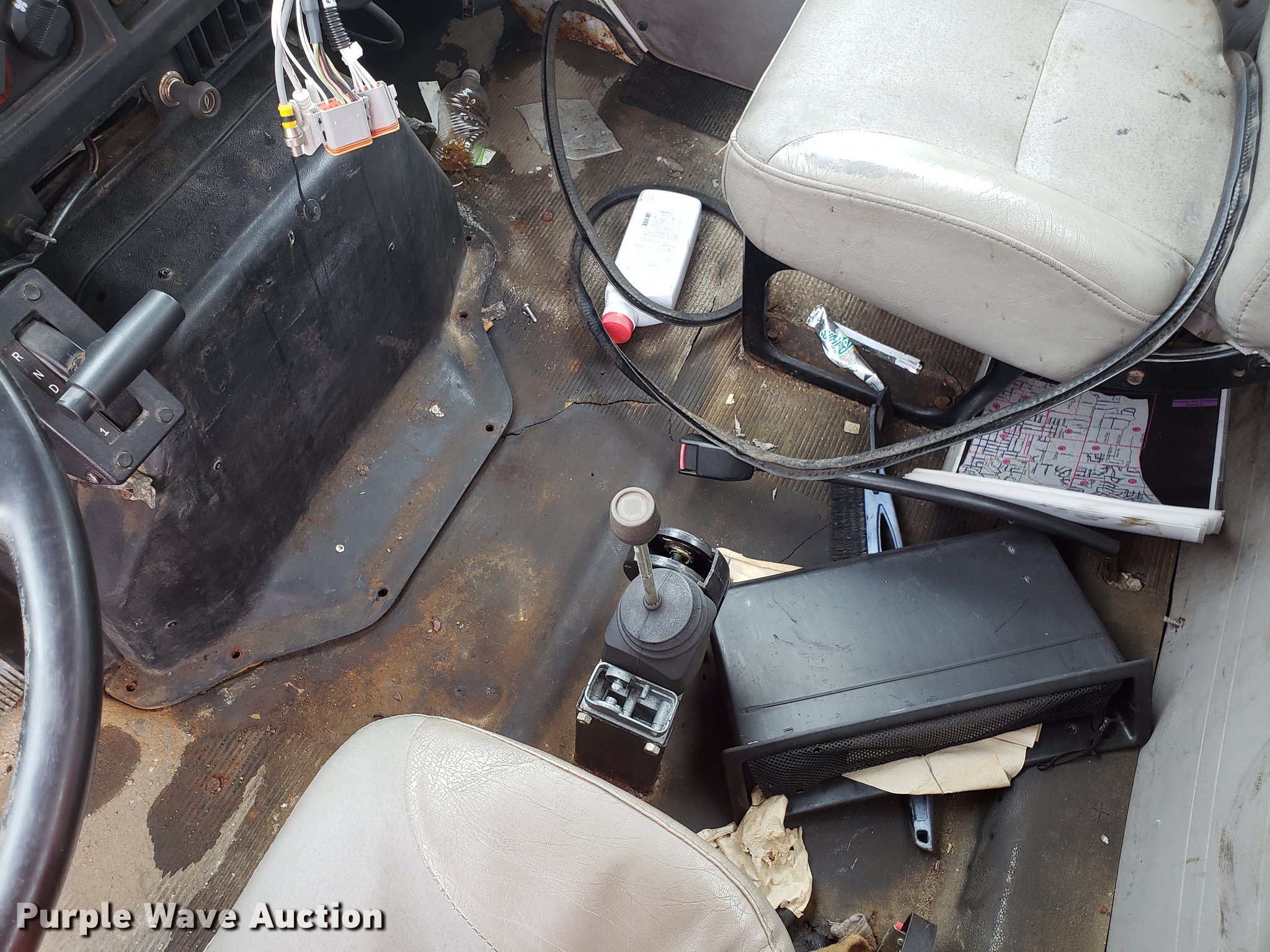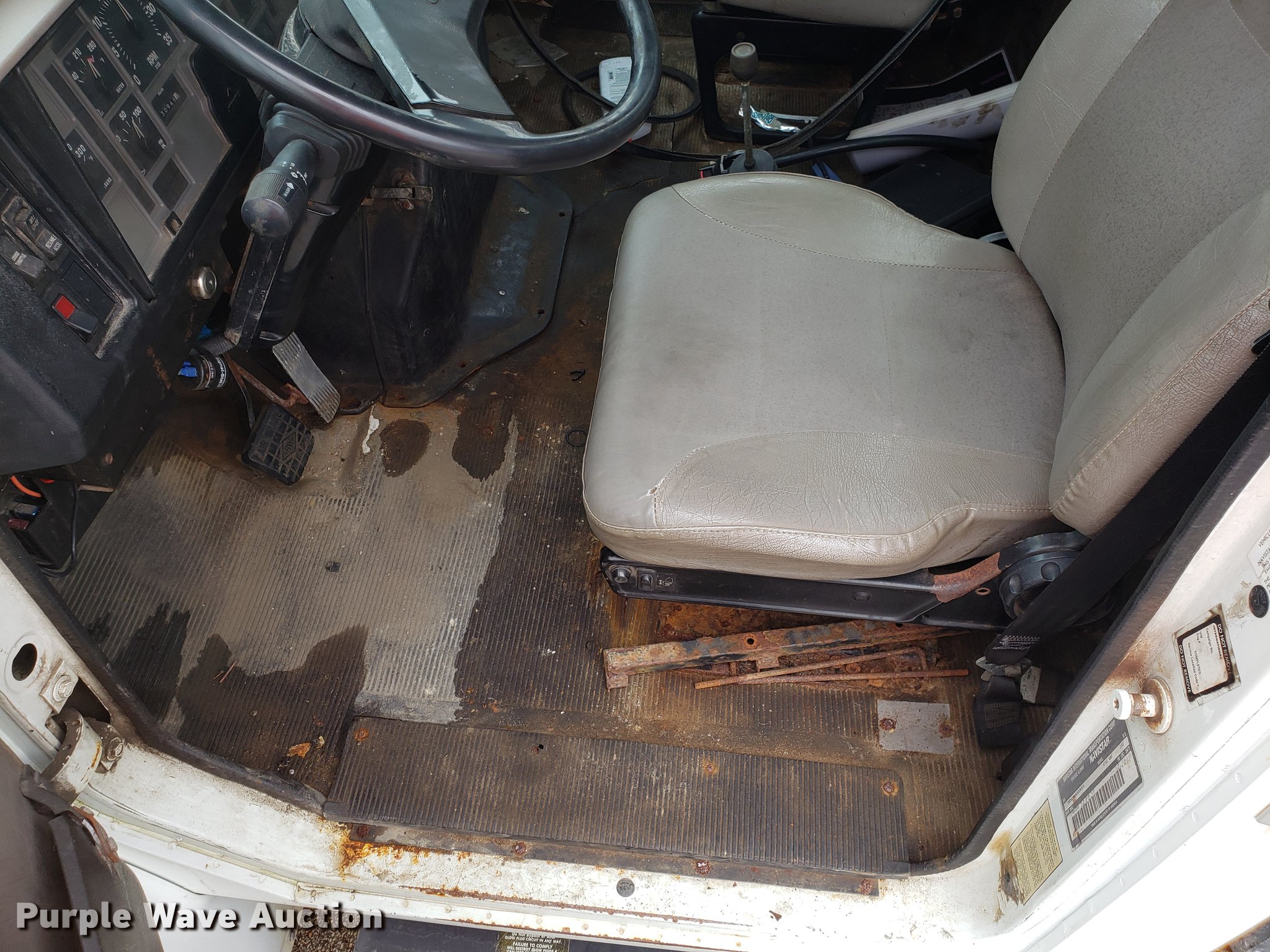 Purple Wave is selling a used Truck Chassis in Missouri. This item is a 2001 International 4700 spreader truck with the following: 233,077 miles on odometer, 30,946 hours on meter, International DT466 7.6L L6 turbo diesel engine, Automatic transmission, Cruise, AM/FM, Air suspension seat, PTO, Plow mount, Warren stainless steel spreader bed, 11'L x 7'W, Hydraulic operation, Spring suspension, Air brakes, 11R22.5 tires, Plow not included, Unknown operating condition, Unit# 3082