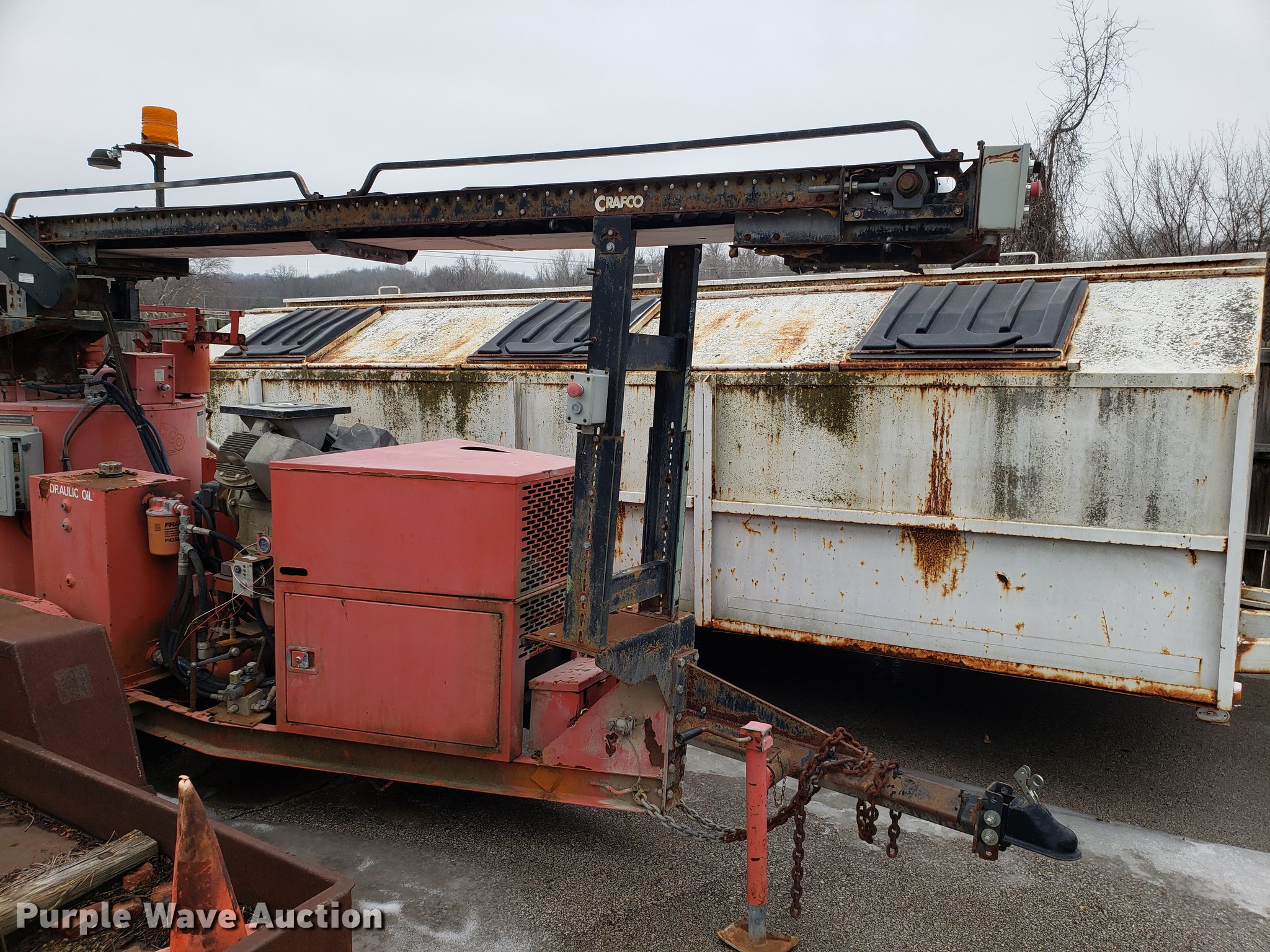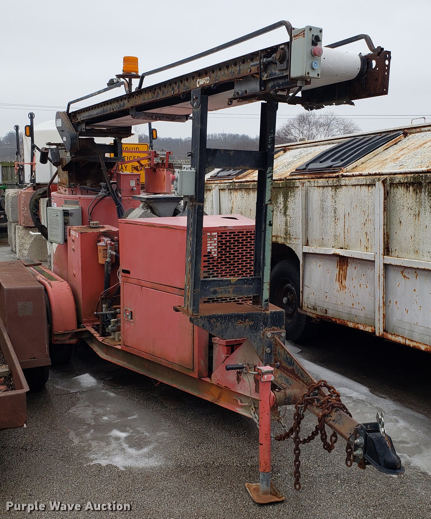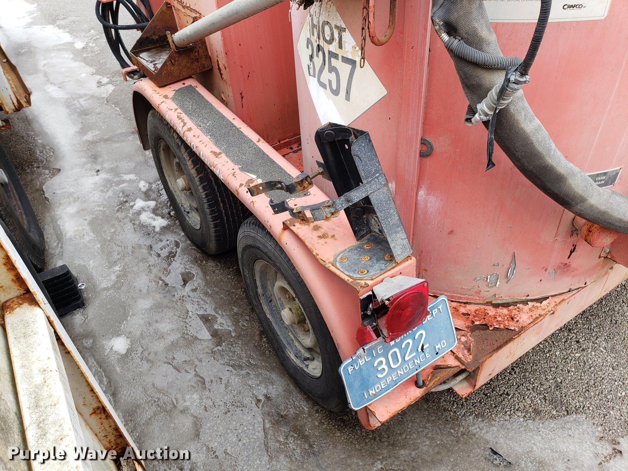 Purple Wave is selling a used Pot Hole Patcher in Missouri. This item is a Crafco SS125DC crack sealer with the following: Three cylinder diesel engine, 12"W conveyor, Air compressor, 2 5/16" ball hitch, Jack stand, 185R14 tires, GVWR 7,000 lbs, Unknown operating condition, Unit# 8676