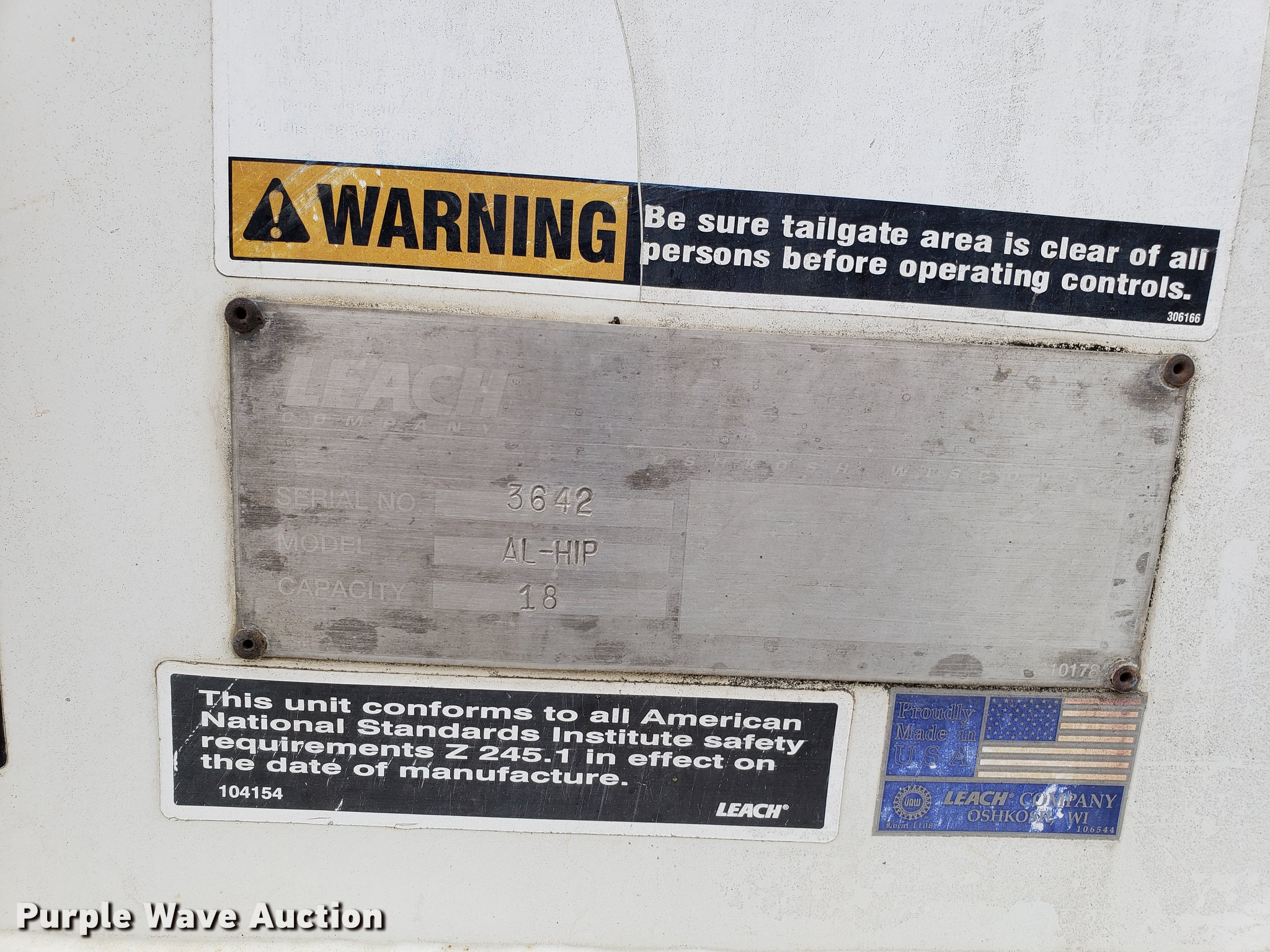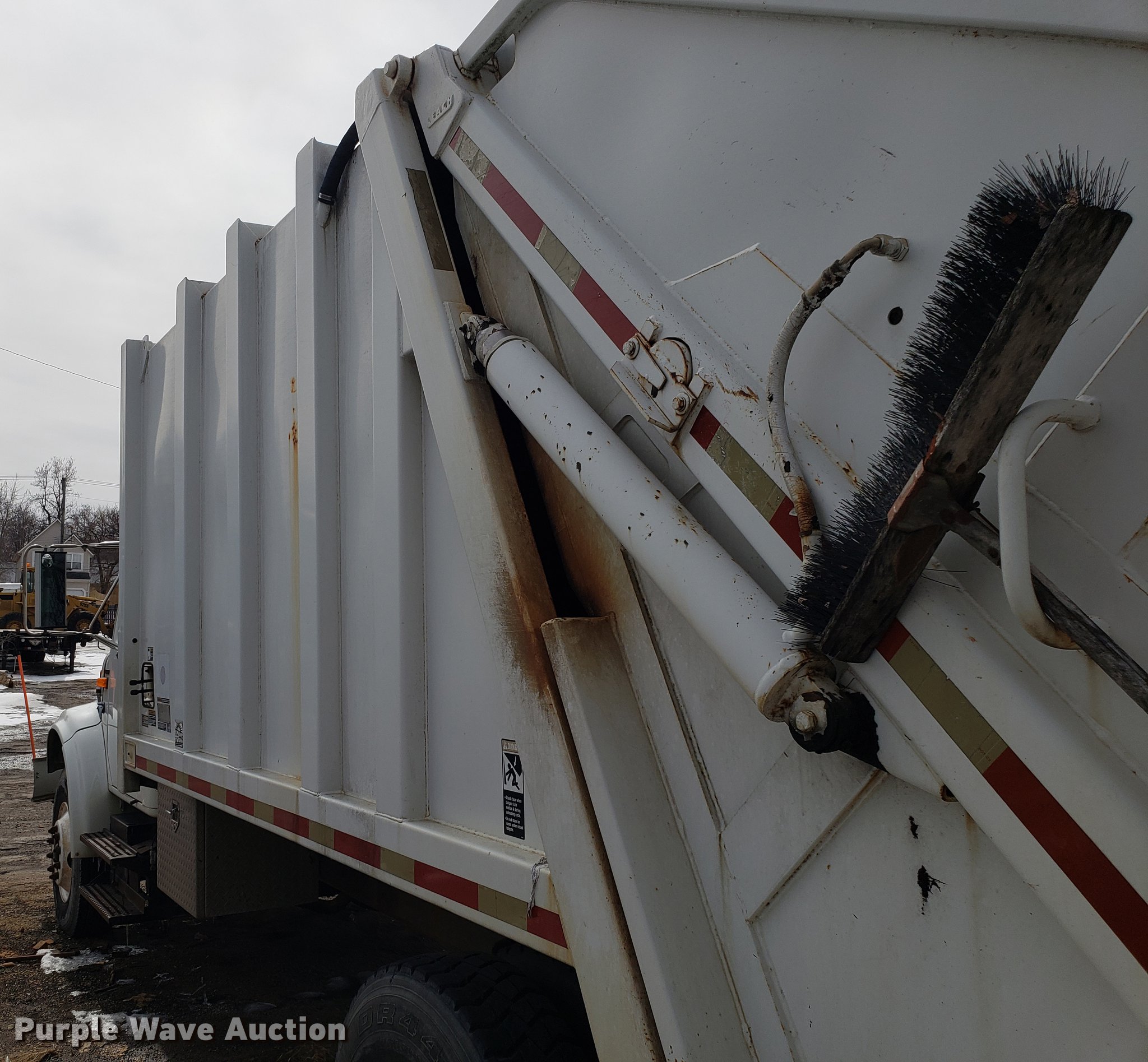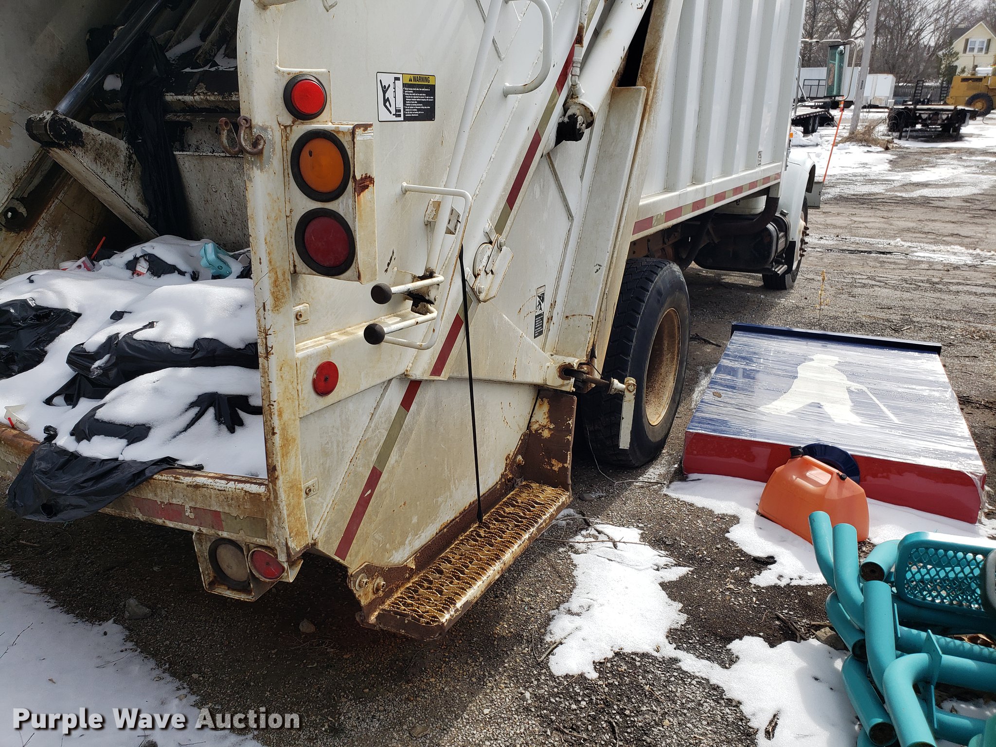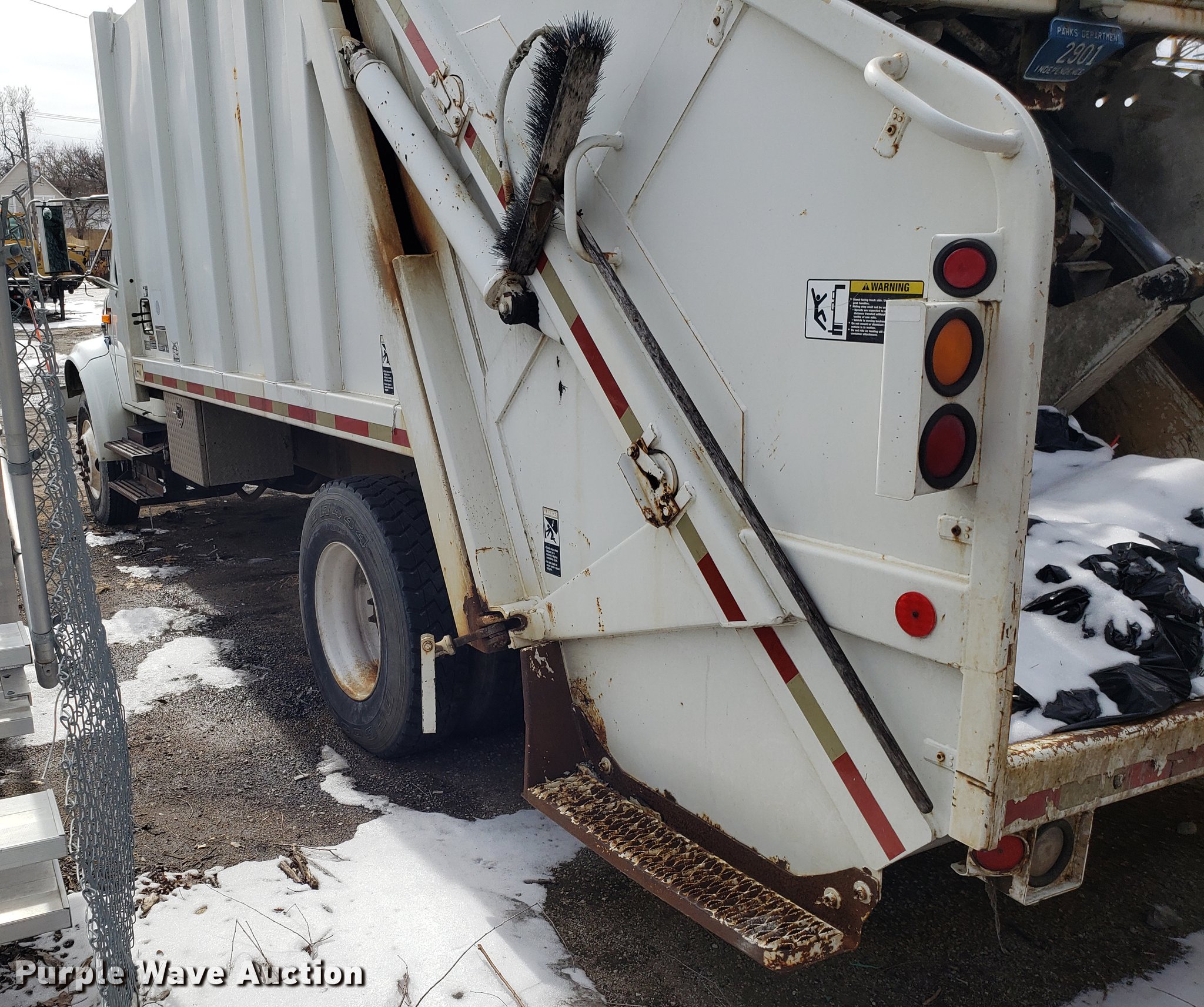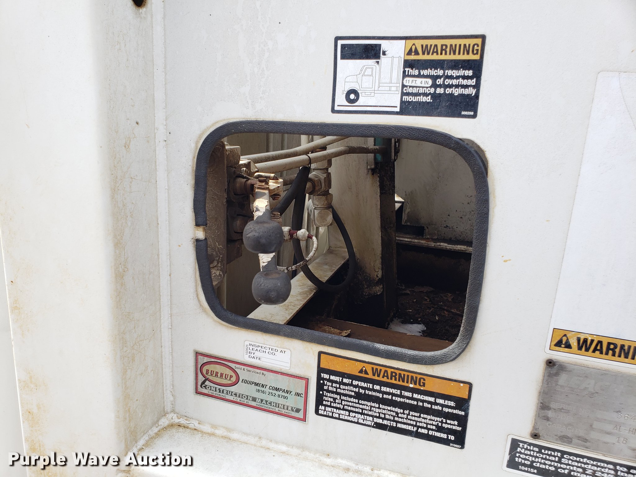 Purple Wave is selling a used Refuse Truck in Missouri. This item is a 1998 International 4900 refuse truck with the following: 97,787 miles on odometer, 9,883 hours on meter, International DT466 7.6L L6 turbo diesel engine, Automatic transmission, Heat, AM/FM/CD, Vinyl interior, PTO, Leach AL-HIP refuse bed, 18'L, Rear load, Serial 3642, Spring suspension, Air brakes, 11R22.5 tires, Non-operational unit, Unit# 2901
