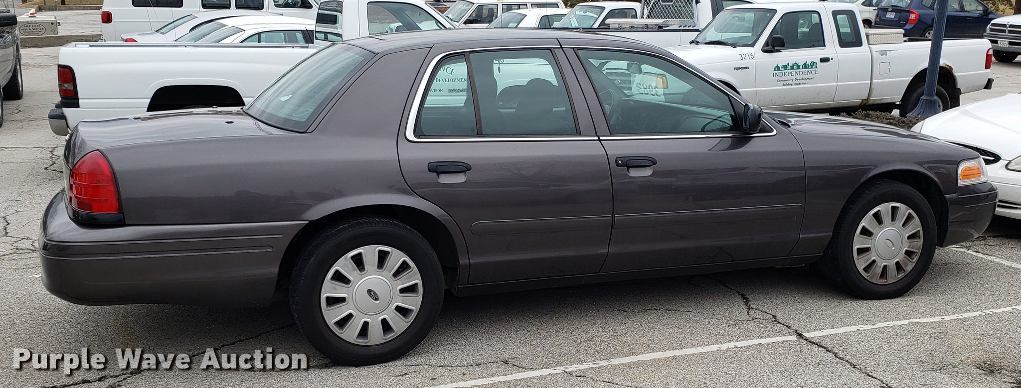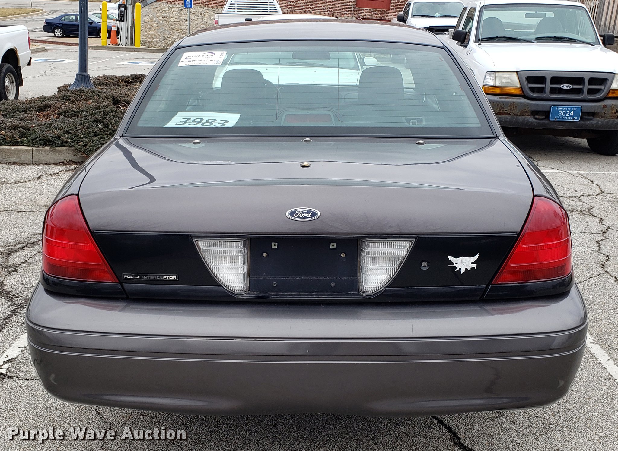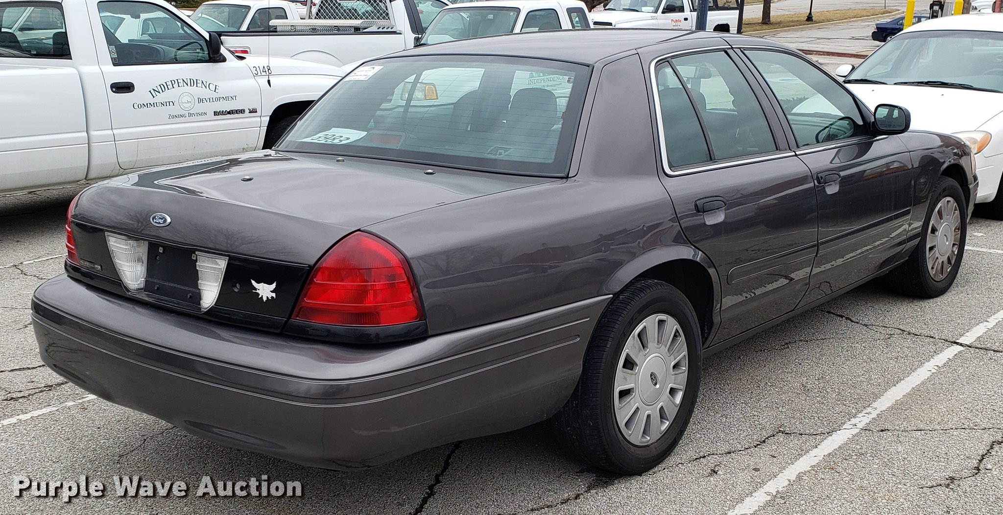 Purple Wave is selling a used Passenger Vehicle in Missouri. This item is a 2007 Ford Crown Victoria Police Interceptor with the following: 158,899 miles on odometer, 4.6L V8 SOHC 16V gas engine, Automatic transmission, AC and heat, Tilt, Cruise, AM/FM, Power windows, locks, and mirrors, Cloth interior, 235/55R17 tires, BAttery dead, Unit# 3983