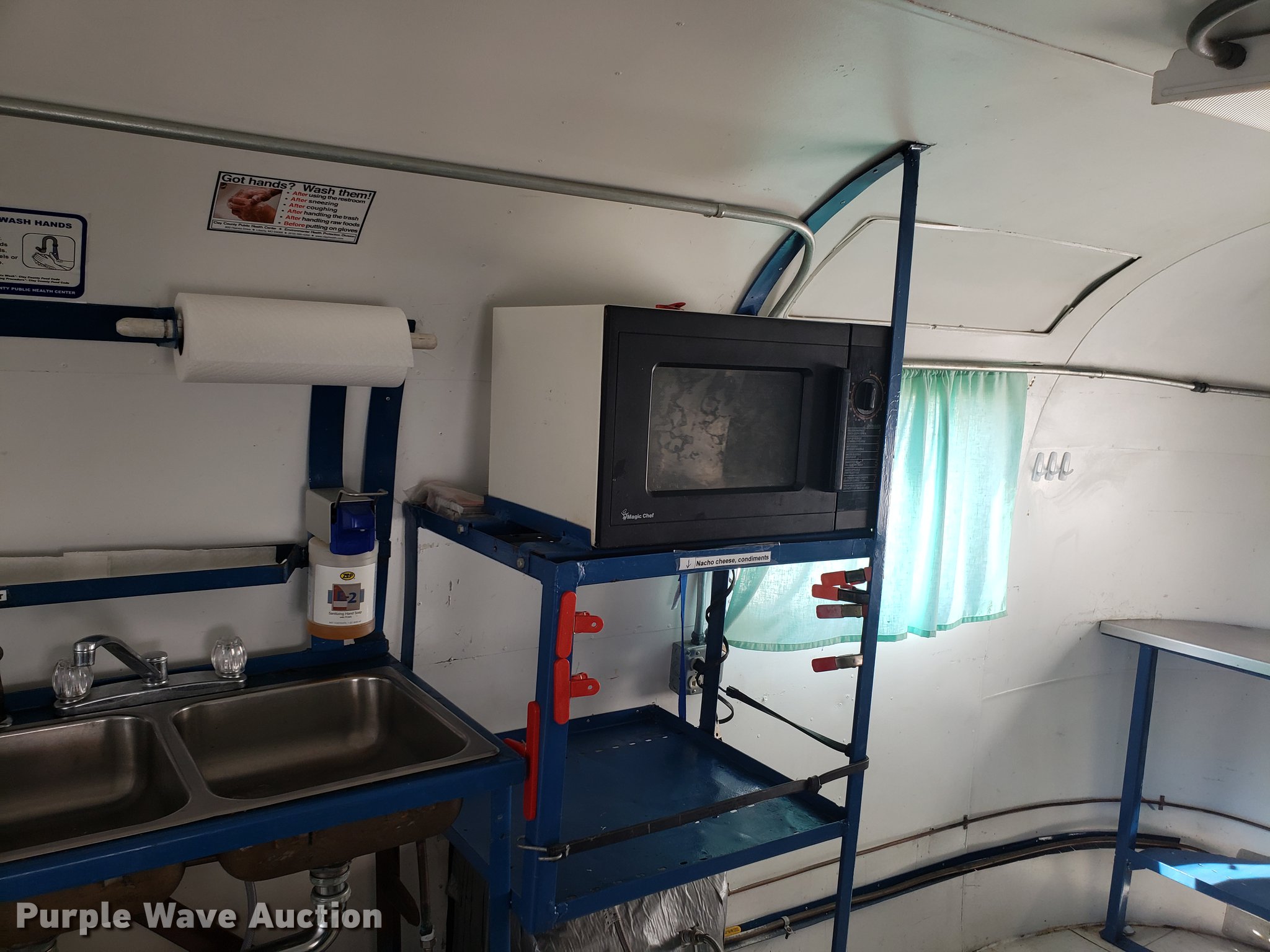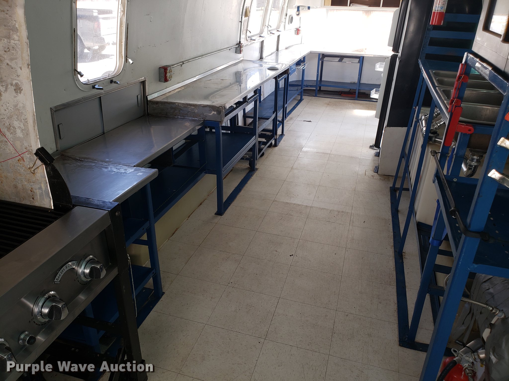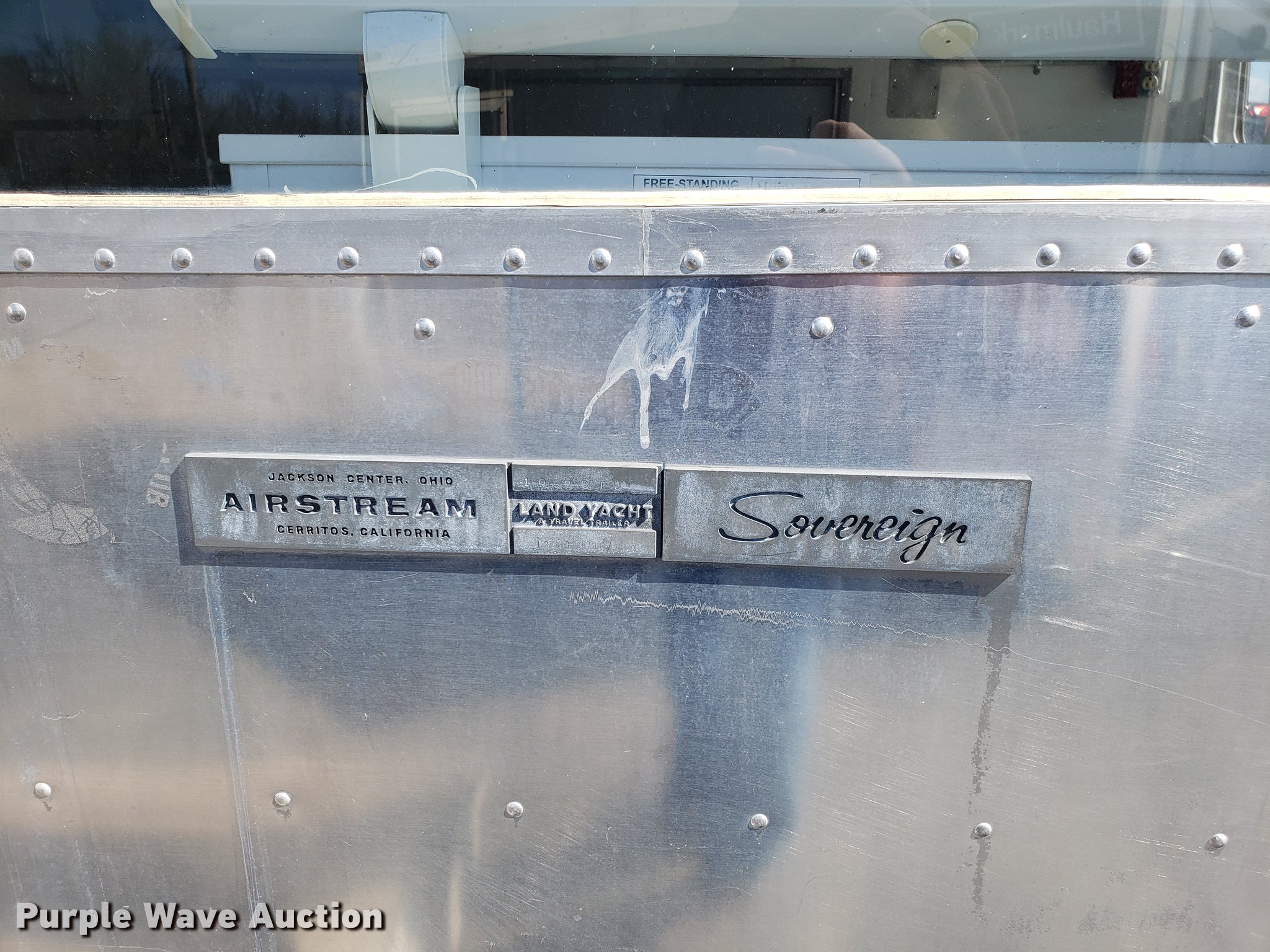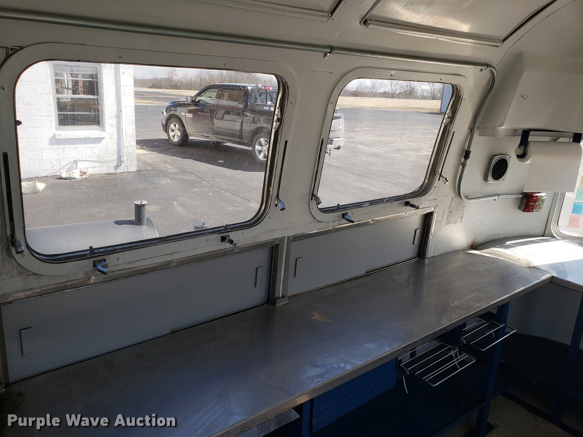 Purple Wave is selling a used RV in Missouri. This item is a 1973 Air Stream Land Yacht mobile kitchen with the following: 28'L x 7.5'W, AC and heat, (2) sales windows, Rear storage rack, Deep freeze, Refrigerator/freezer, Stainless steel sinks, Microwave, Eight burner propane grill, Serial 131A332177, 2 5/16" ball hitch, Electric jack stand, Tandem axle, 7-15 tires, GVWR 7,100 lbs