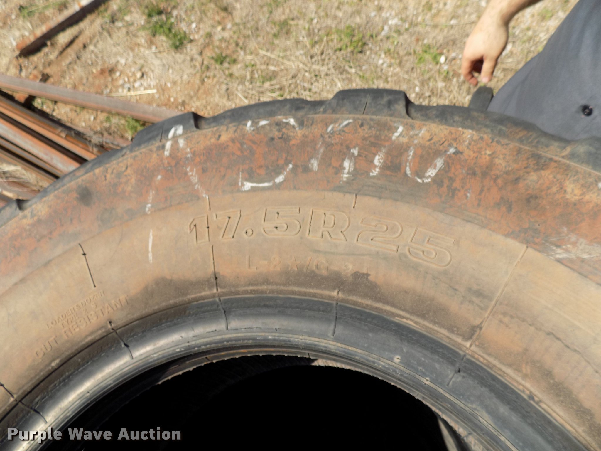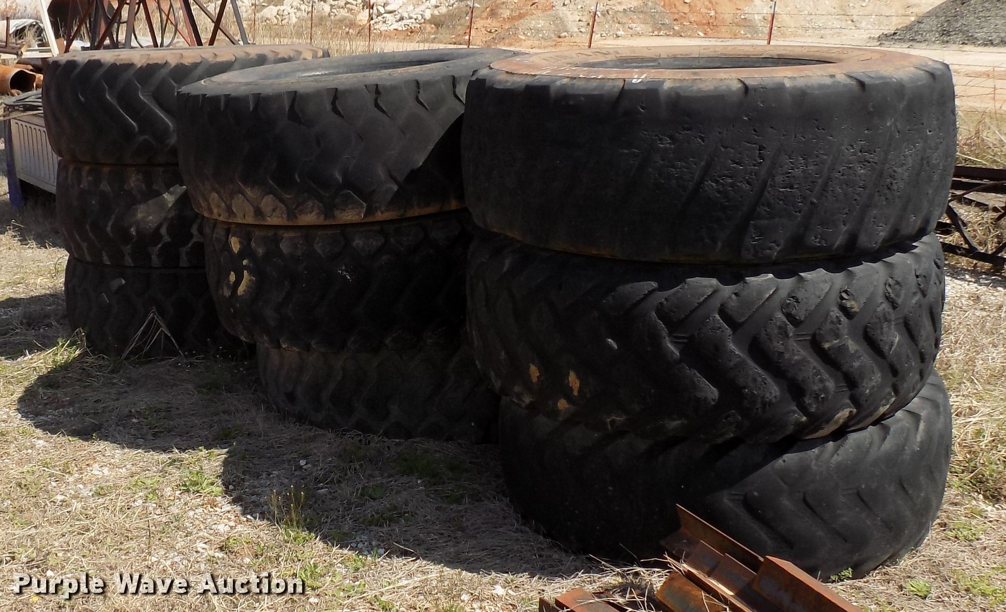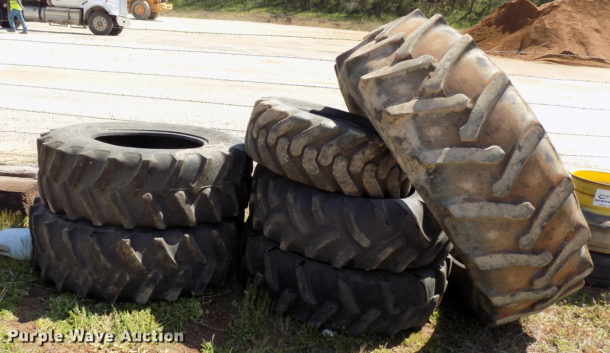 Purple Wave is selling a used Industrial Tires or Tracks in Oklahoma. This item is a (14) tires with the following: 18.4x38, (2) 14.9x24, 13.9x24, 12.5/80/18, (9) 17.5R25