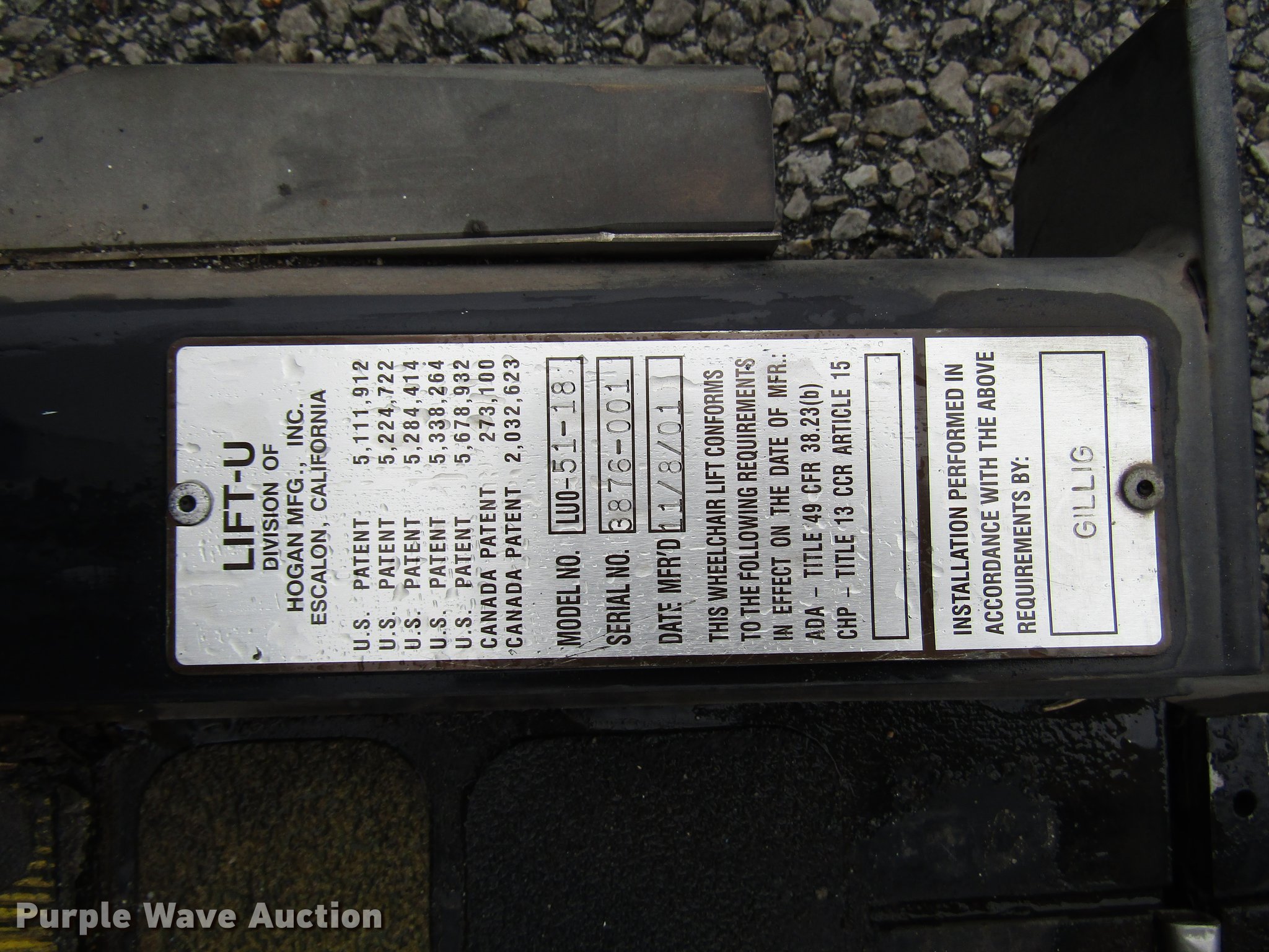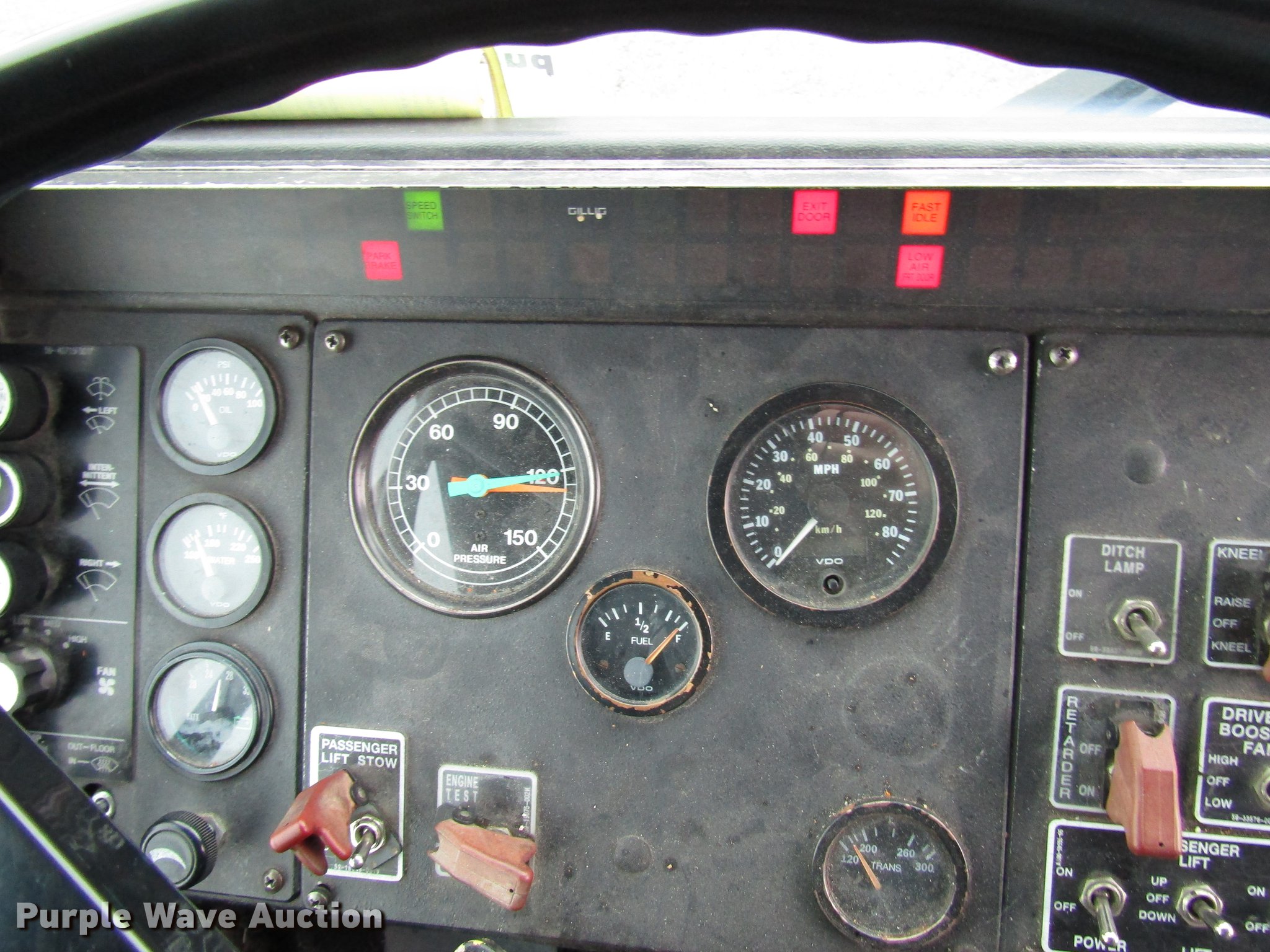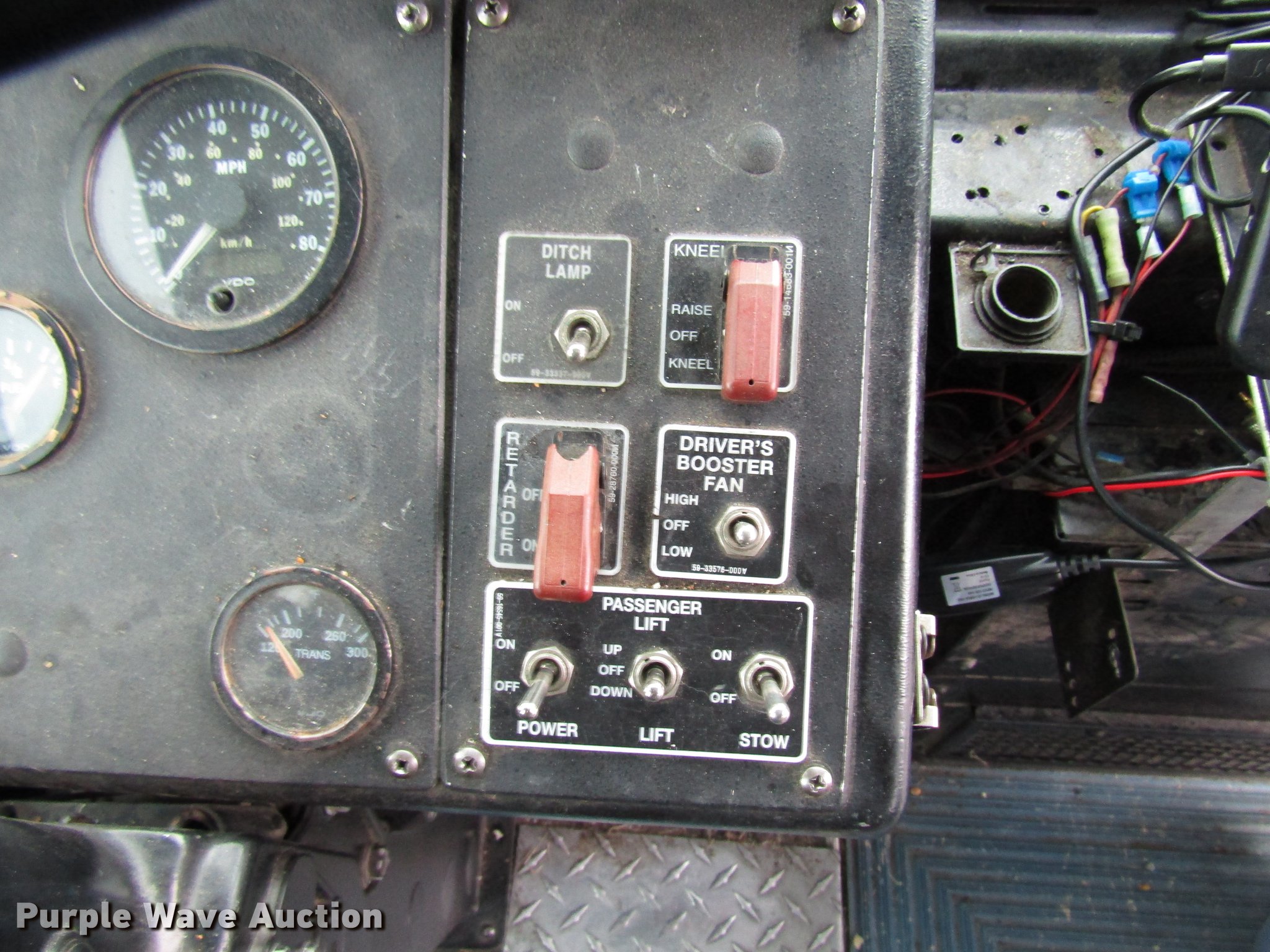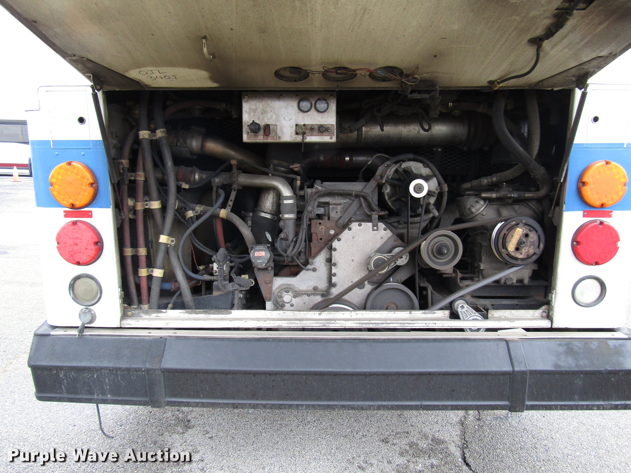 Purple Wave is selling a used Bus in Arkansas. This item is a 2001 Gillig G21B096N4 shuttle bus with the following: Unknown miles on odometer, 74,565 miles on hubodometer, Cummins M11 10.0L six cylinder turbo diesel engine, Automatic transmission, Single axle, AC and heat, AM/FM/CD, Power mirrors, Air suspension seat, Electric passenger sliding door, Ceiling handrail, 36 passenger capacity, Lift-U LUO-51-18 wheelchair lift, Serial 3876-001, Wheelchair tie down area, Ceiling and side emergency exits, Backup alarm, Air brakes, Air suspension, 220" wheelbase, 12R22.5 tires, GVWR 39,600 lbs, Low front door light on