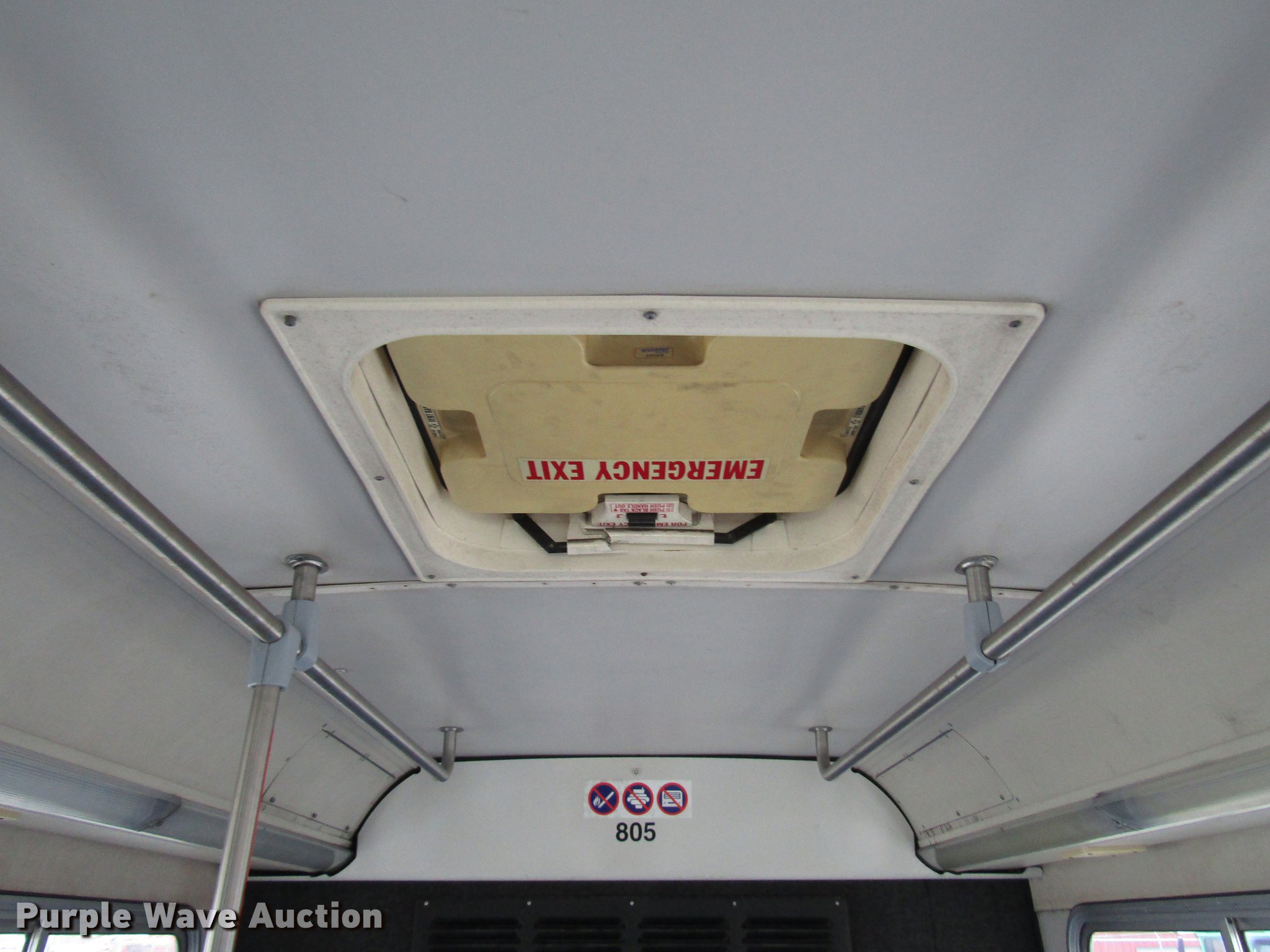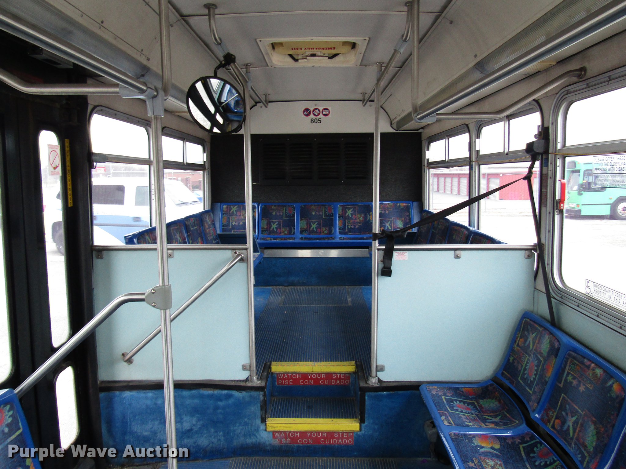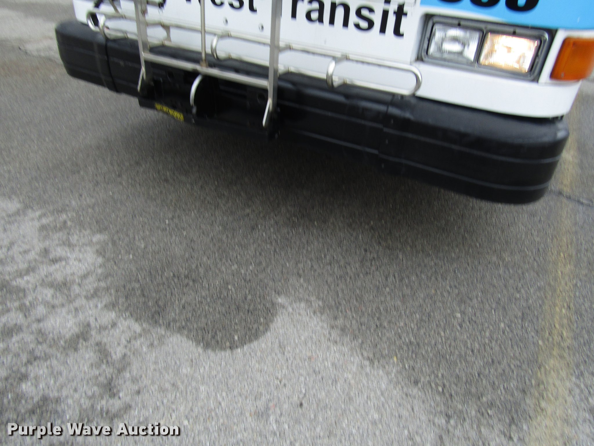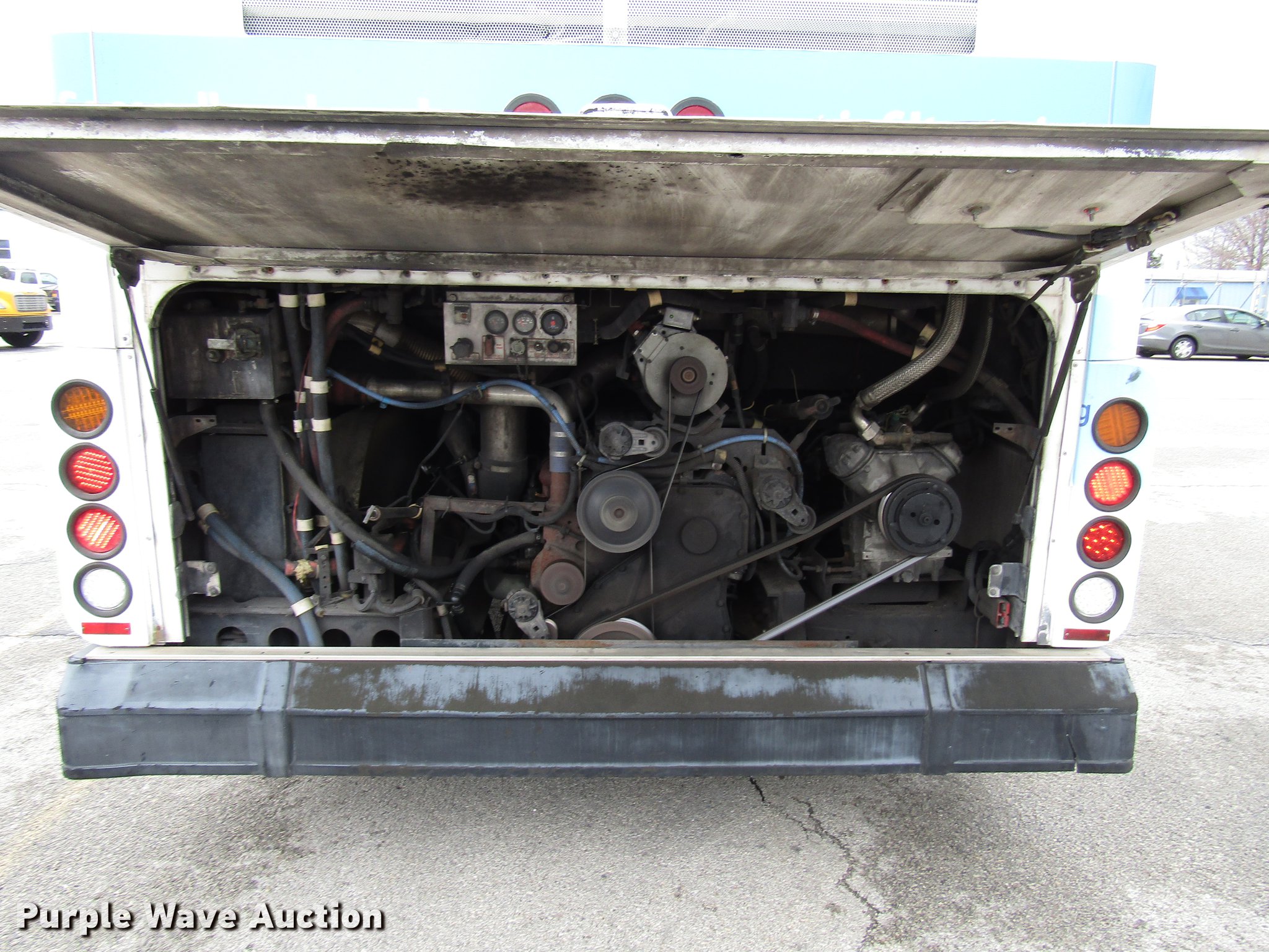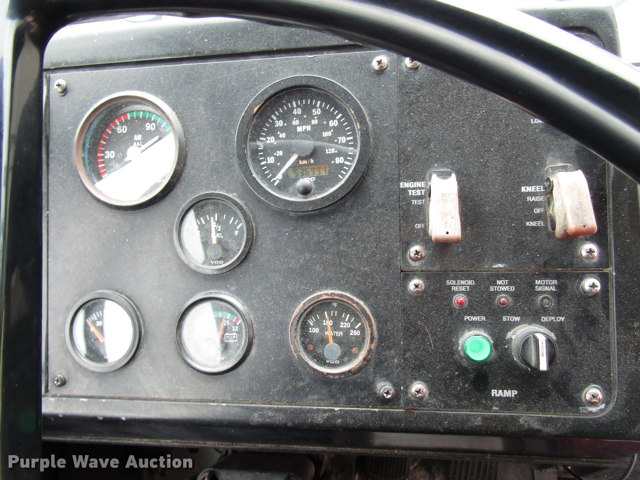 Purple Wave is selling a used Bus in Arkansas. This item is a 2001 Gillig G18E102R2 shuttle bus with the following: 53,699 miles on odometer, Cummins ISC 8.3L six cylinder turbo diesel engine, Automatic transmission, Single axle, AC and heat, Power mirrors, Air suspension seat, Electric passenger sliding door, Ceiling handrail, 23 passenger capacity, Lift-U LU603-03 wheelchair lift, Non-operational, Serial 3800-003, Wheelchair tie down area, Ceiling and side emergency exits, Backup alarm, Air suspension, Air brakes, 165" wheelbase, 275/70R22.5 tires, GVWR 30,000 lbs, ABS light on, Speed switch light on, Engine fluid light on, Low air front door light on