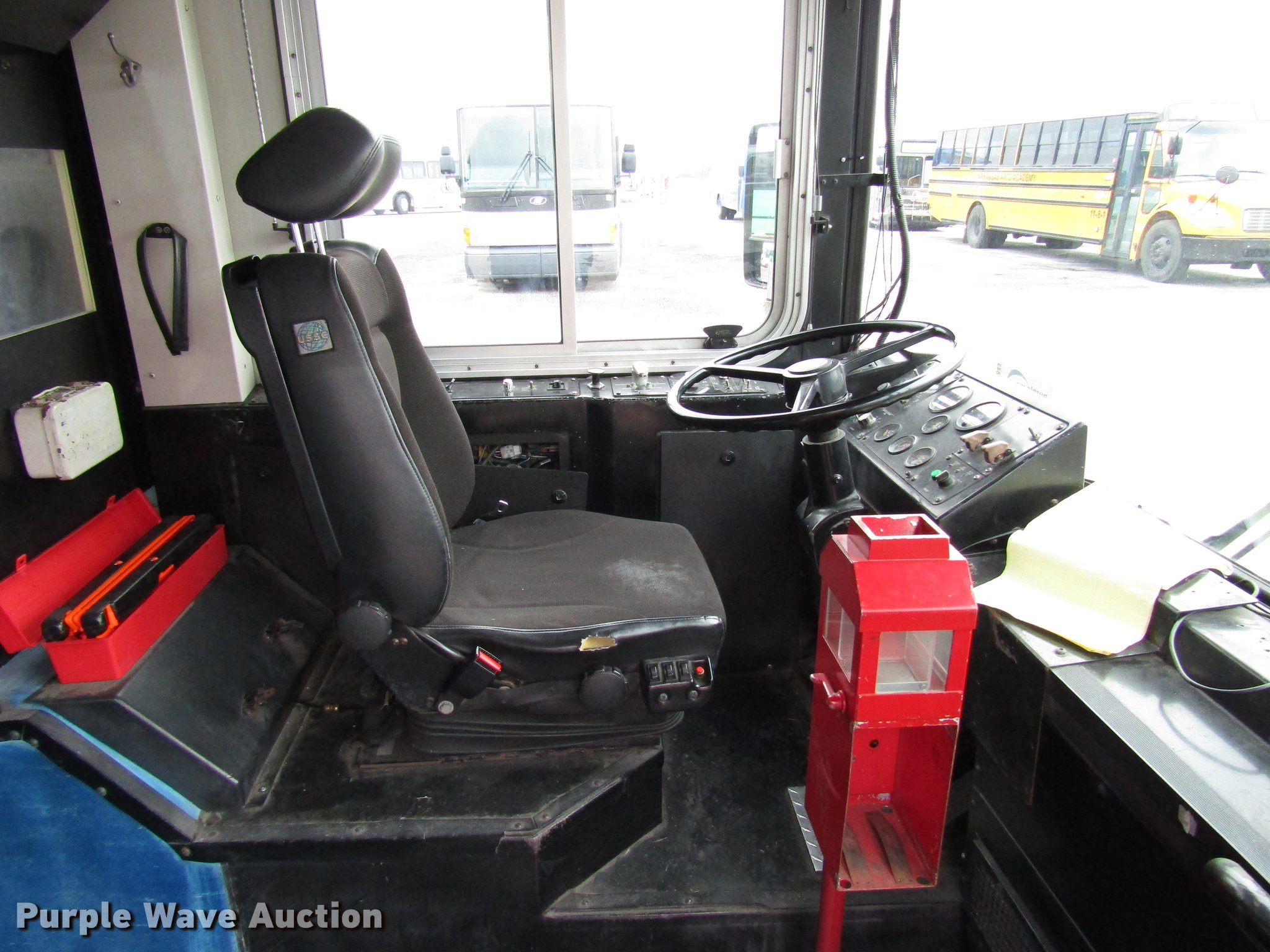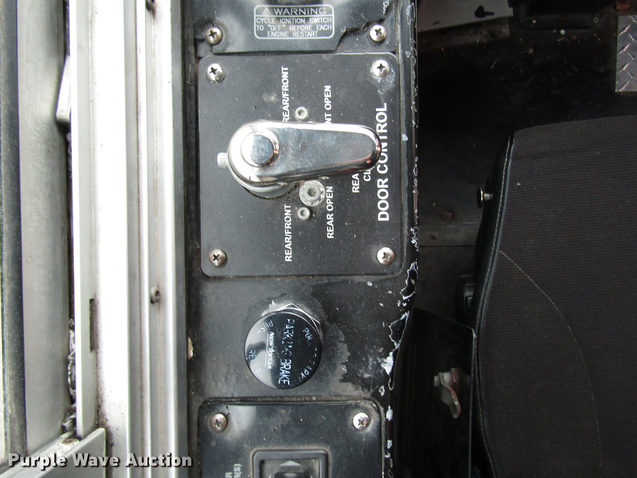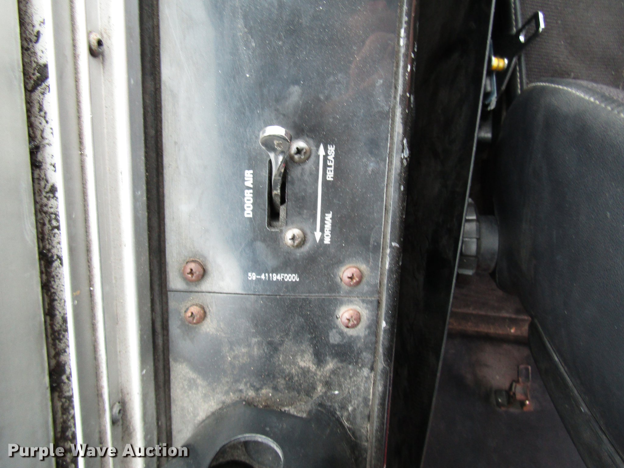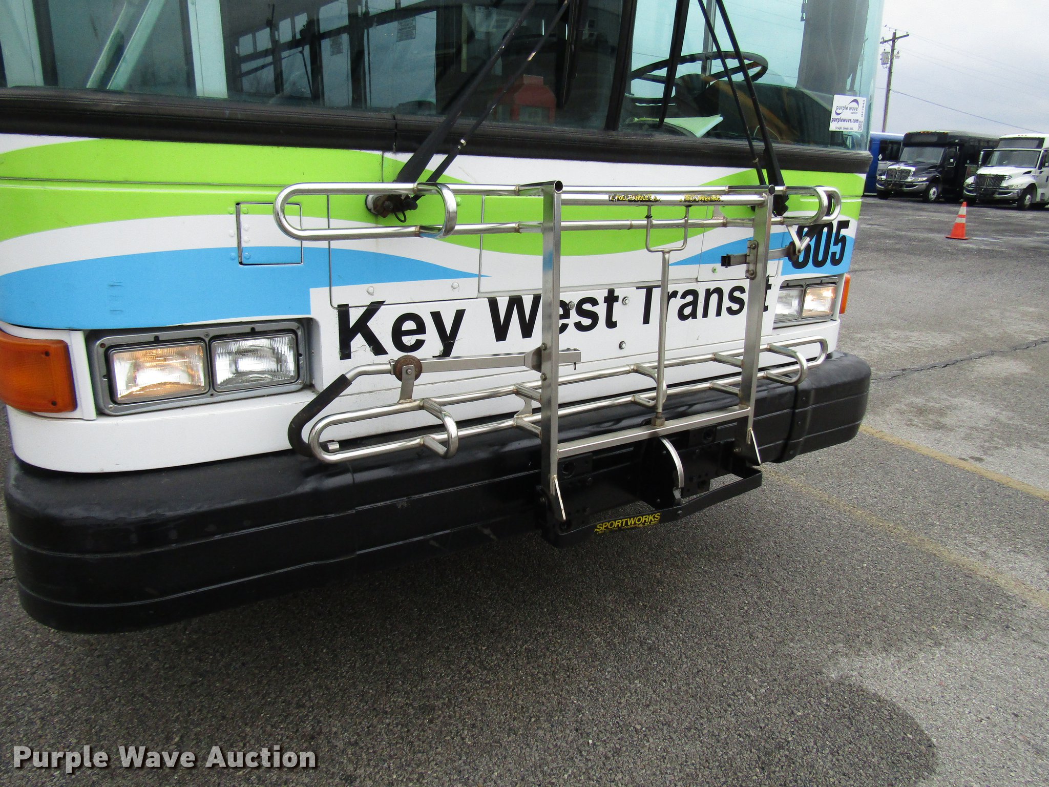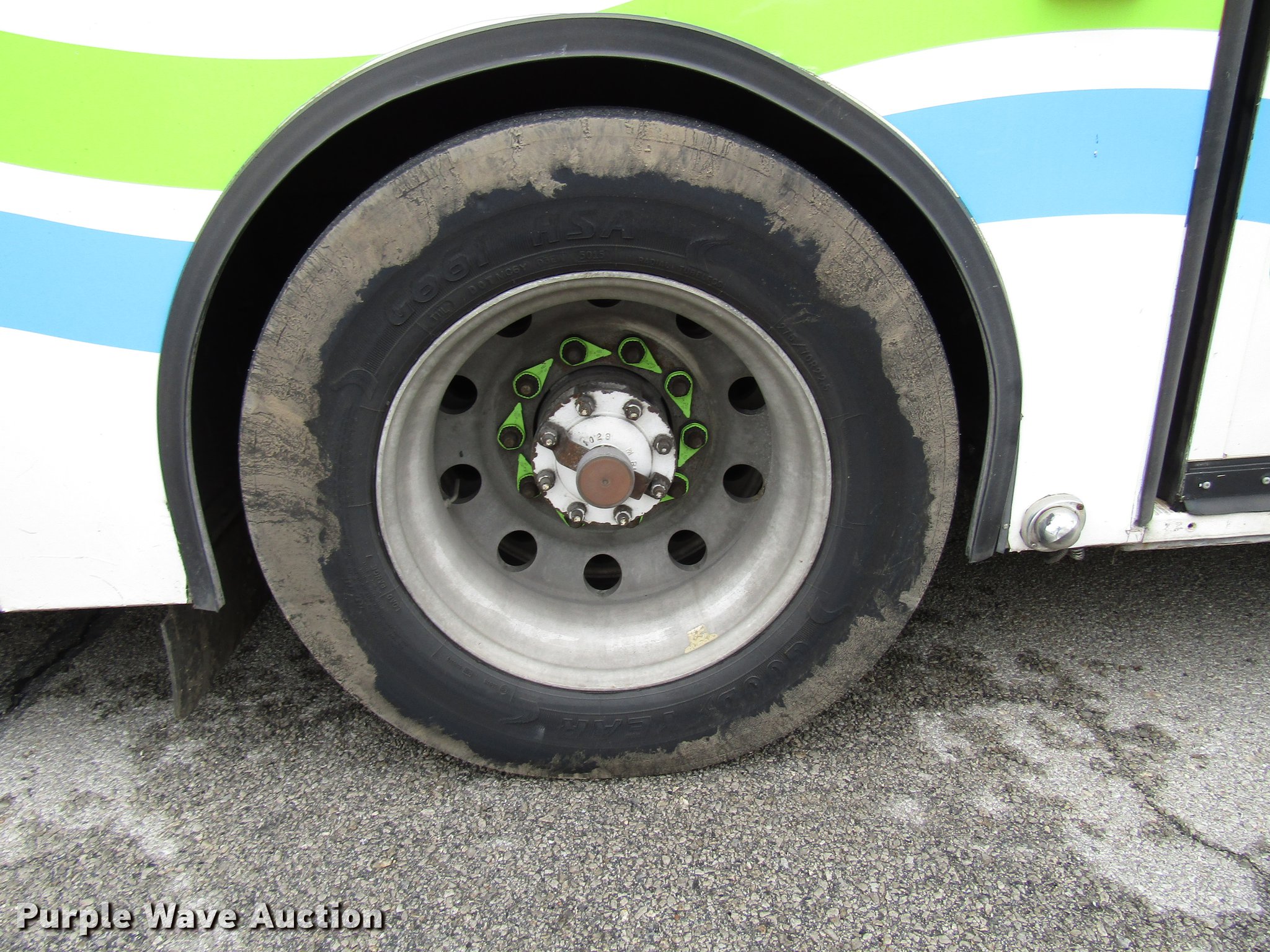 Purple Wave is selling a used Bus in Arkansas. This item is a 2001 Gillig G18E102R2 shuttle bus with the following: 53,699 miles on odometer, Cummins ISC 8.3L six cylinder turbo diesel engine, Automatic transmission, Single axle, AC and heat, Power mirrors, Air suspension seat, Electric passenger sliding door, Ceiling handrail, 23 passenger capacity, Lift-U LU603-03 wheelchair lift, Non-operational, Serial 3800-003, Wheelchair tie down area, Ceiling and side emergency exits, Backup alarm, Air suspension, Air brakes, 165" wheelbase, 275/70R22.5 tires, GVWR 30,000 lbs, ABS light on, Speed switch light on, Engine fluid light on, Low air front door light on