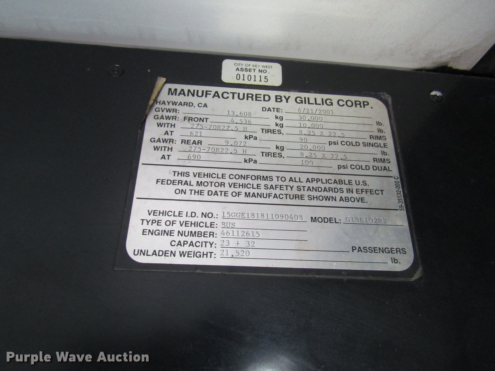 Take a look at this used 2001 Gillig G18E102R2 shuttle bus being sold on April 16th, 2019 in the SOLD! April 16 Government Auction made by Gillig. Take a look at all of the item information below or take a look at similar auctions for Transit Vehicles.