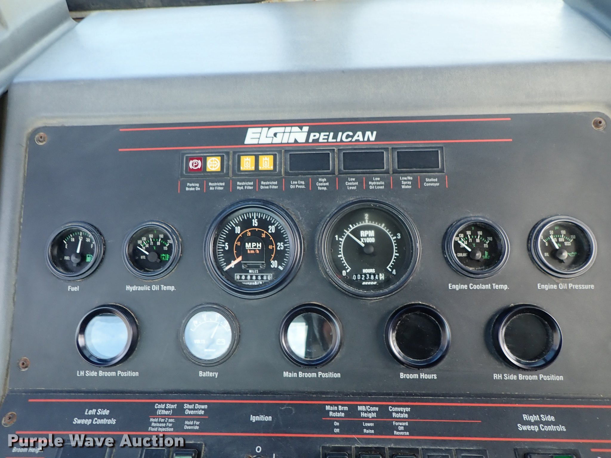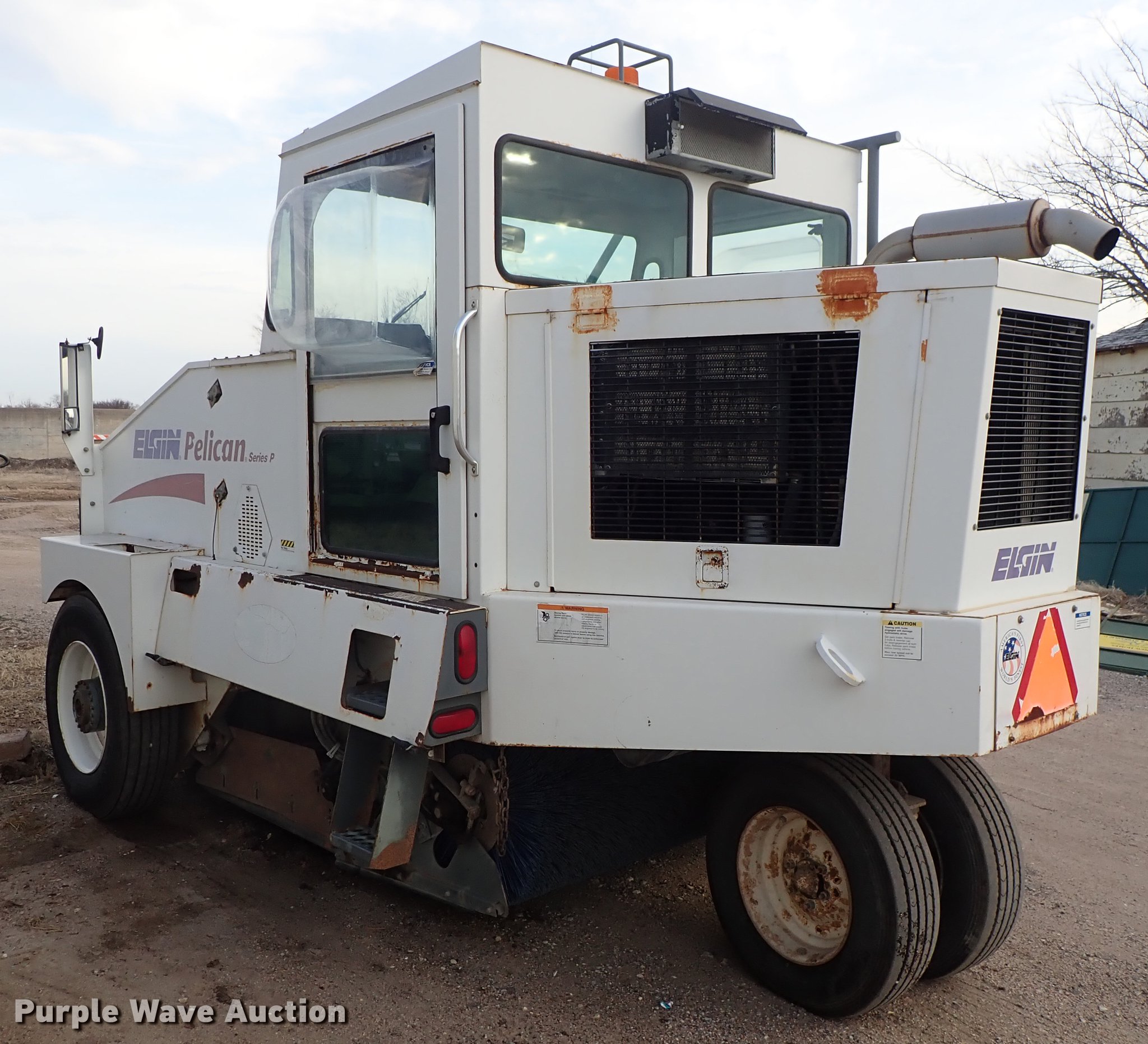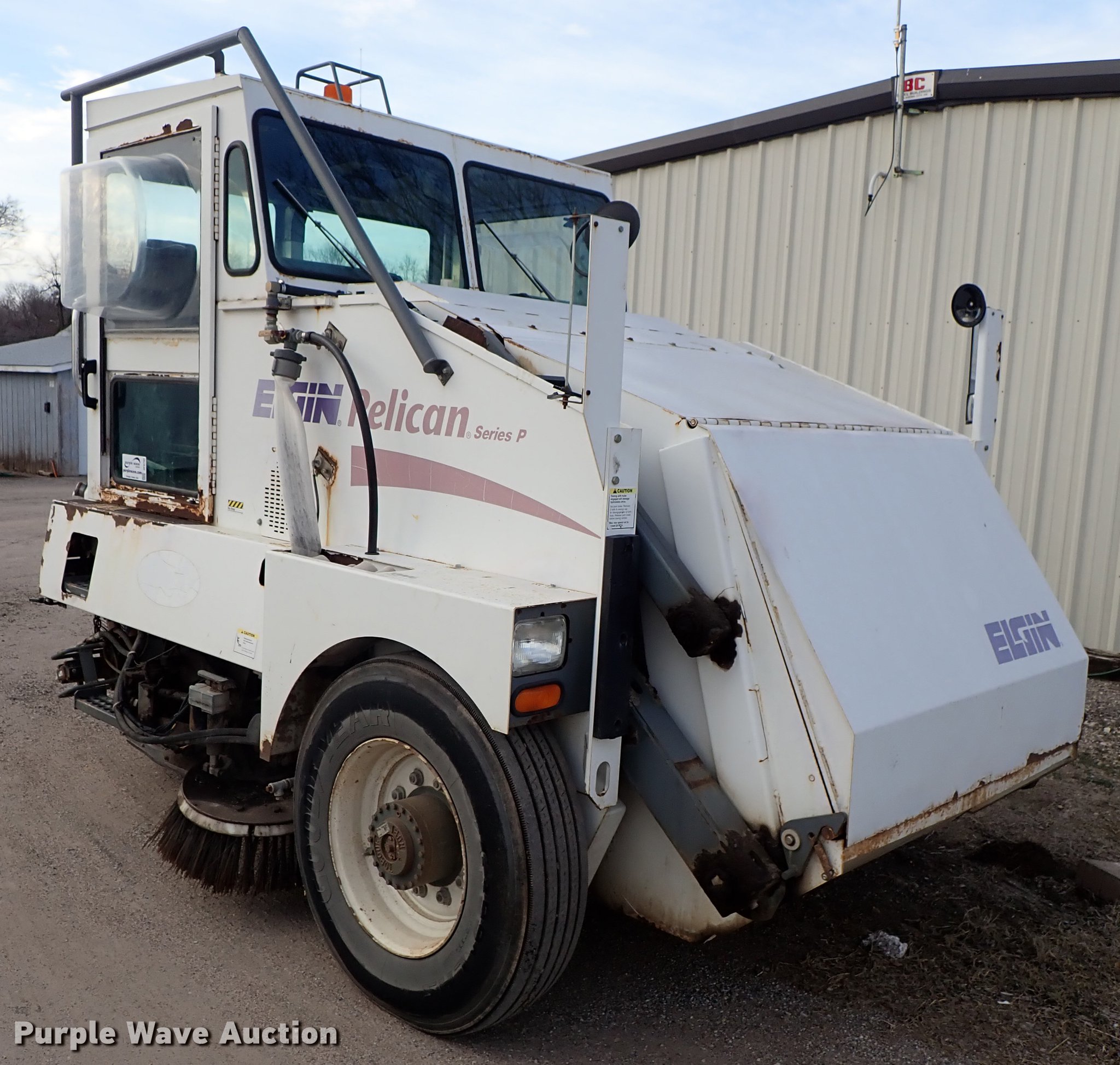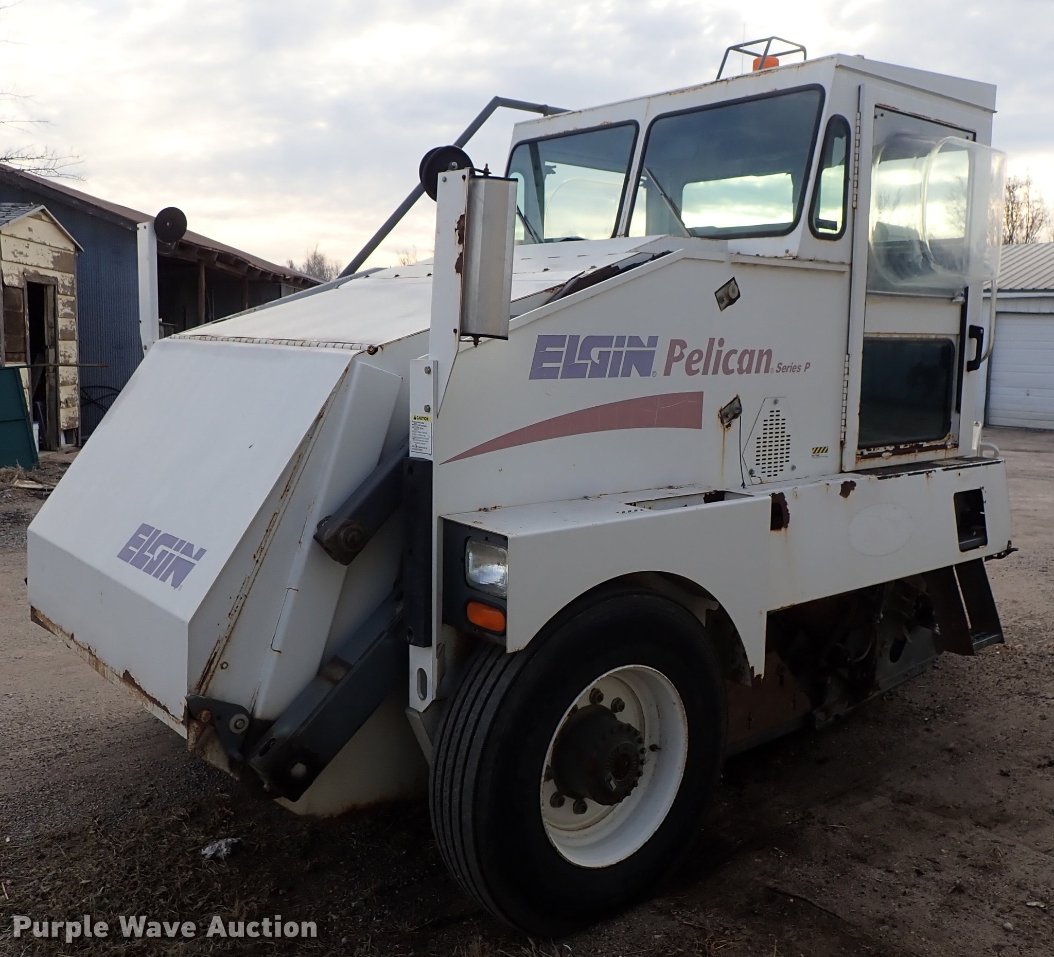 Purple Wave is selling a used Sweeper in Kansas. This item is a Elgin Pelican street sweeper with the following: 8,859 miles on odometer, 2,384 hours on meter, Four cylinder diesel engine, Hydrostatic transmission, Enclosed cab, AC and heat, Work lights, Hydraulic dump hopper, 66"W main broom, Right gutter broom, 11R22.5 tires, Additional parts and accessories, Additional 66"W unused broom, Serial P3929S