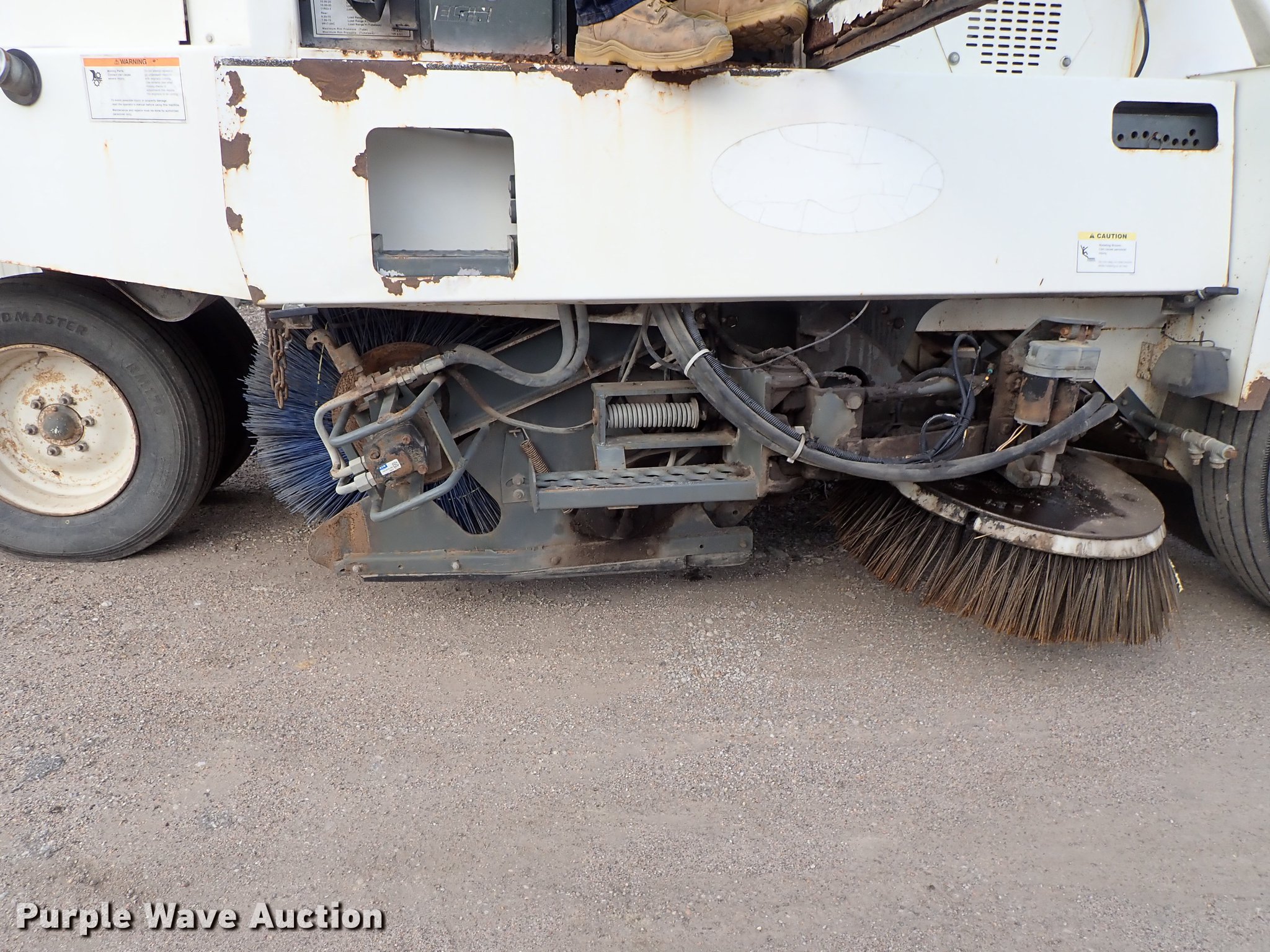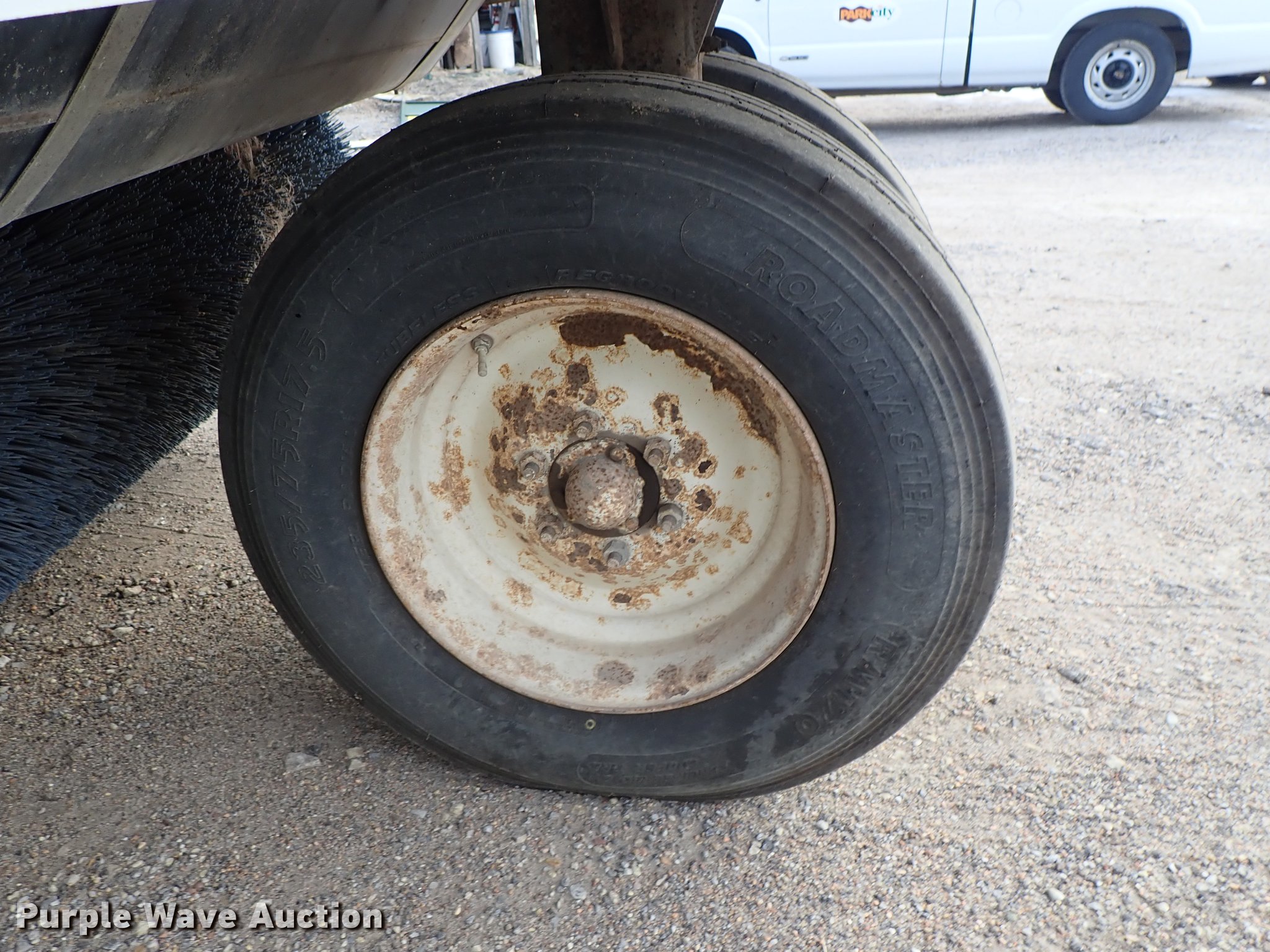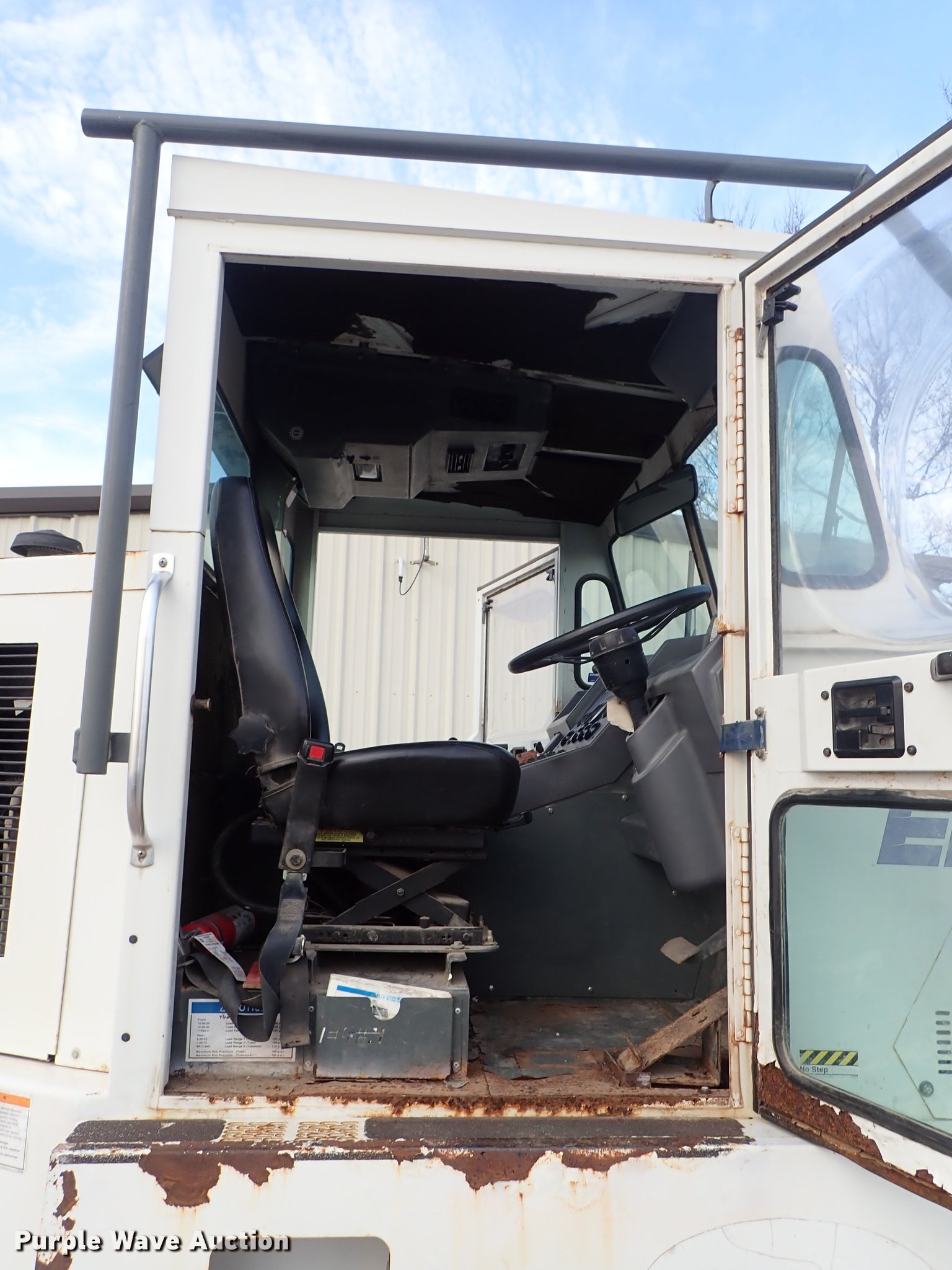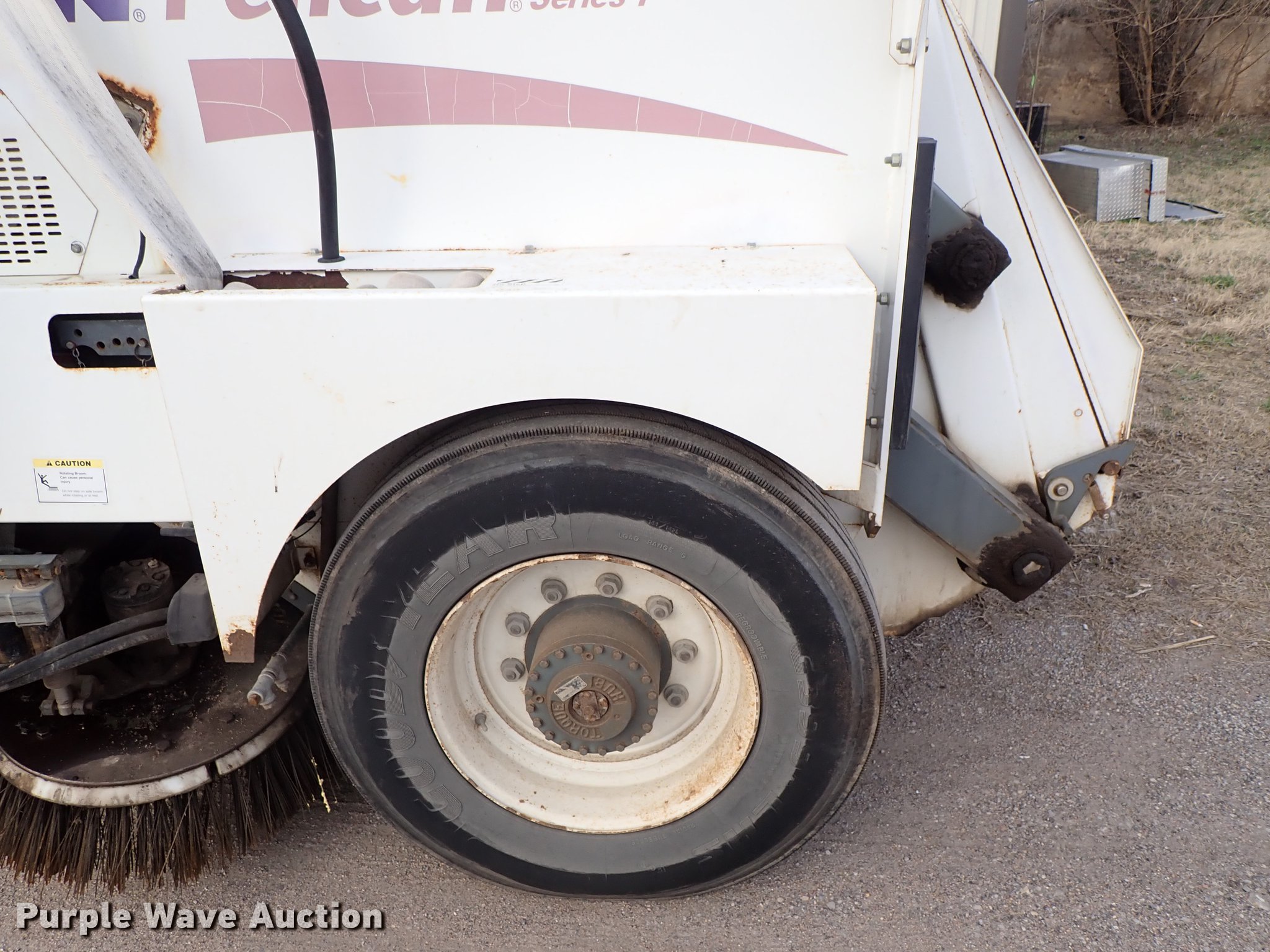 Purple Wave is selling a used Sweeper in Kansas. This item is a Elgin Pelican street sweeper with the following: 8,859 miles on odometer, 2,384 hours on meter, Four cylinder diesel engine, Hydrostatic transmission, Enclosed cab, AC and heat, Work lights, Hydraulic dump hopper, 66"W main broom, Right gutter broom, 11R22.5 tires, Additional parts and accessories, Additional 66"W unused broom, Serial P3929S