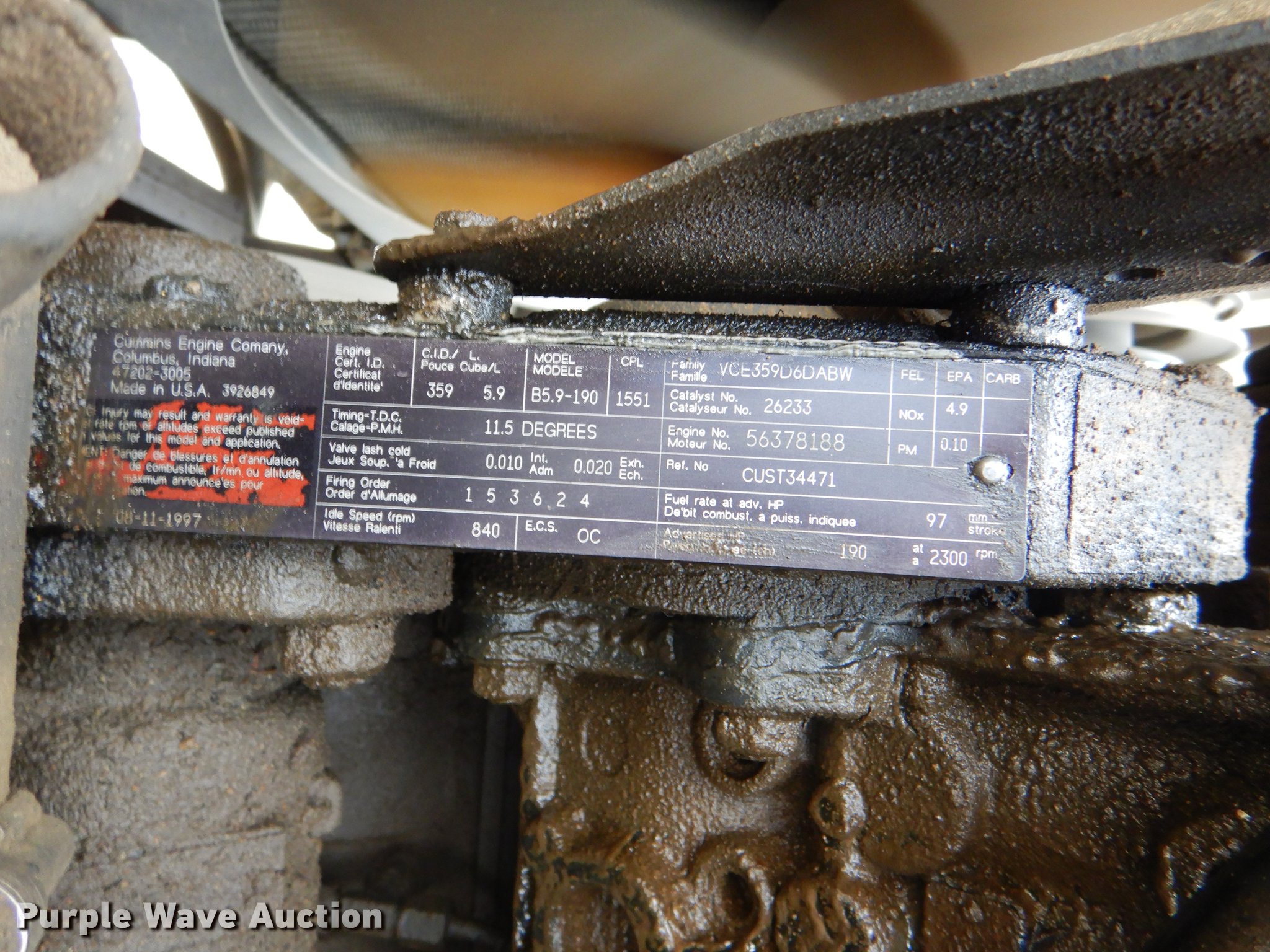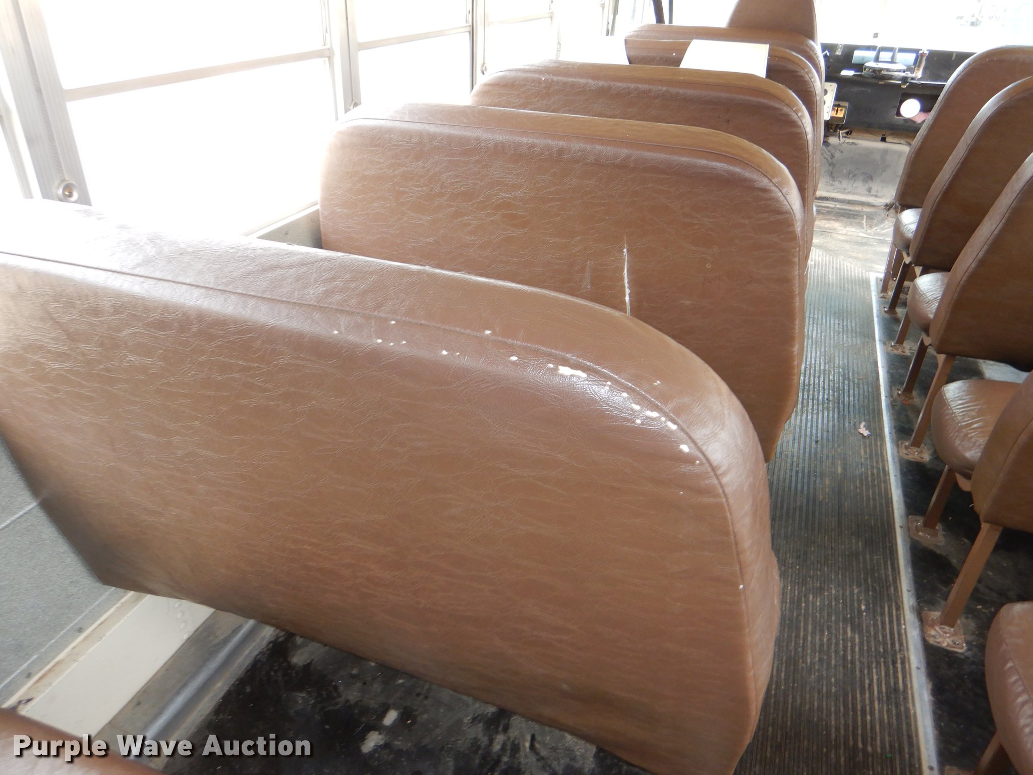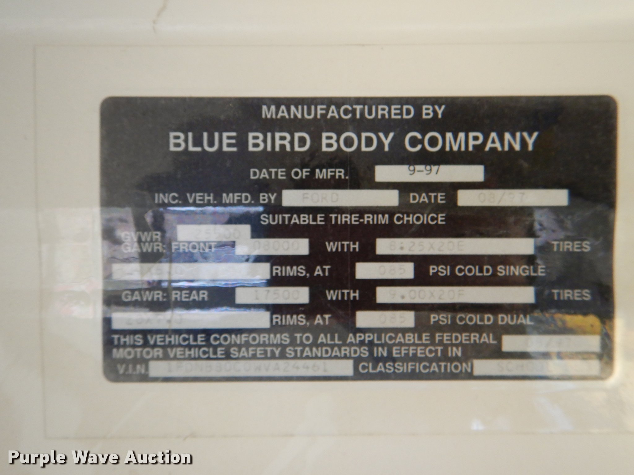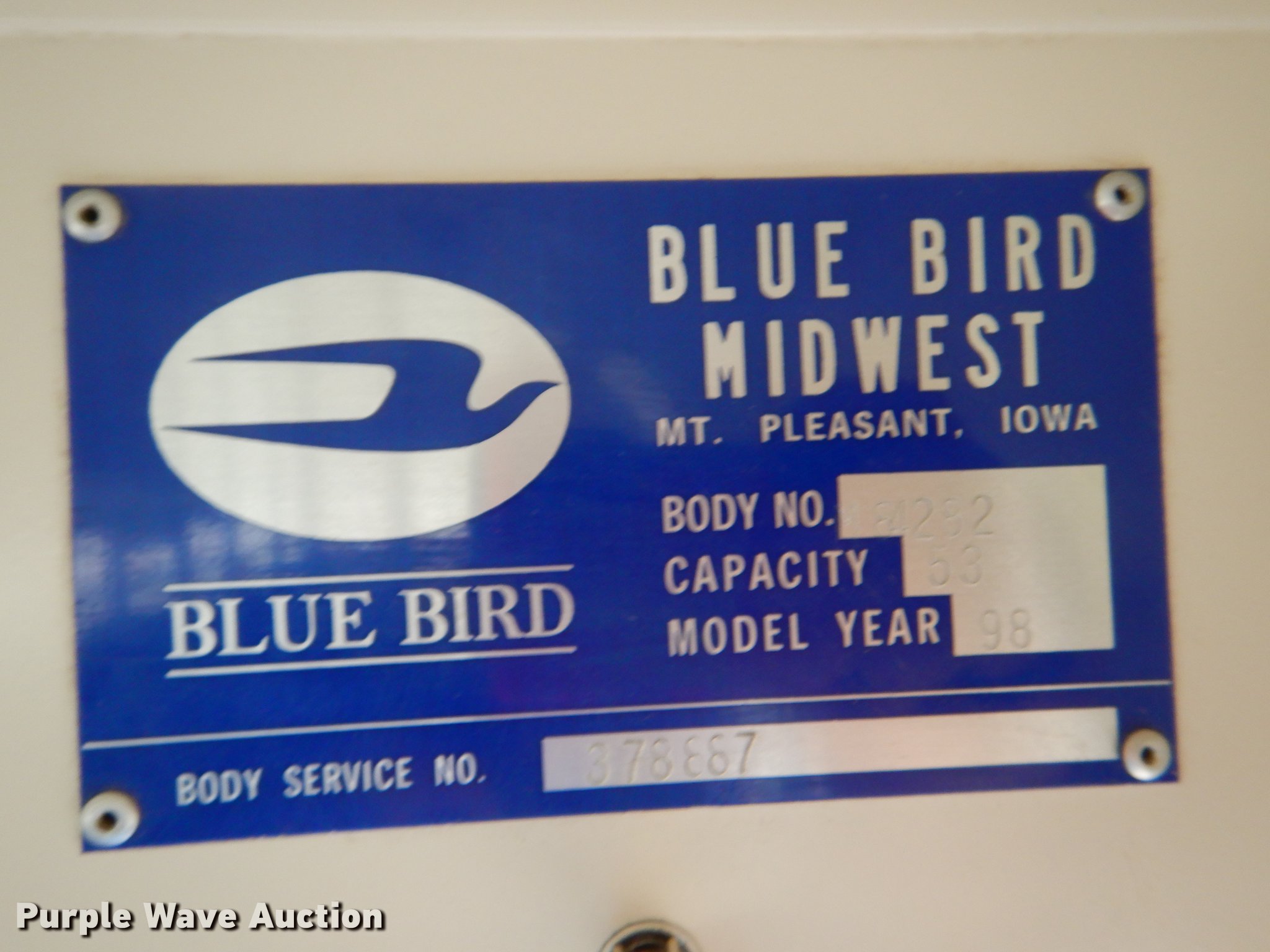 Purple Wave is selling a used Bus in Kansas. This item is a 1998 Ford B800 school bus with the following: 193,272 miles on odometer, Cummins B5.9 5.9L L6 diesel engine, 190 HP, Serial 56378188, Automatic transmission, Single axle, Heat, AM/FM, Vinyl interior, 53 passenger capacity, Ceiling, rear, and side emergency exits, Lighted stop sign, Backup alarm, Block heater, Cold weather hood bonnet, Underside luggage storage, Front and rear tow hooks, Spring suspension, Hydraulic brakes, 217" wheelbase, 10R22.5 tires, GVWR 25,500 lbs, Decals will be painted over, Unit# 14