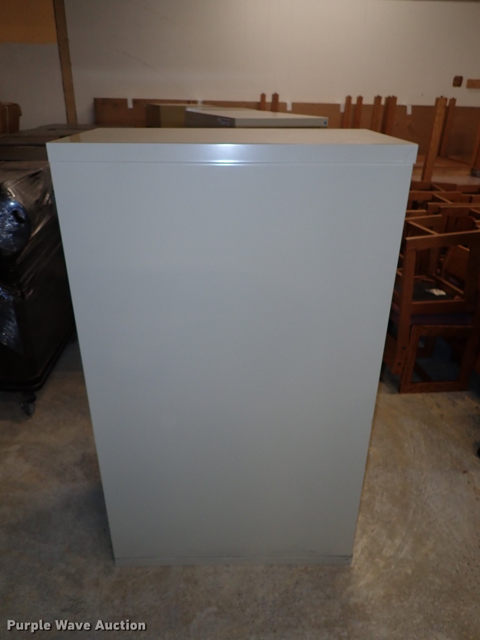 Purple Wave is selling a used Office Supplies and Equip. in Kansas. This item is a Fire King four drawer file cabinet with the following: 32" x 18" x 53"H