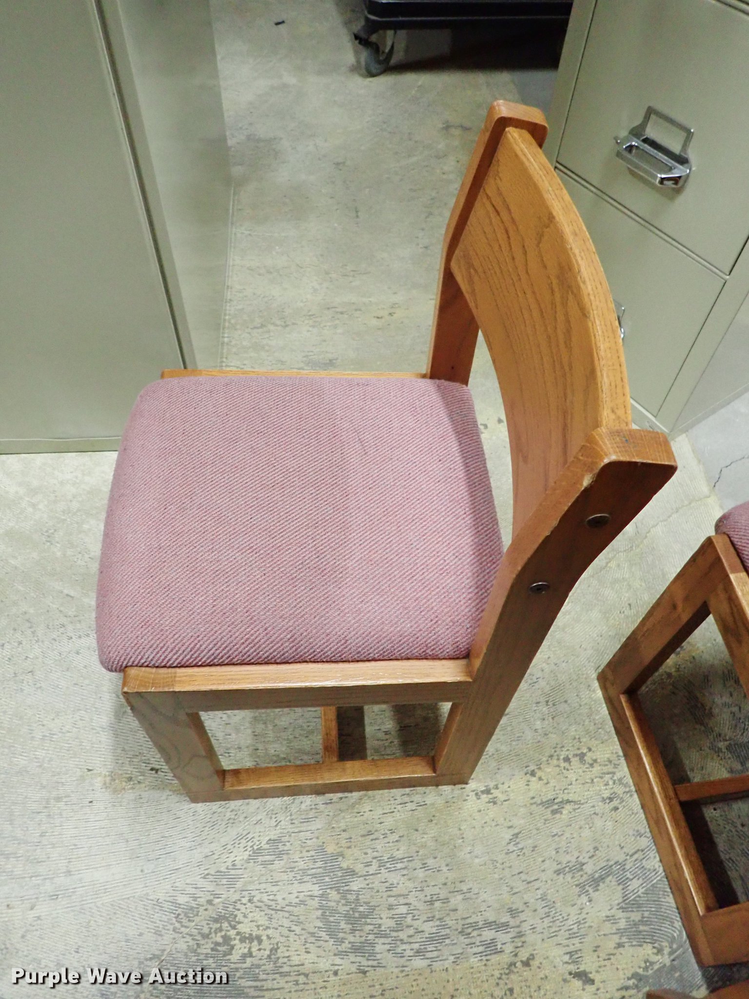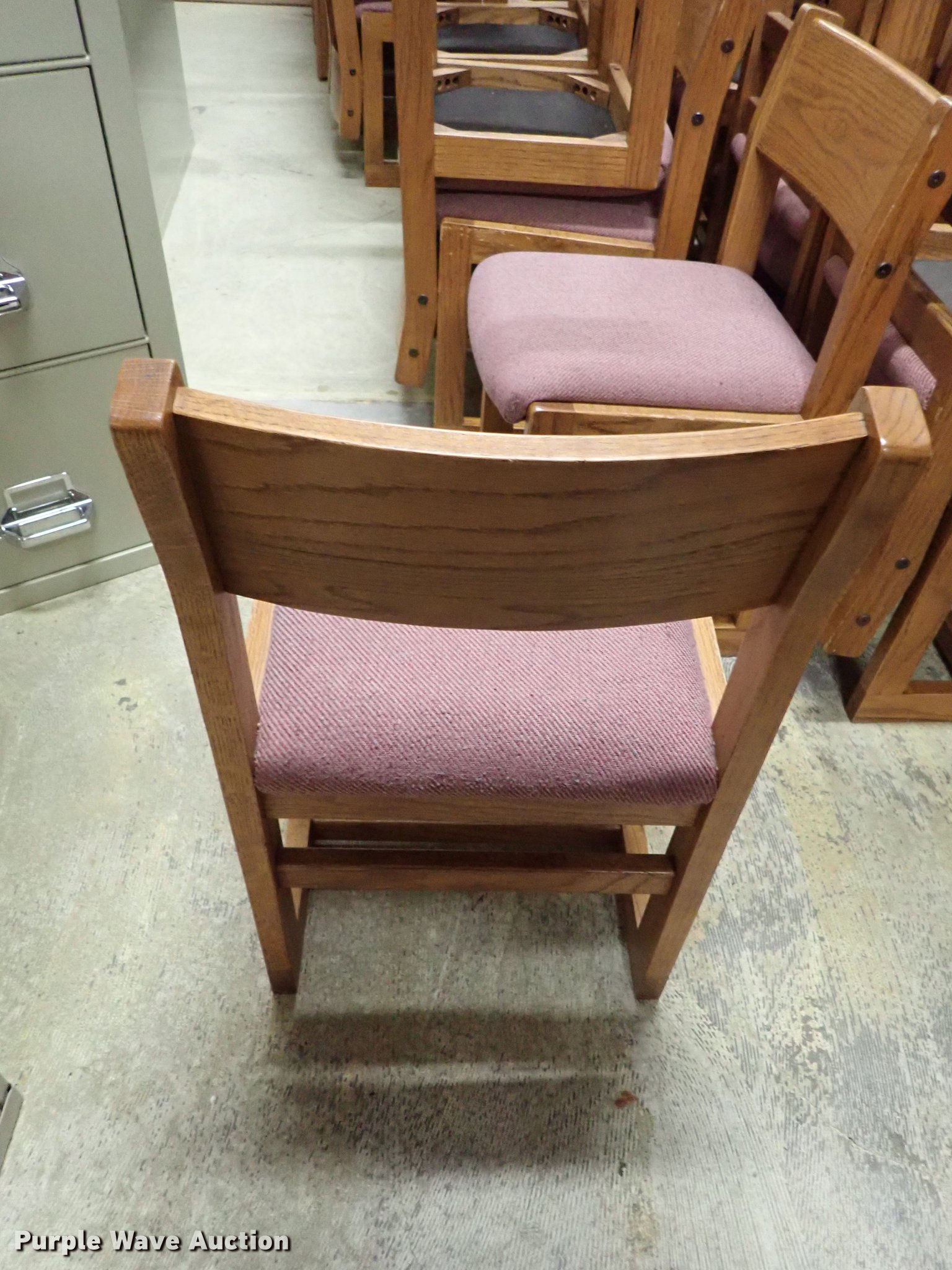 Purple Wave is selling a used Furniture in Kansas. This item is a Approximately 65 chairs with the following: (60) wood, (5) office
