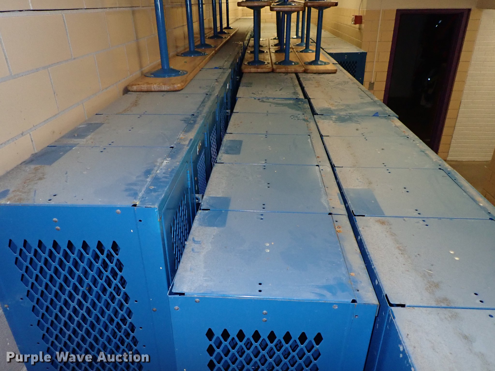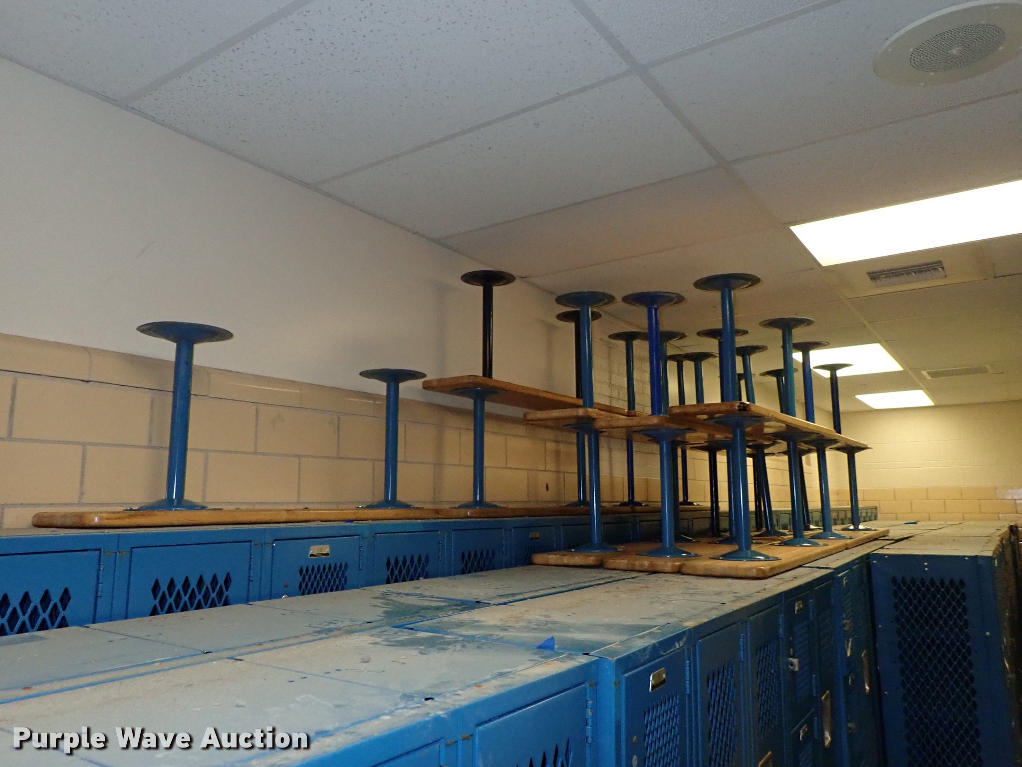 Purple Wave is selling a used Sporting Goods in Kansas. This item is a (22) sets of Penco lockers with the following: Approximately 60" x 16", Wood benches