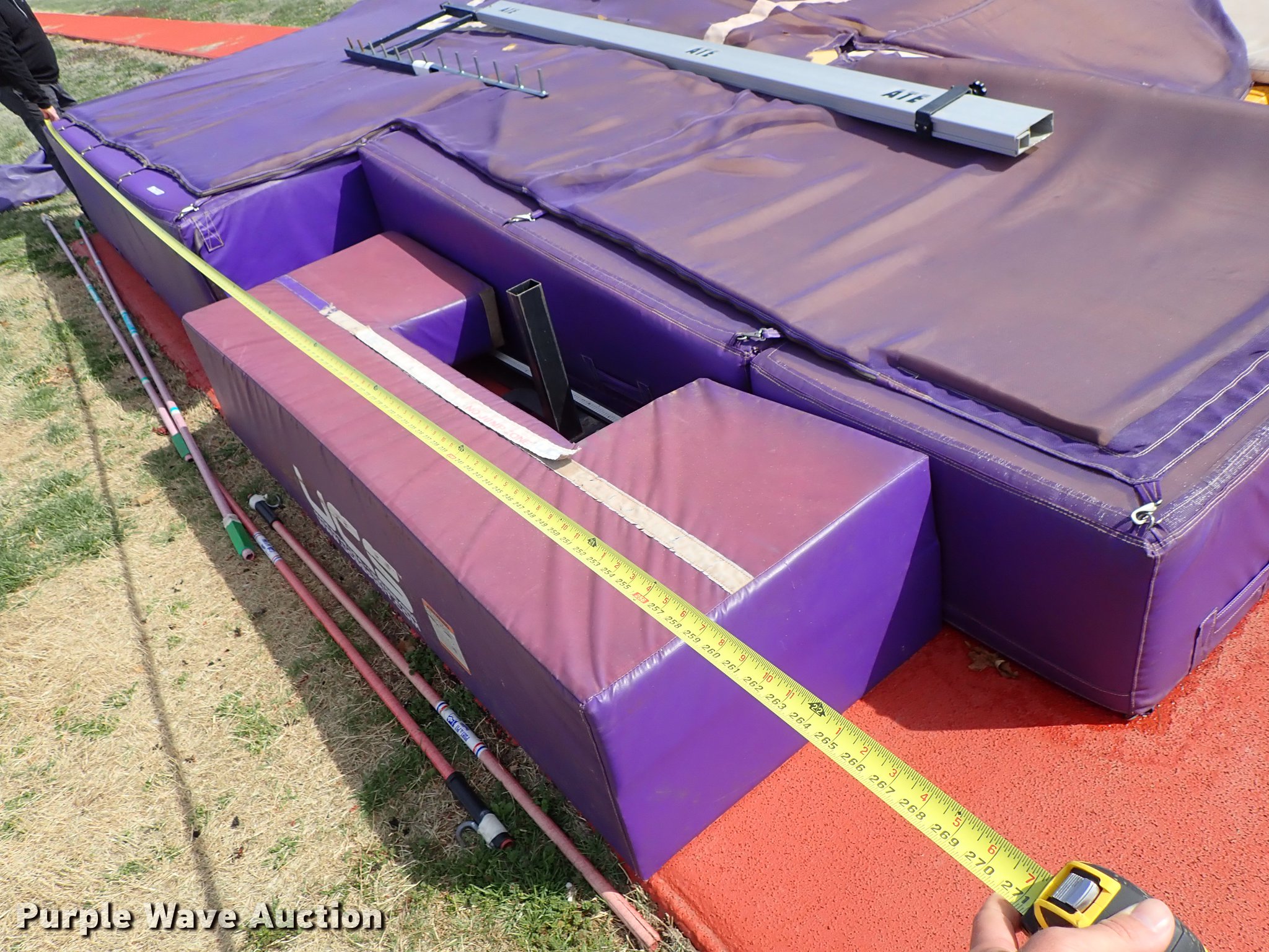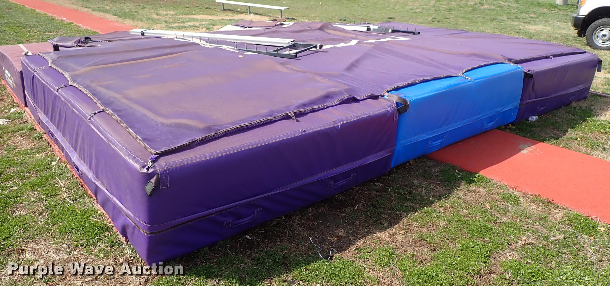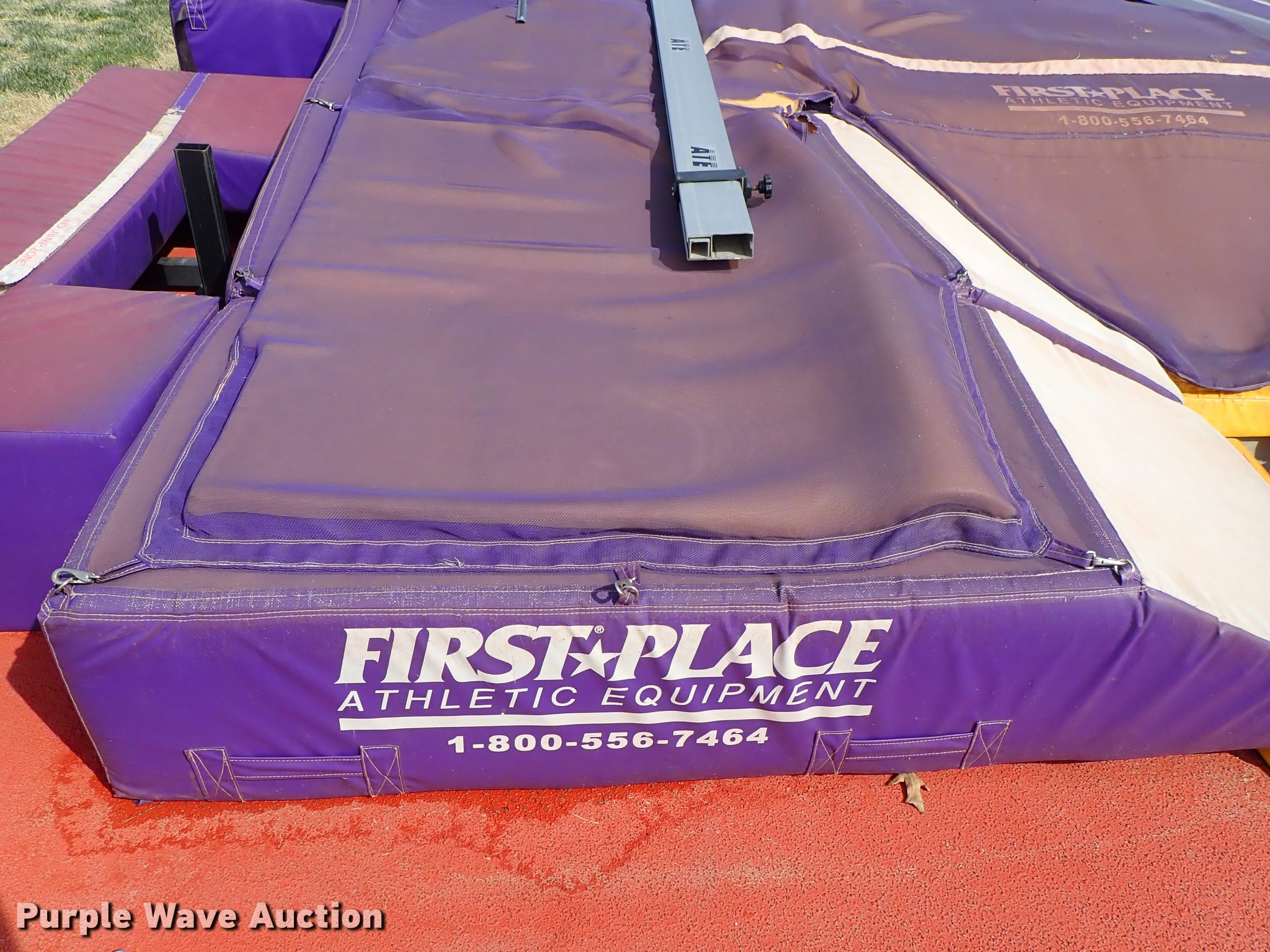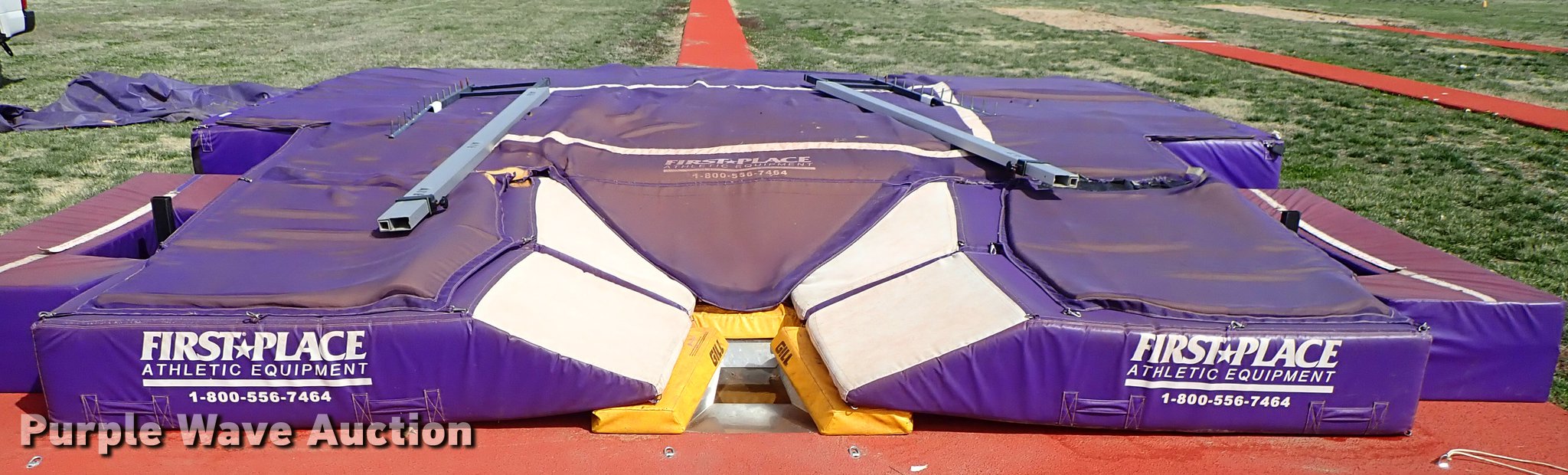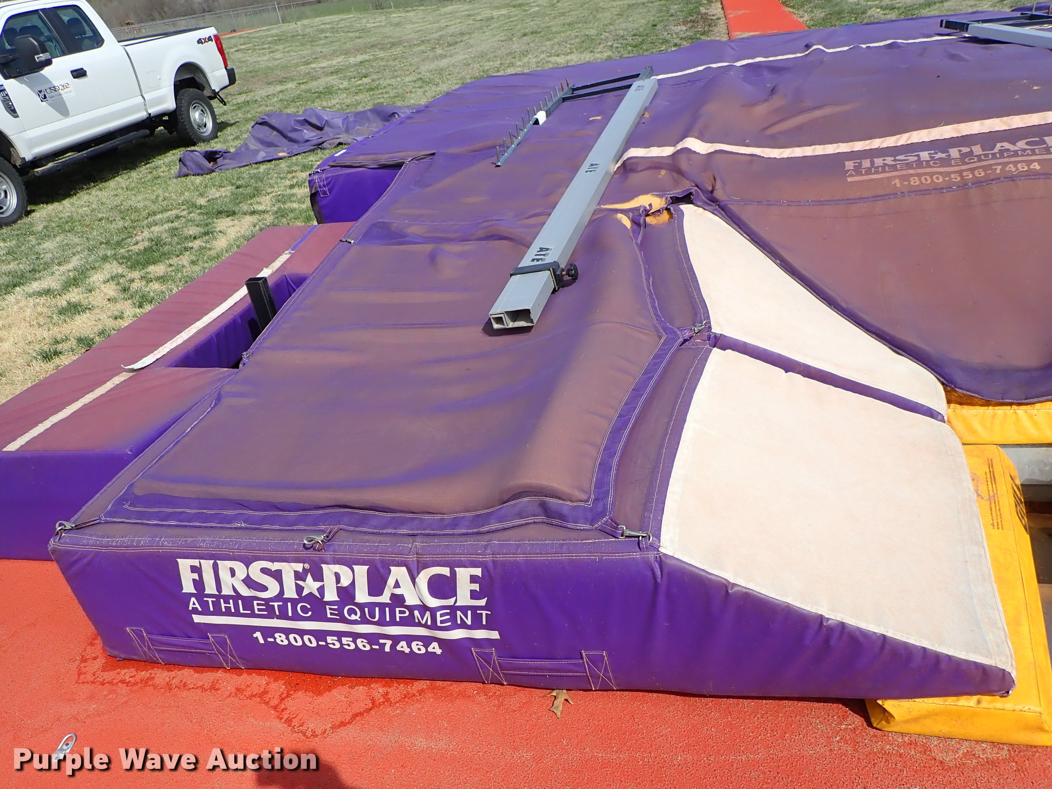 Purple Wave is selling a used Sporting Goods in Kansas. This item is a First Place high jump mats with the following: Approximately 21' x 21", High jump poles, Cover, High jump poles and accessories not included, Yellow base mats not included