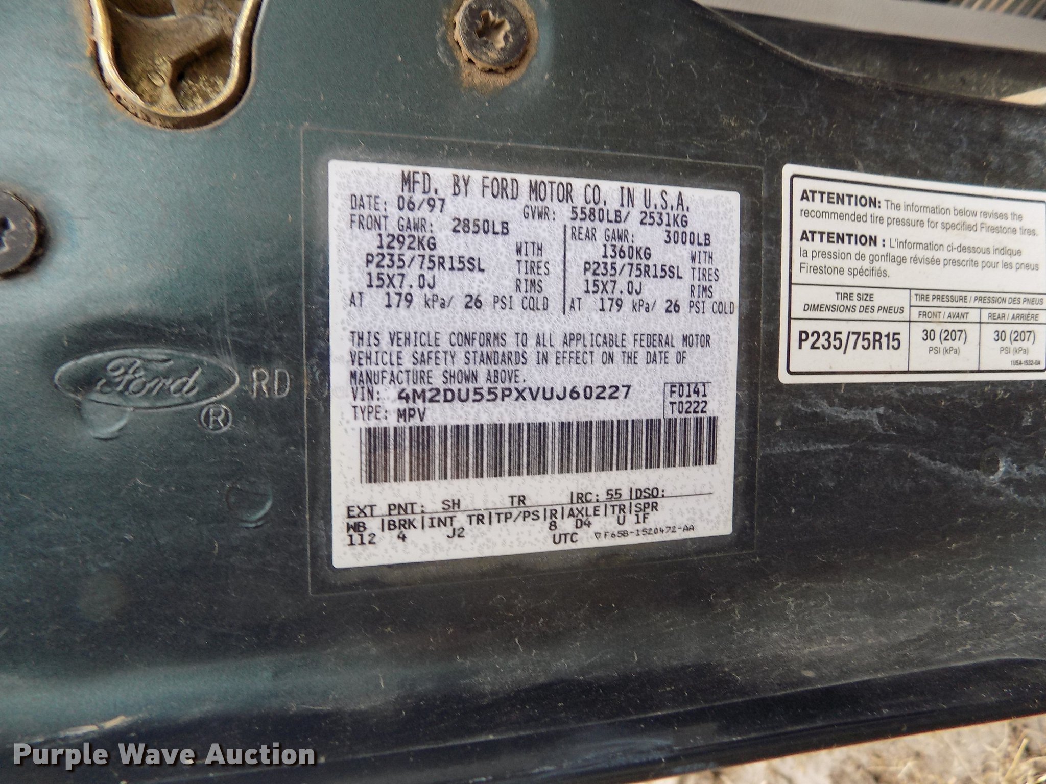 Purple Wave is selling a used Passenger Vehicle in Kansas. This item is a 1997 Mercury Mountaineer SUV with the following: 182,249 miles on odometer, 5.0L V8 OHV 16V gas engine, Automatic transmission, All wheel drive, AC and heat, Tilt, Cruise, AM/FM/CD, Power windows, locks, and mirrors, Cloth interior, Running boards, Receiver hitch, 235/75R15 tires, Dead battery, Unknown operating condition