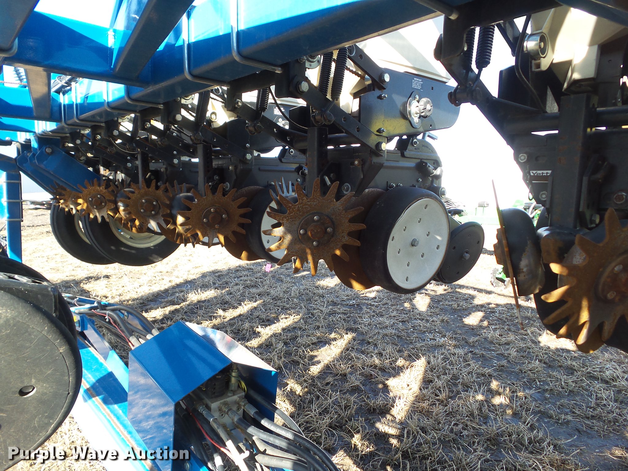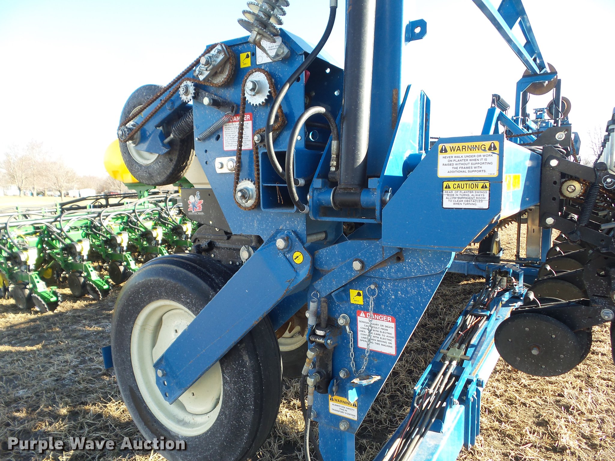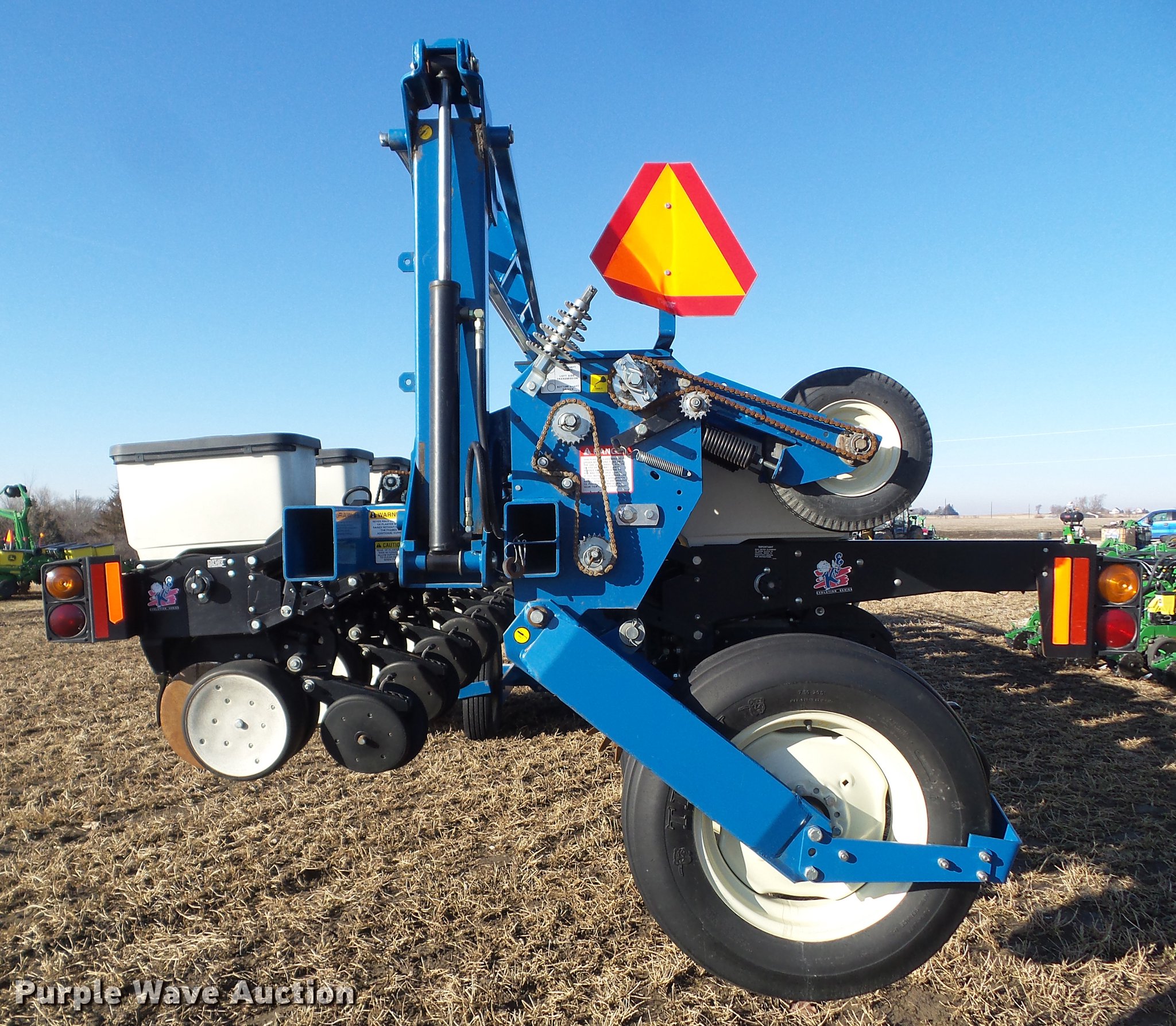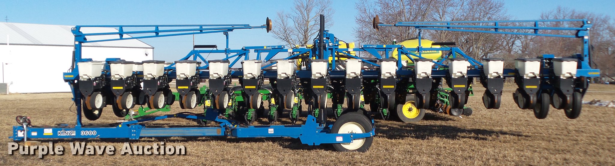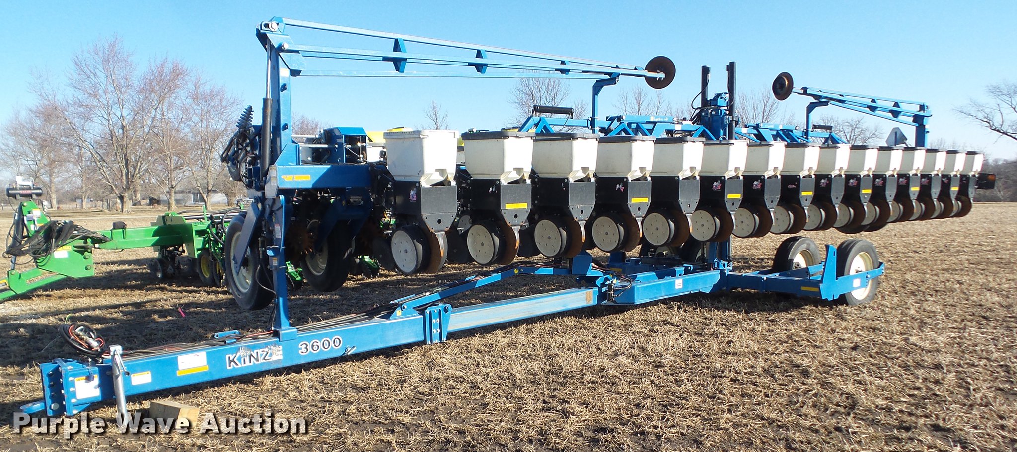 Purple Wave is selling a used Planter in Iowa. This item is a 2002 Kinze 3600 split row planter with the following: 40'W, (31) total row units, 30" row spacing, 15" split row spacing, Marker arms, Hydraulic pivot fold, Individual seed hoppers, 1.6 bushel capacity, Ground meter drive, (16) corn seed meters, (31) soybean meters, HD spring down pressure, Row cleaners, Spiked row cleaners for corn units, Double disk openers, Double gauge wheels, Double rubber closing system, Clevis hitch, (4) 255/70R22.5 transport tires, (4) 7.50-20SL outside tires, (4) 4.80-8 drive tires, Missing seed hopper lids will be replaced prior to auction, Serial 615699